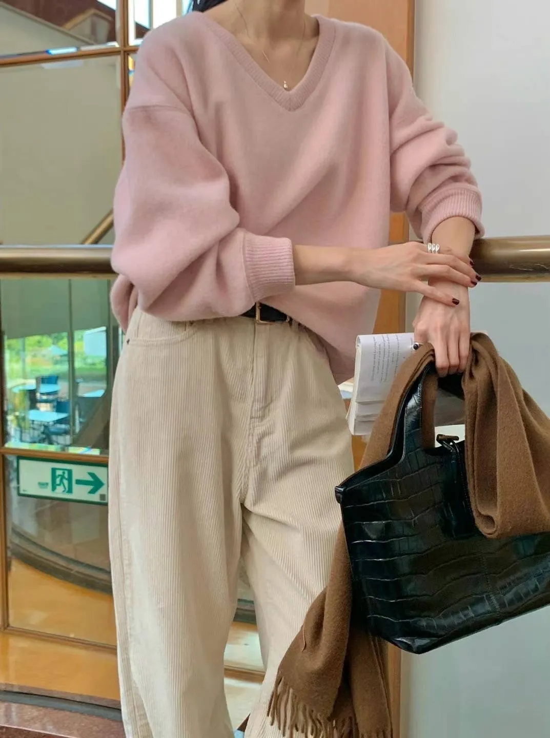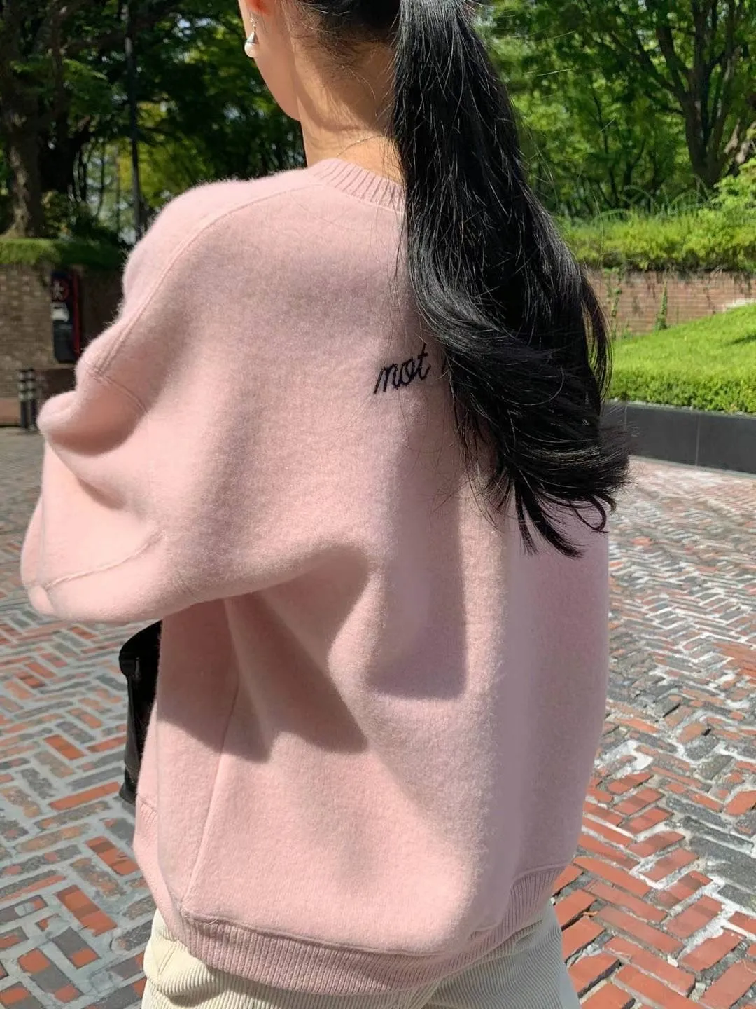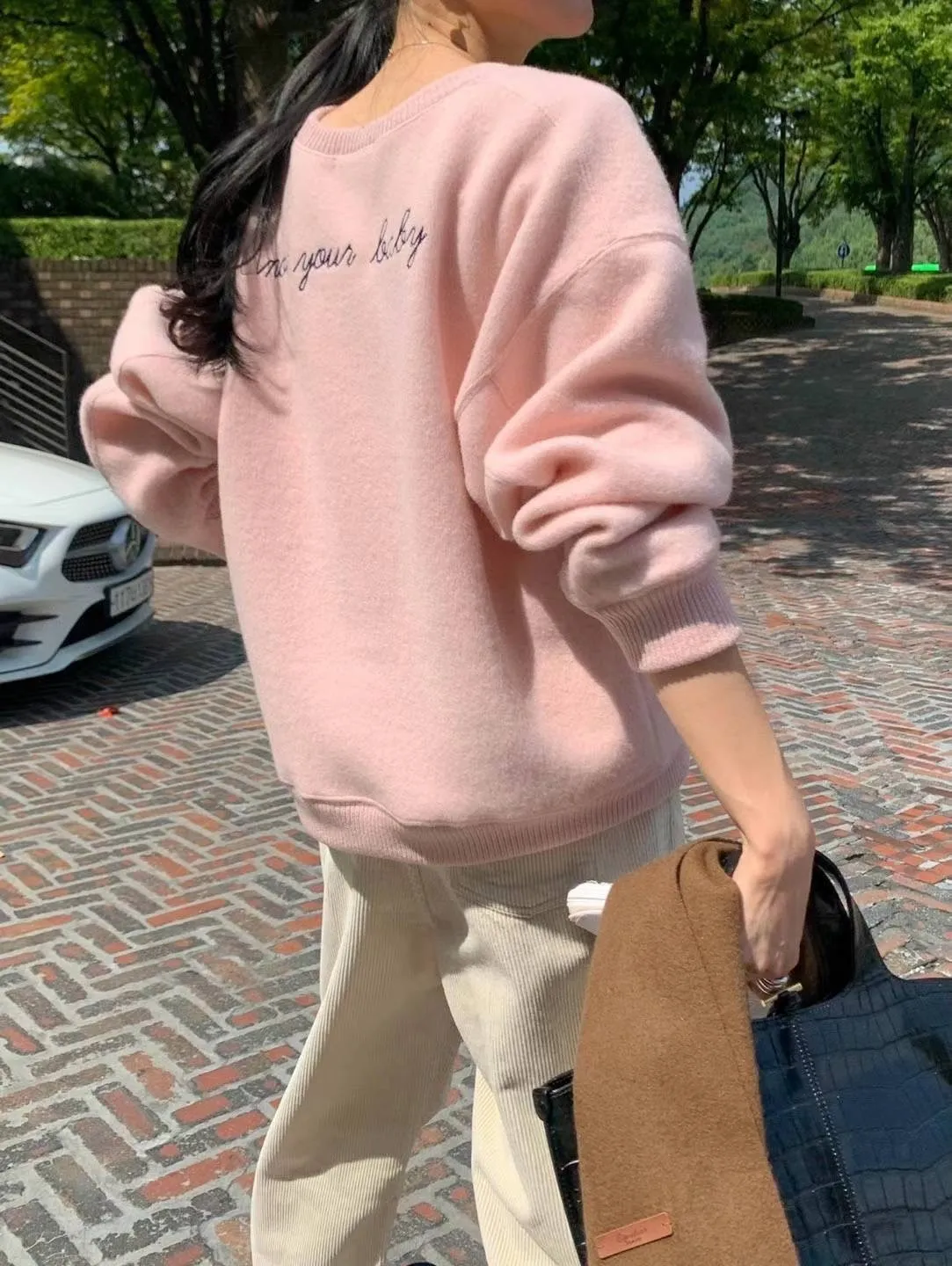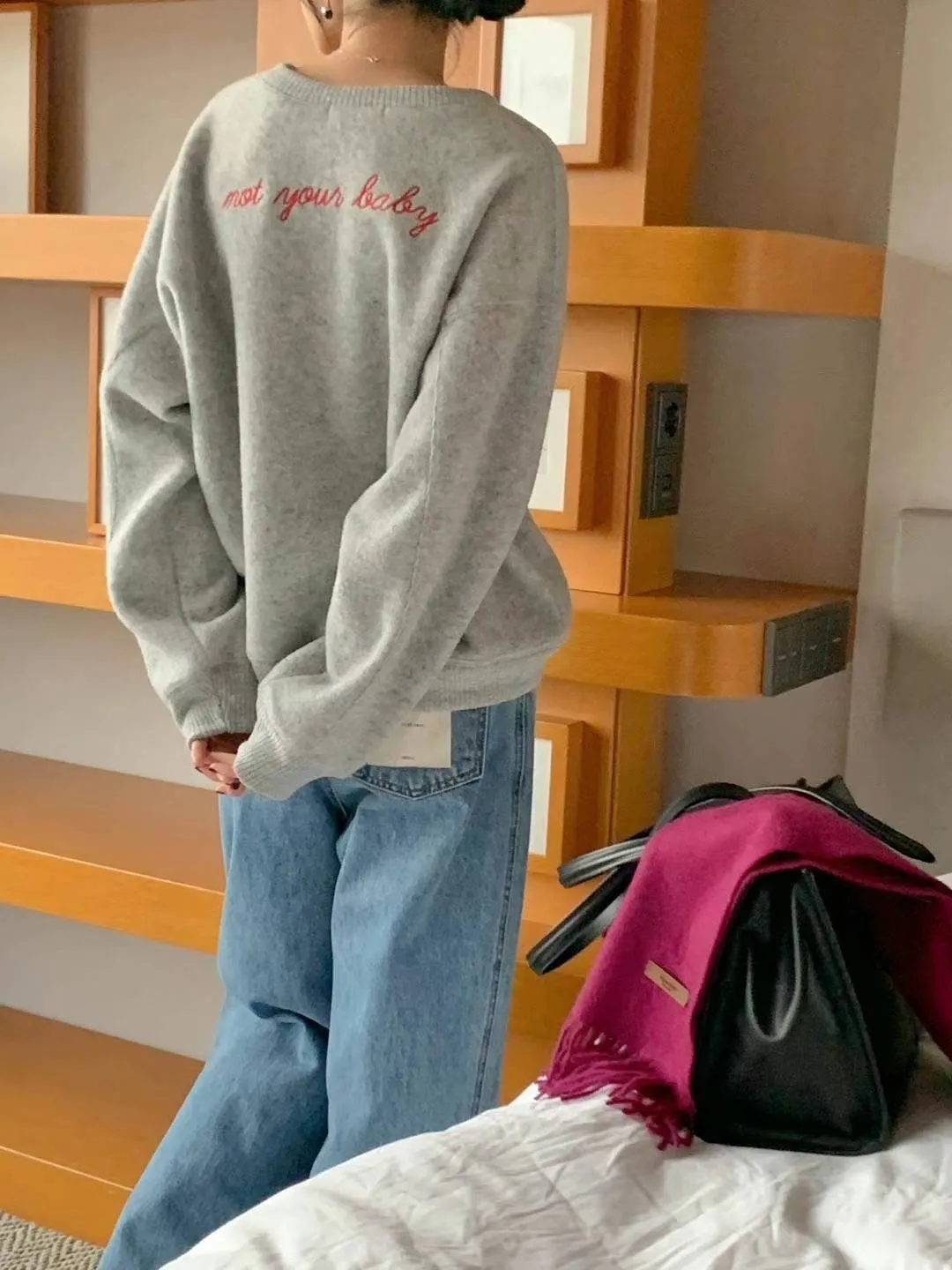 LV640背後英文草寫V領針織上衣 米 粉 灰 官網價$1070 永恆甜甜價$1040