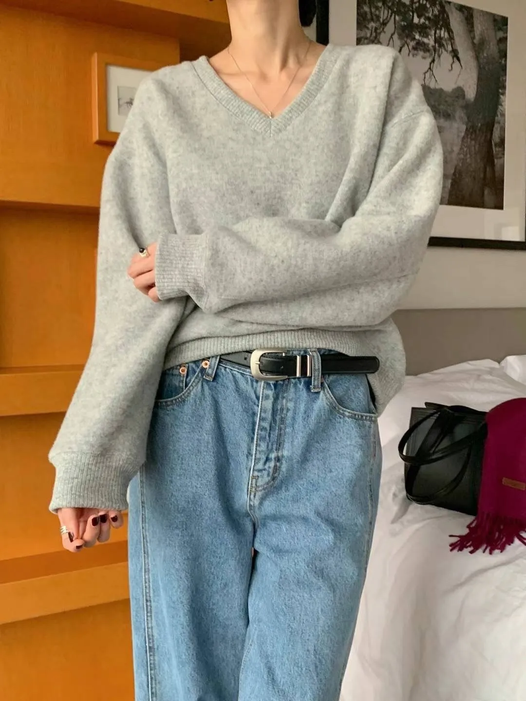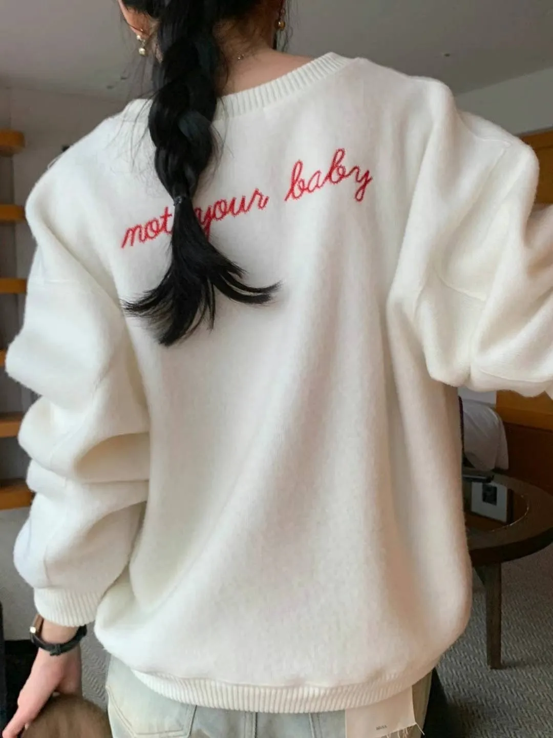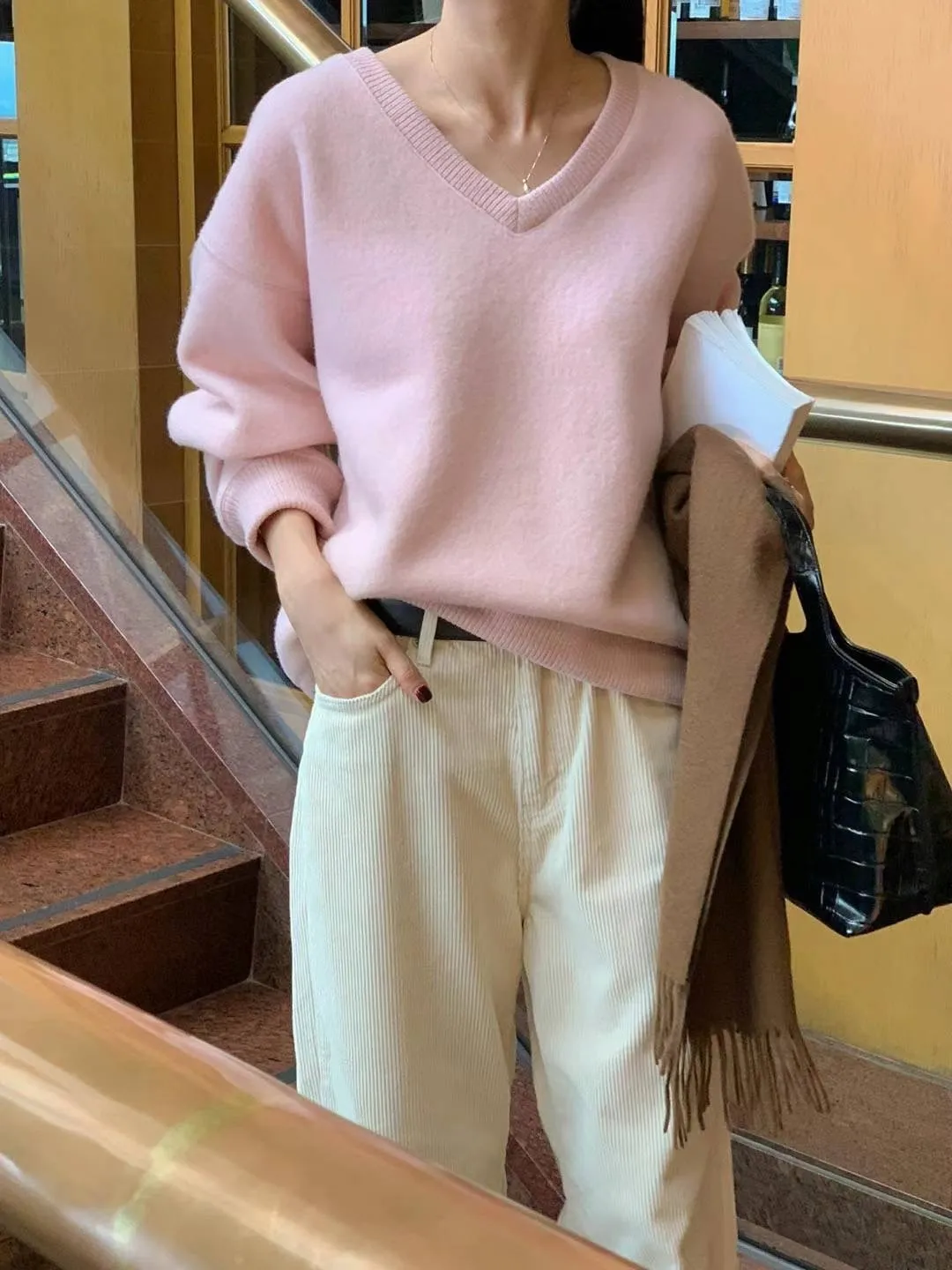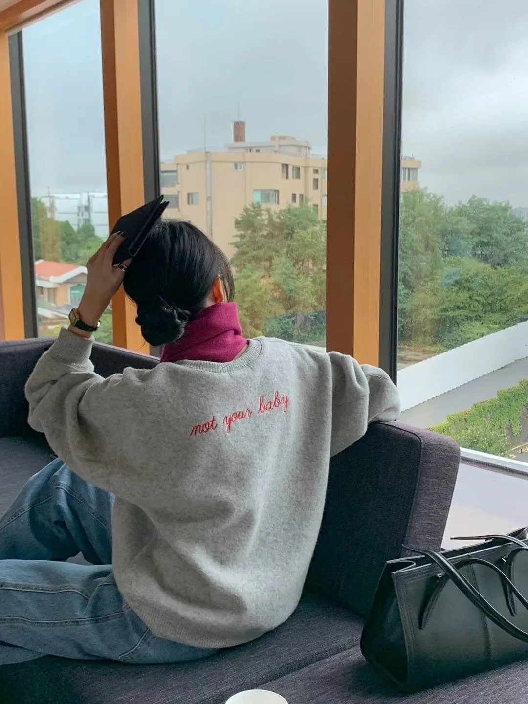 LV640背後英文草寫V領針織上衣 米 粉 灰 官網價$1070 永恆甜甜價$1040