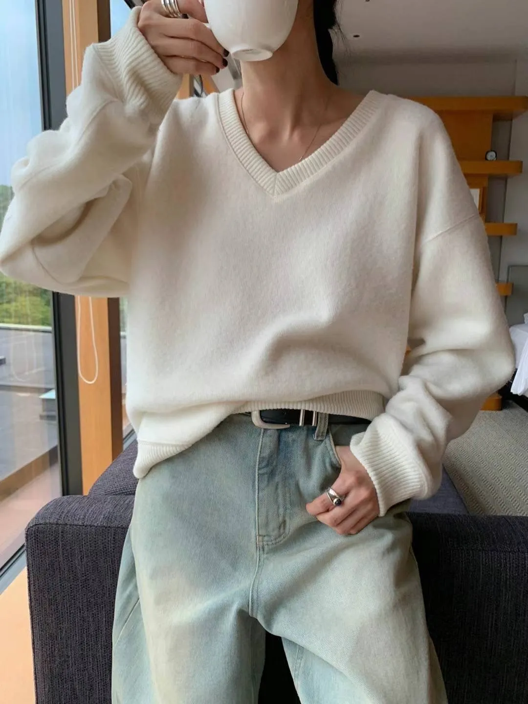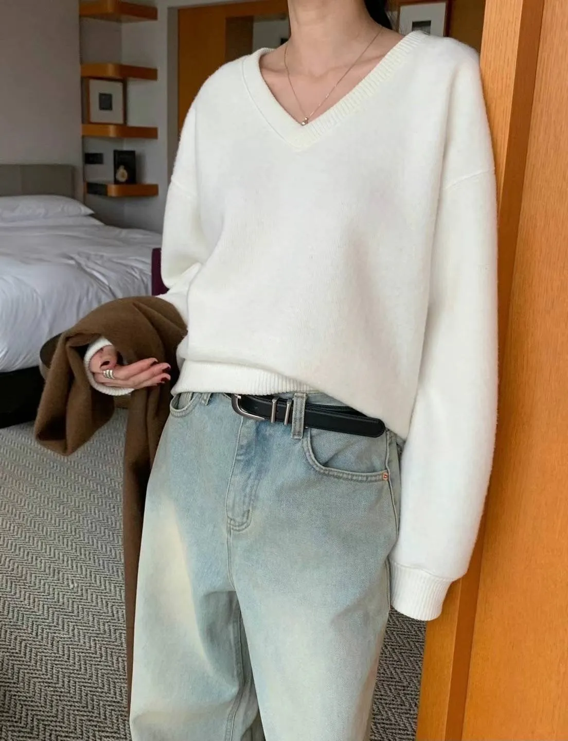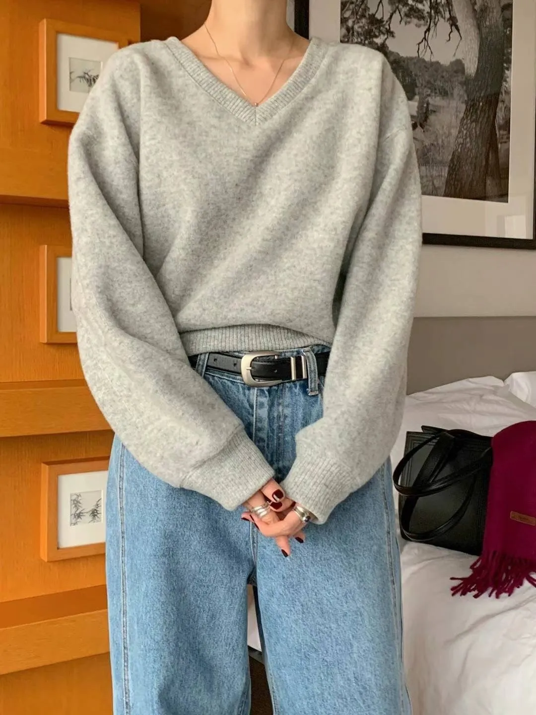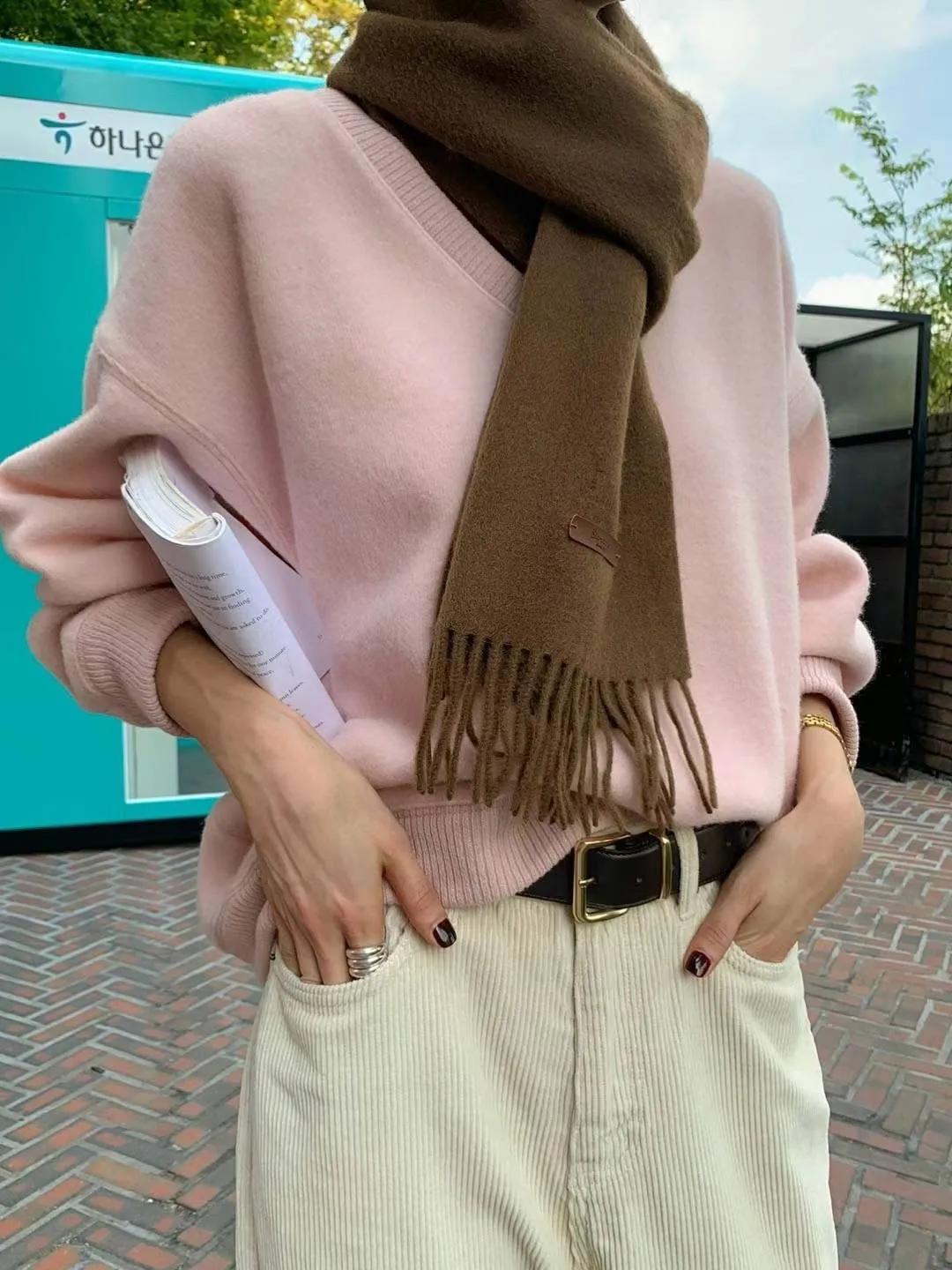 LV640背後英文草寫V領針織上衣 米 粉 灰 官網價$1070 永恆甜甜價$1040
