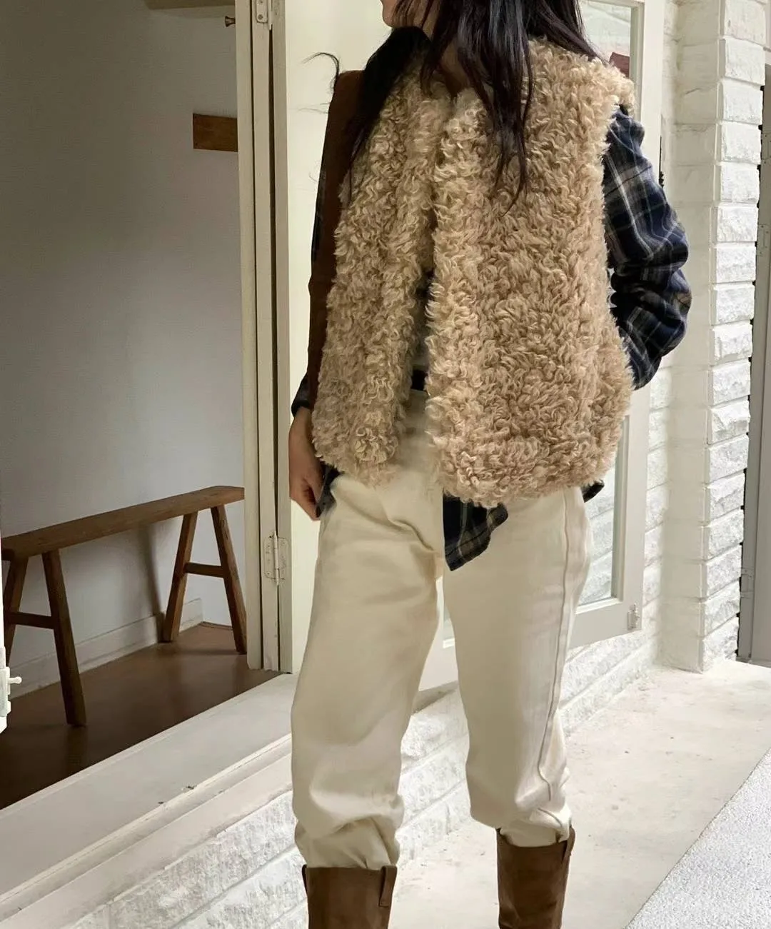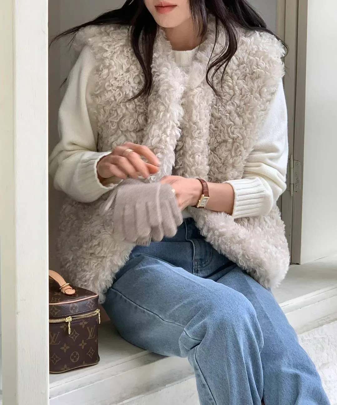 羊毛30%+人造毛 柔軟舒服 勾釦穿脫 不掉毛 有口袋 輕盈不重