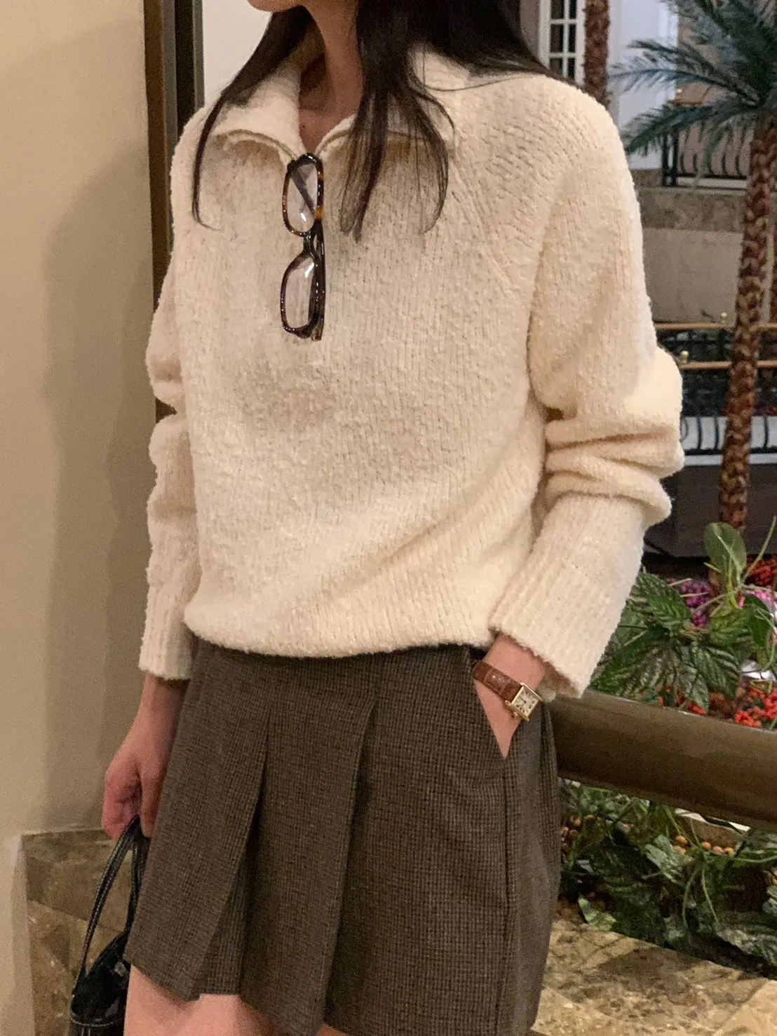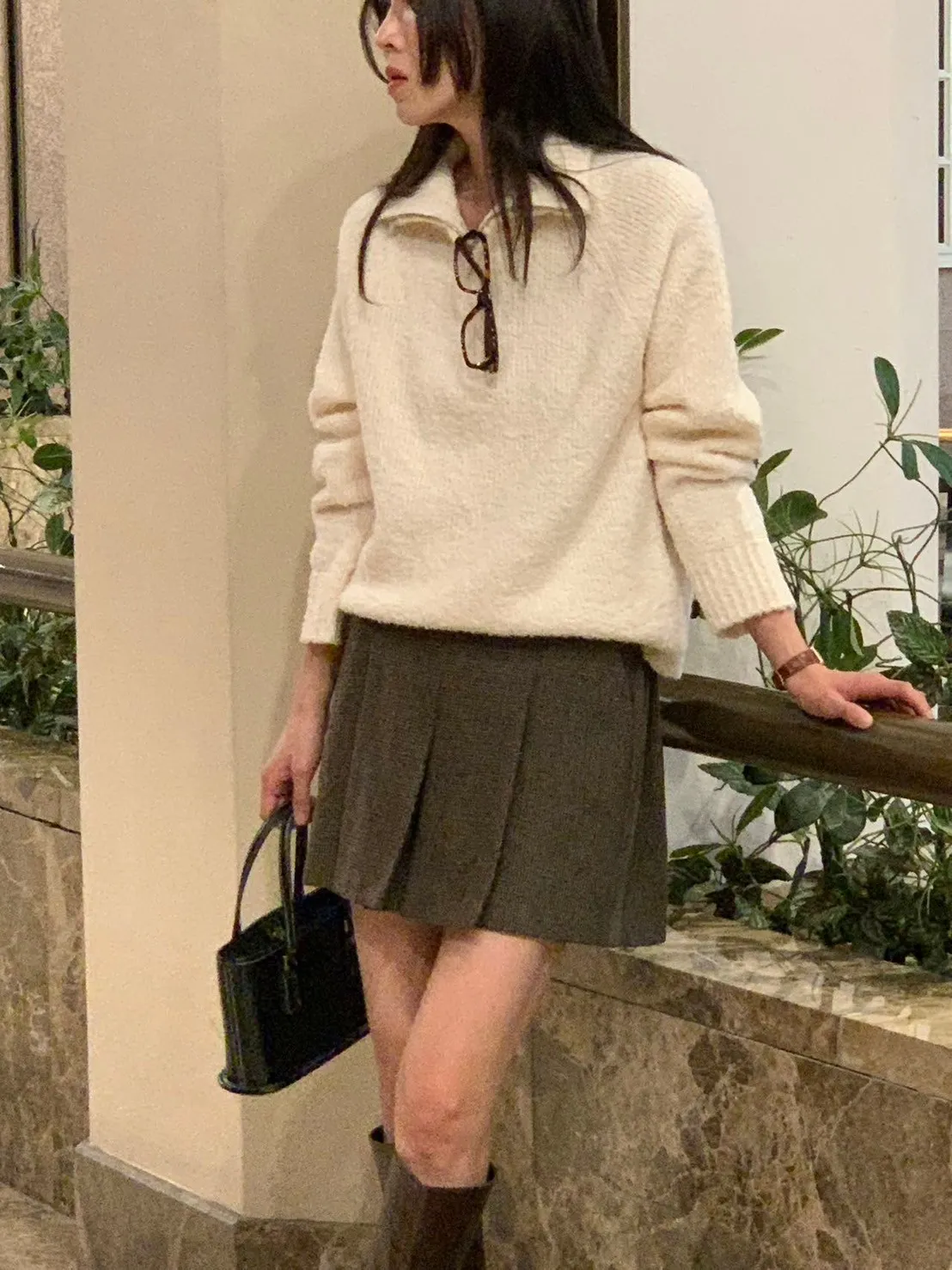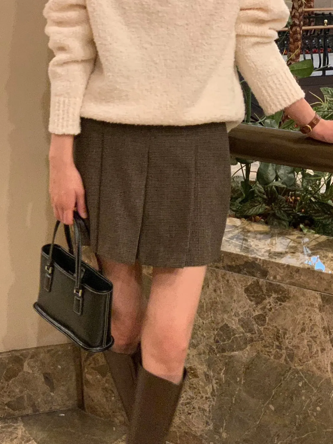 羊毛30+聚酯 側拉鍊 後腰鬆緊 有口袋 咖面料細格紋 無內裡
