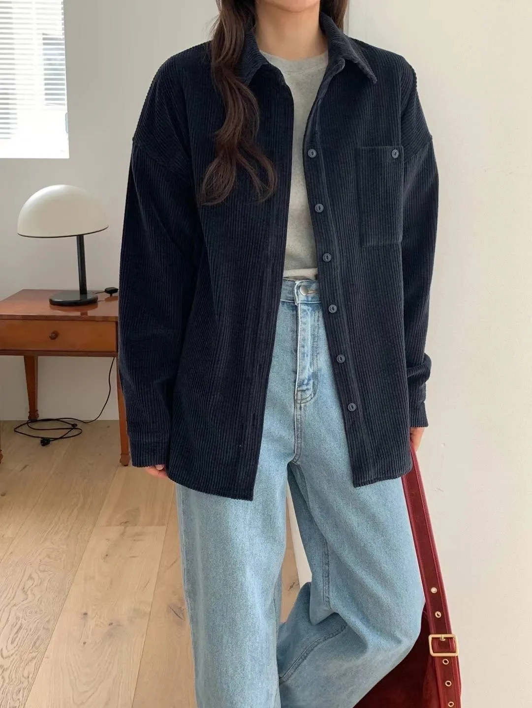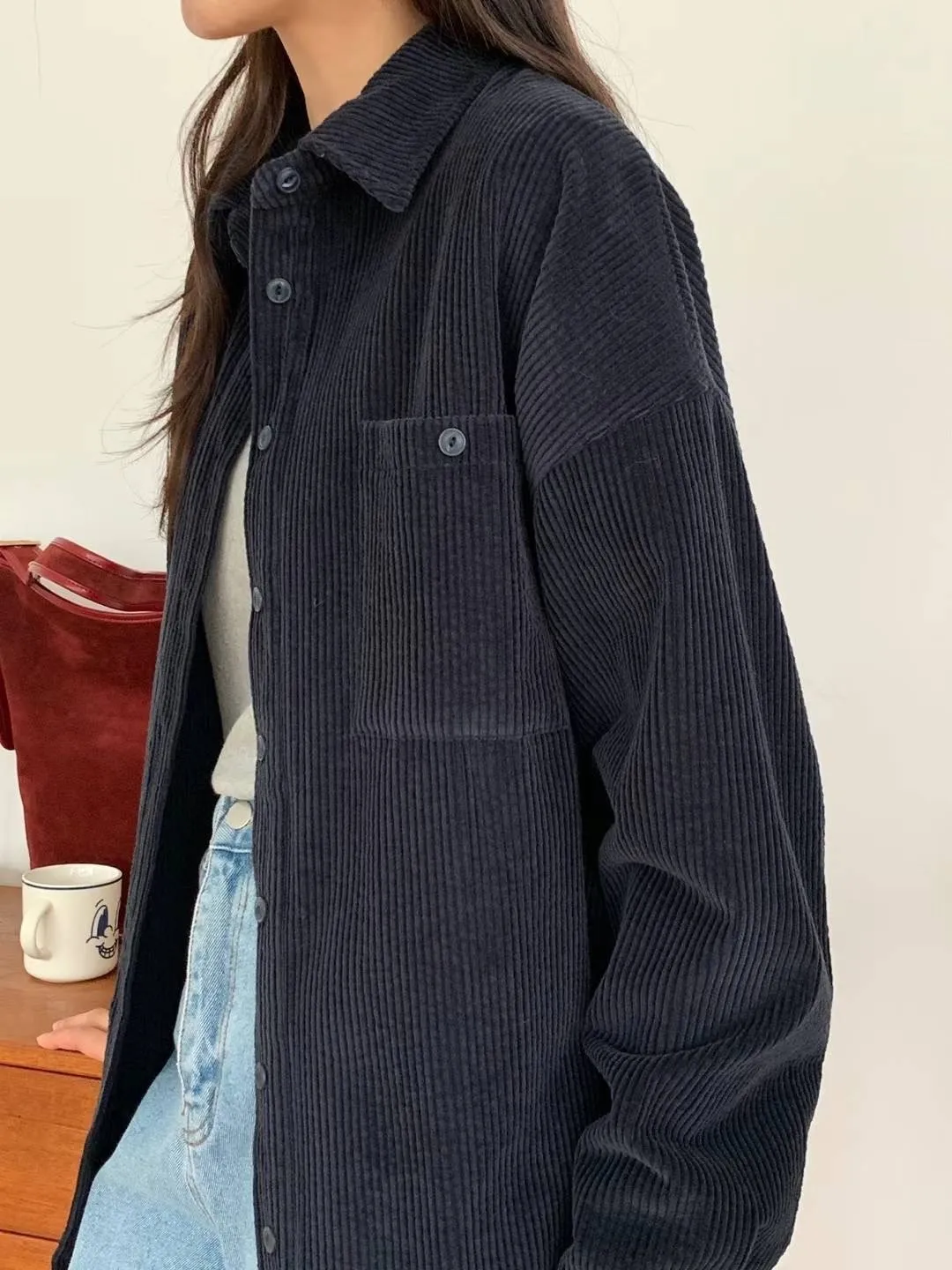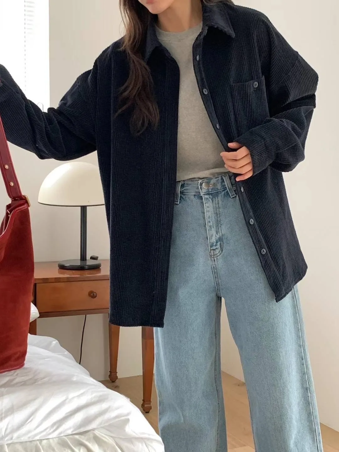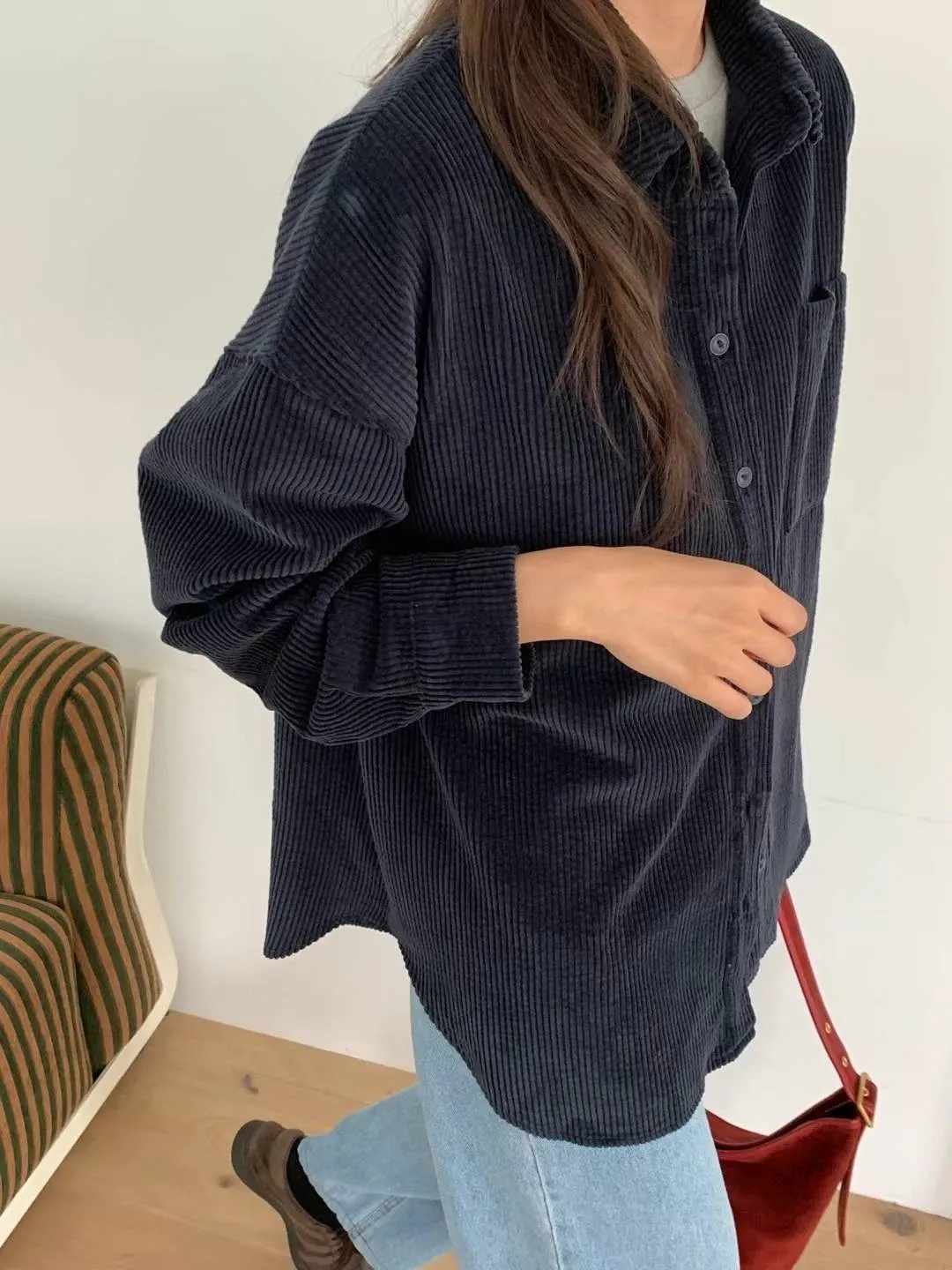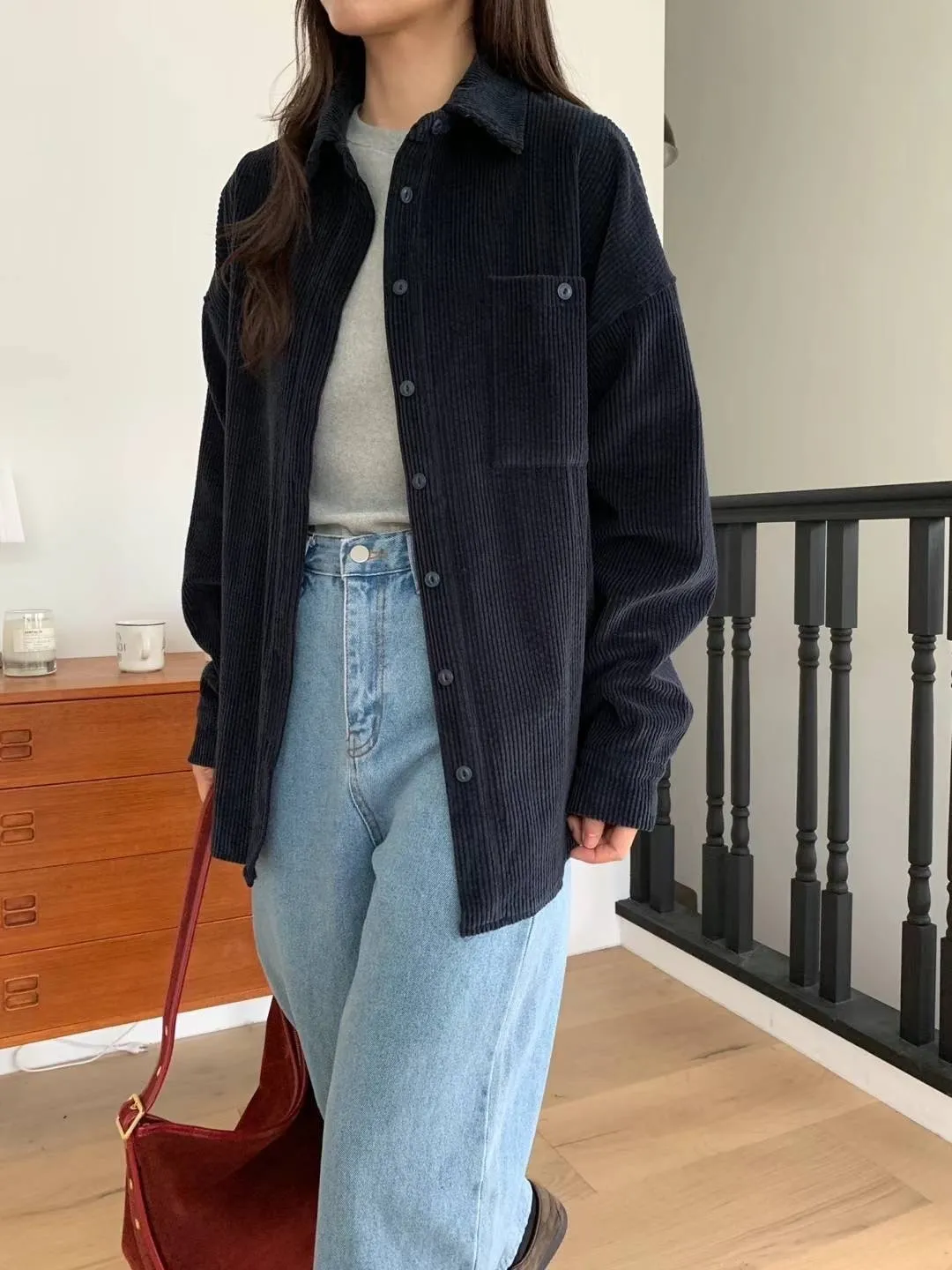 棉 燈心絨 排釦穿脫 不易皺 可上衣可外套 遮腹遮臀