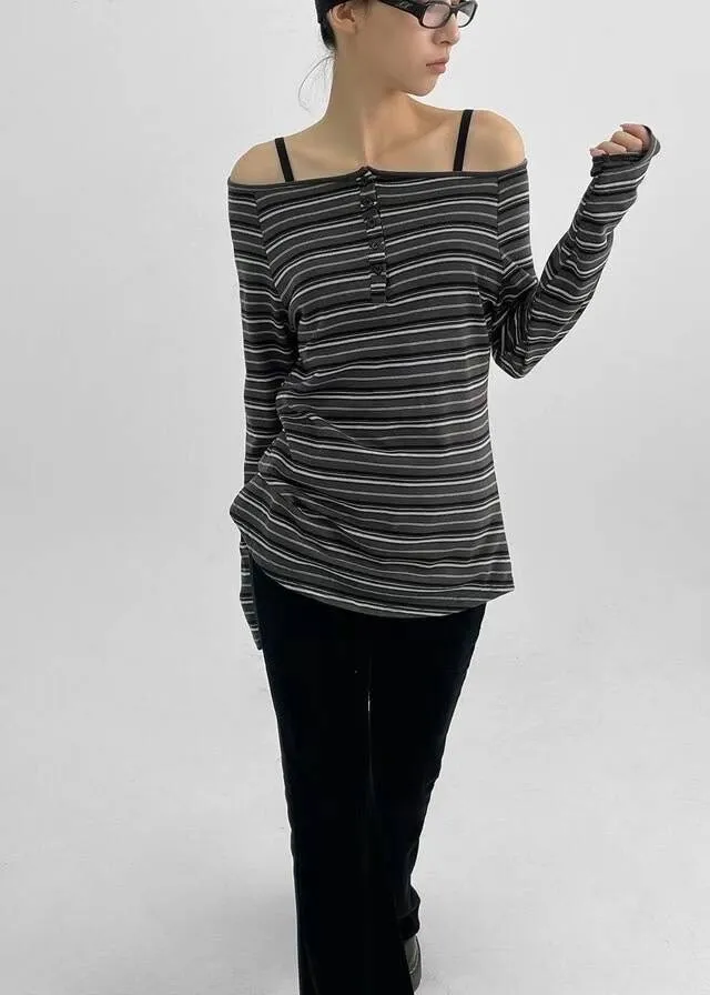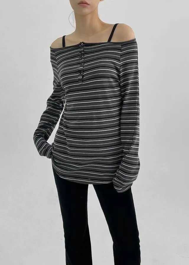 棉+聚酯 船型領 可斜露肩 圓弧下擺 薄款面料 適合台灣