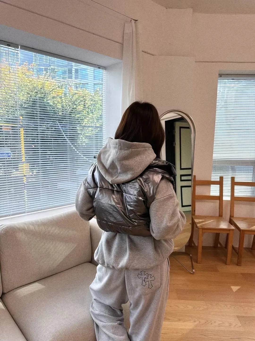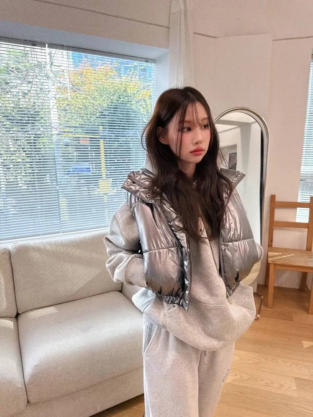 棉+尼龍 拉鍊穿脫 有口袋 顯瘦藏肉 蓬度輕盈 光澤未來科技感