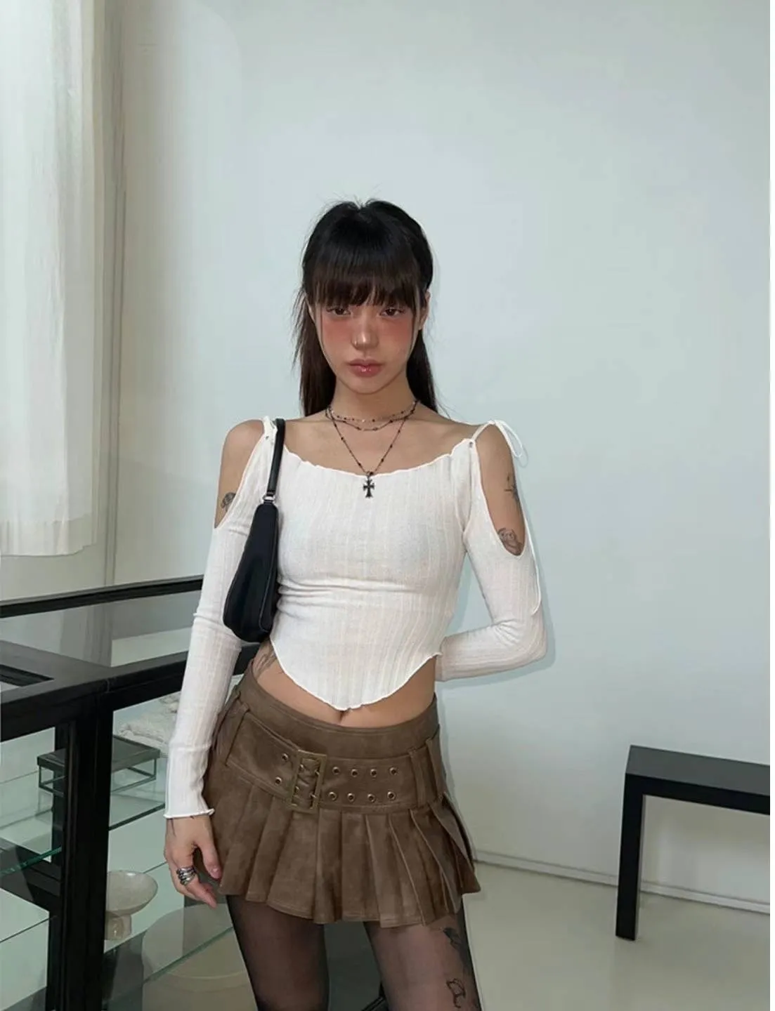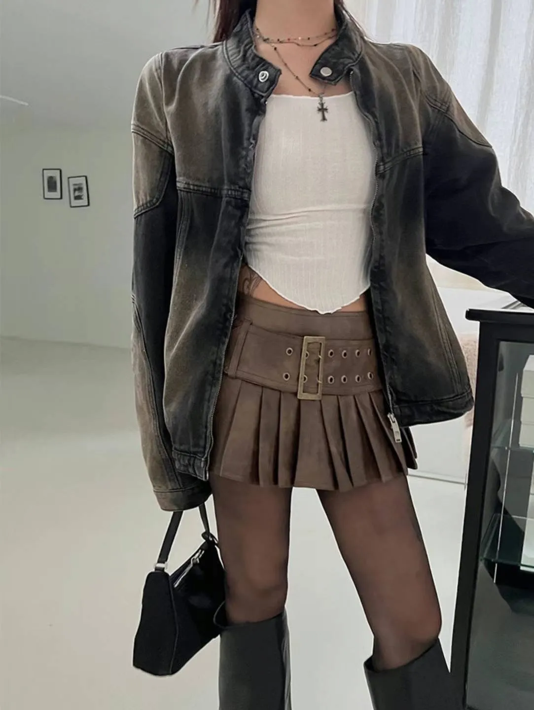 合成皮革 同款寬皮帶 是褲裙 短版好比例 宋宋直播穿S號