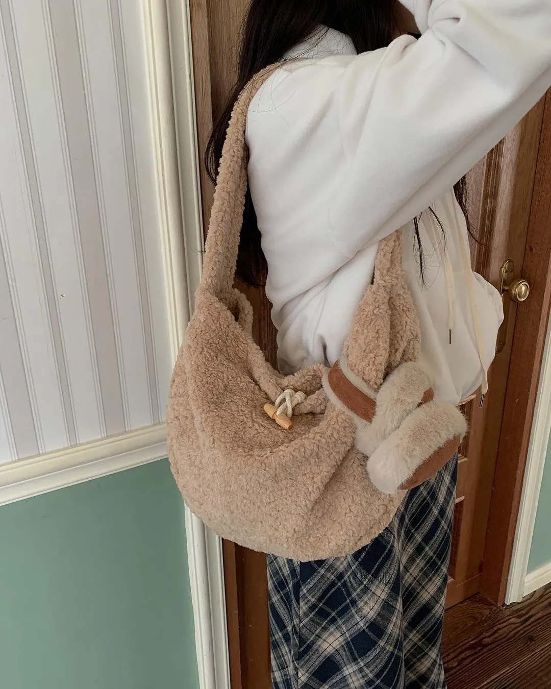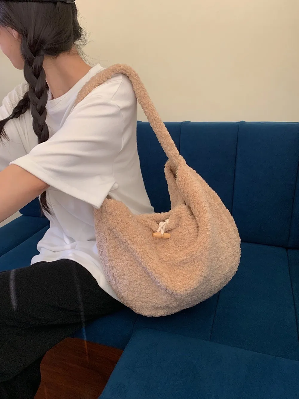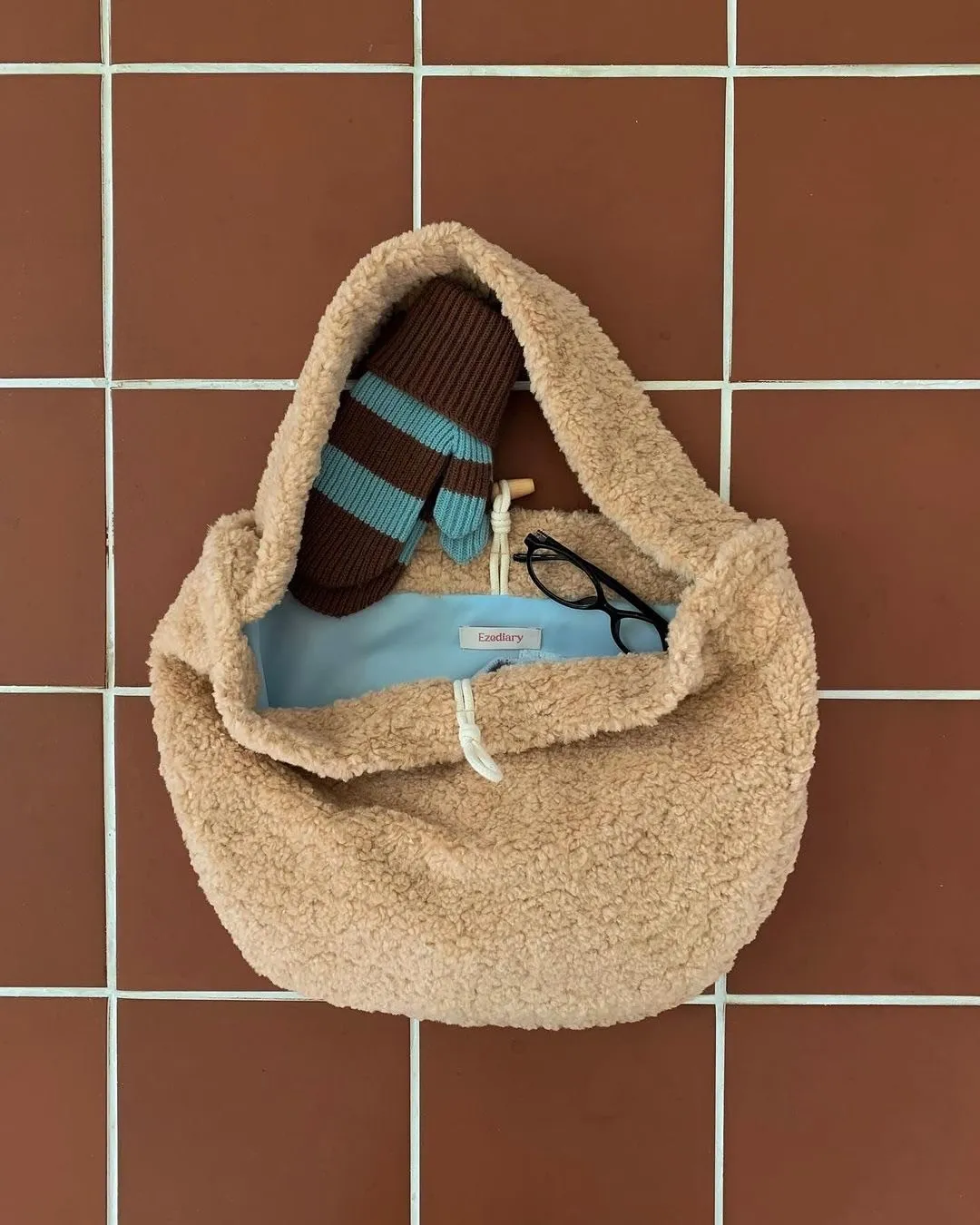 外層QQ毛 有內裡 套圈木釦閉合 可手提可肩背 45*32*8公分