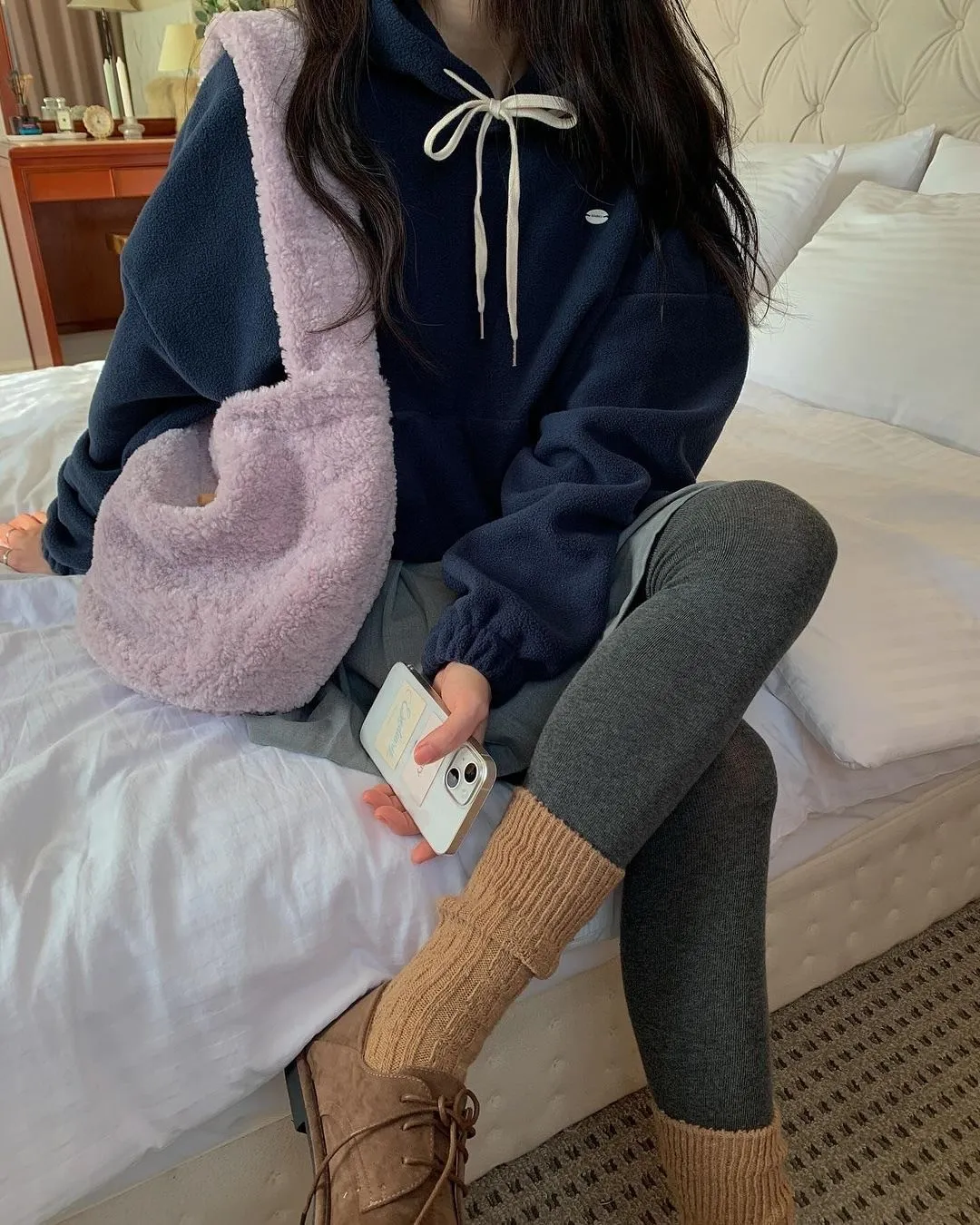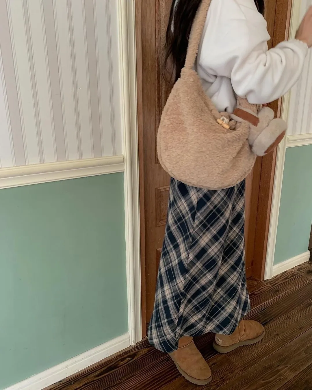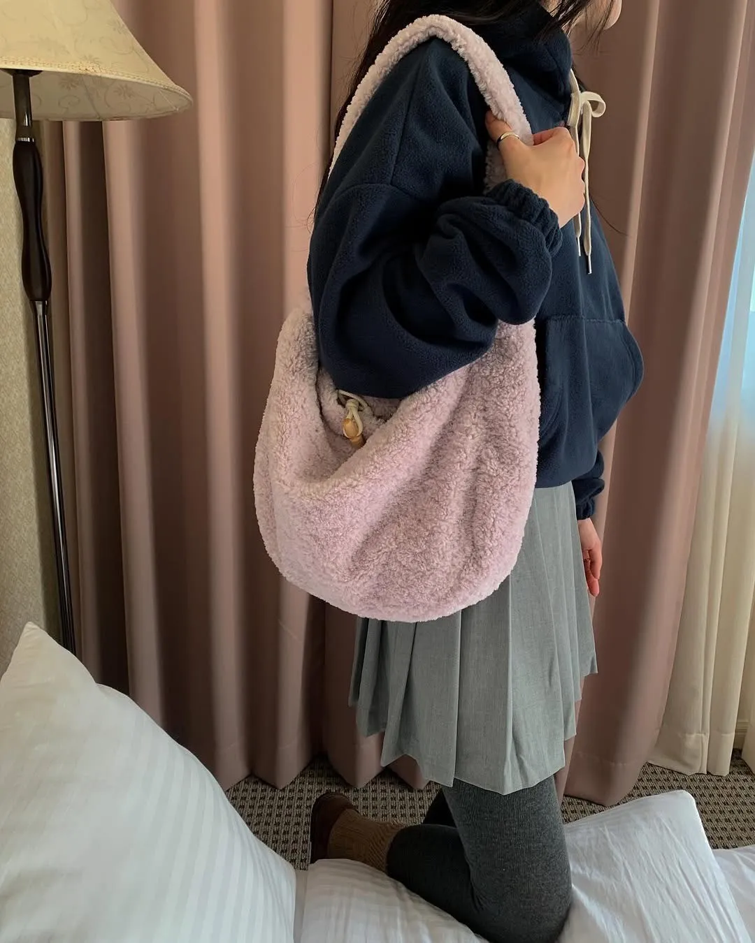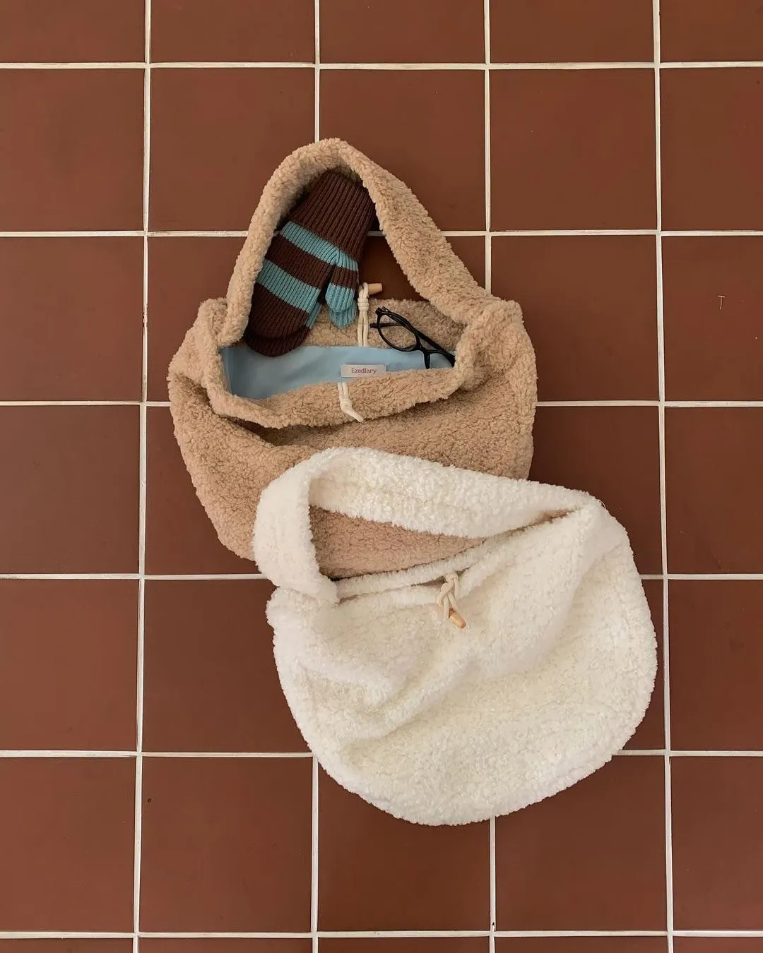 外層QQ毛 有內裡 套圈木釦閉合 可手提可肩背 45*32*8公分