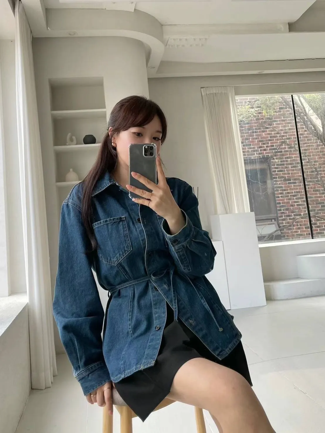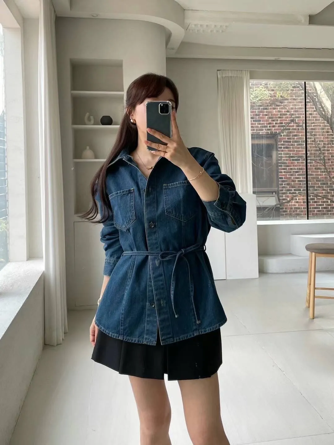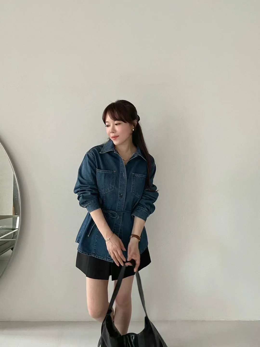胸前大口袋 車線跳色感 立體車線增加修身感 挺版 微厚度 163穿可遮屁股