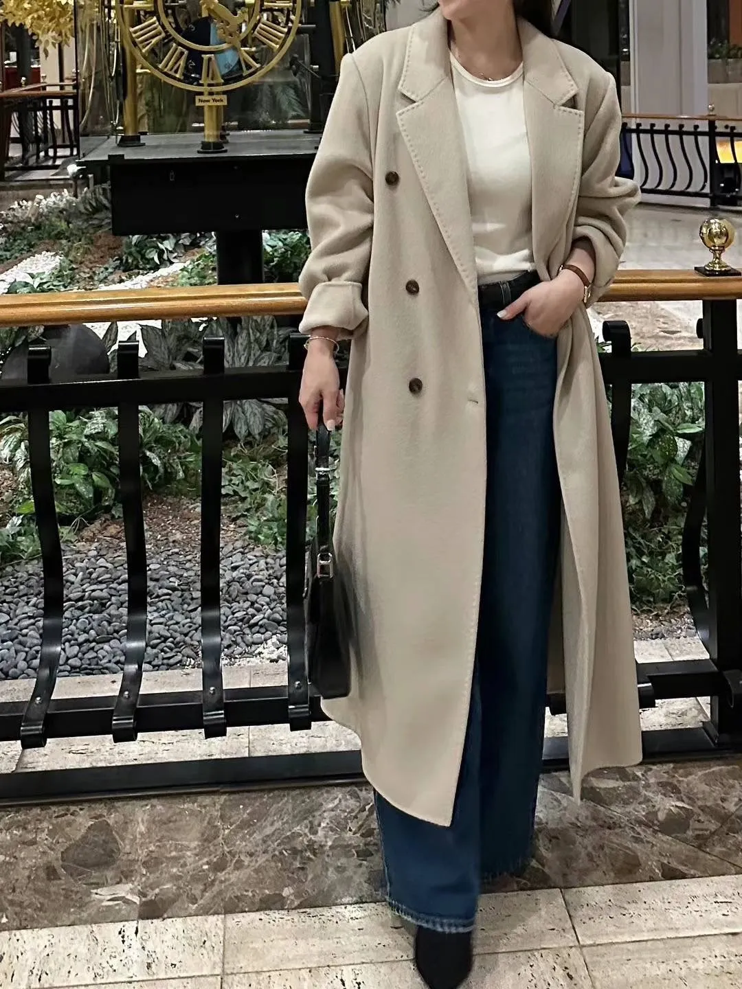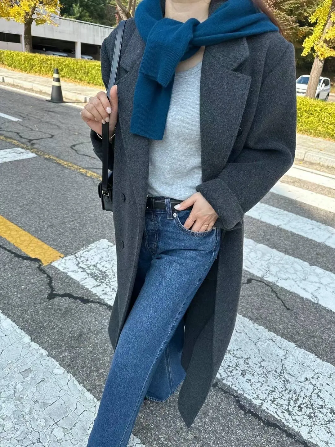 LV784手工羊毛長版大衣 灰 米 官網價$5590 線上價$5560