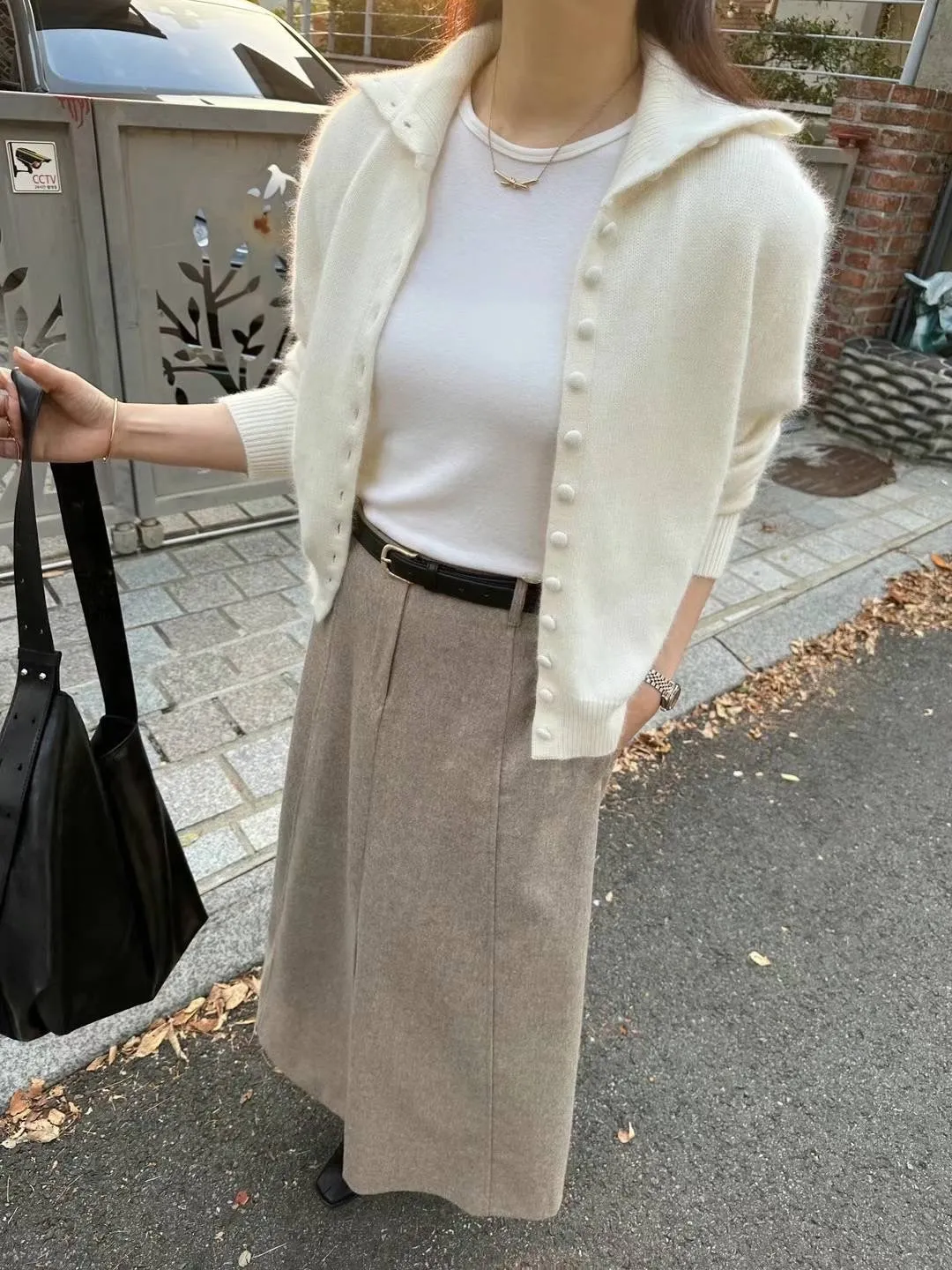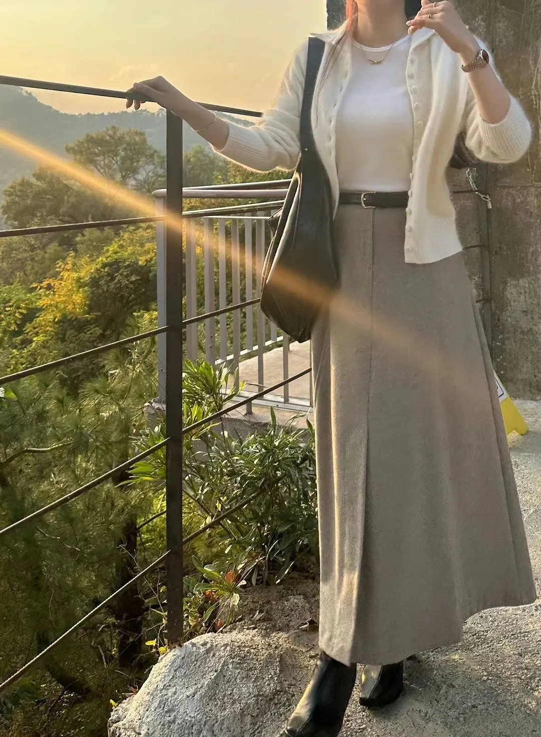 LV786傘擺前開岔長裙 灰 米 咖 官網價$1770 線上價$1740