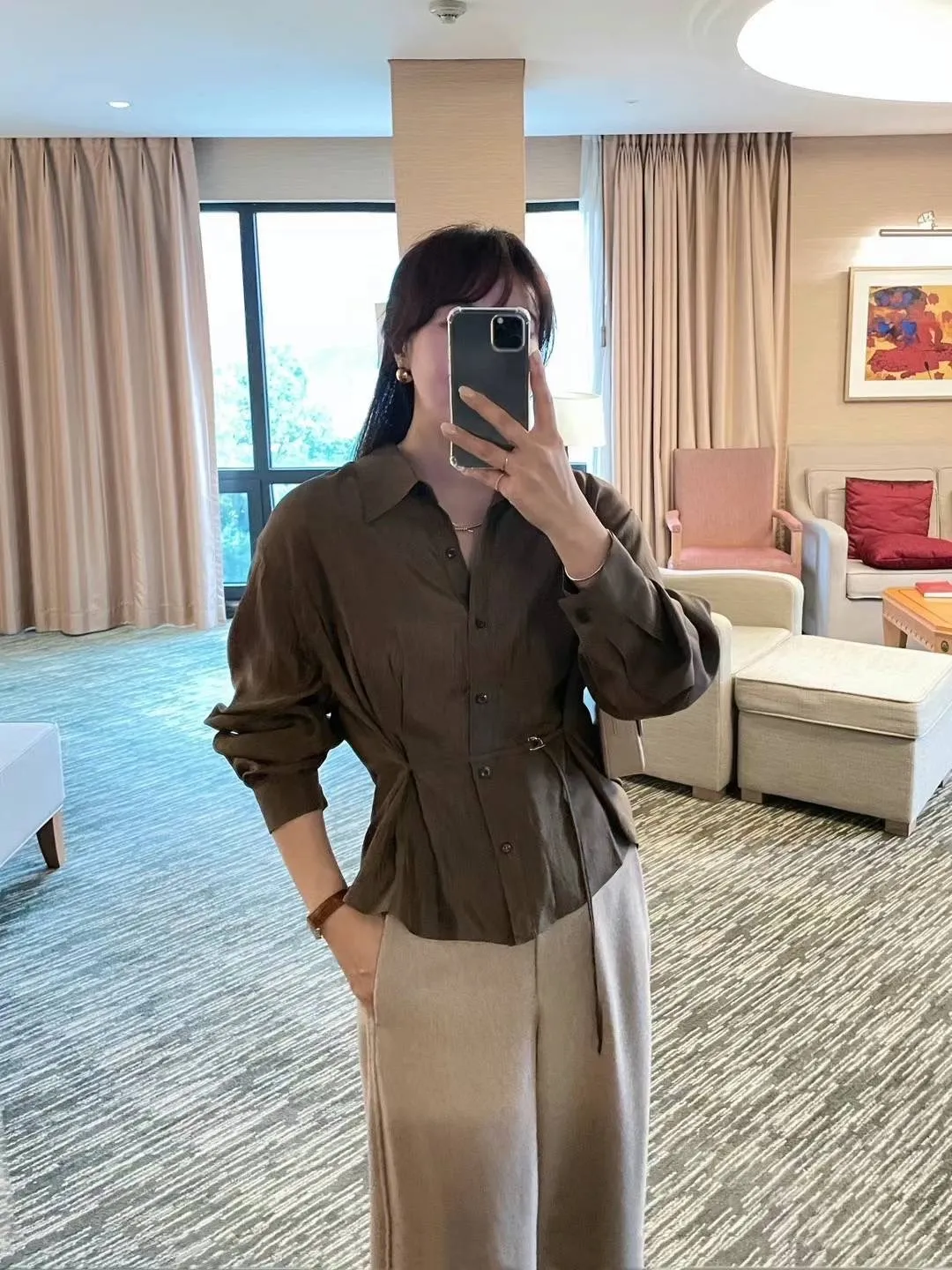 LV798仿麂皮設計感襯衫 米 綠 咖 官網價$1350 線上價$1320