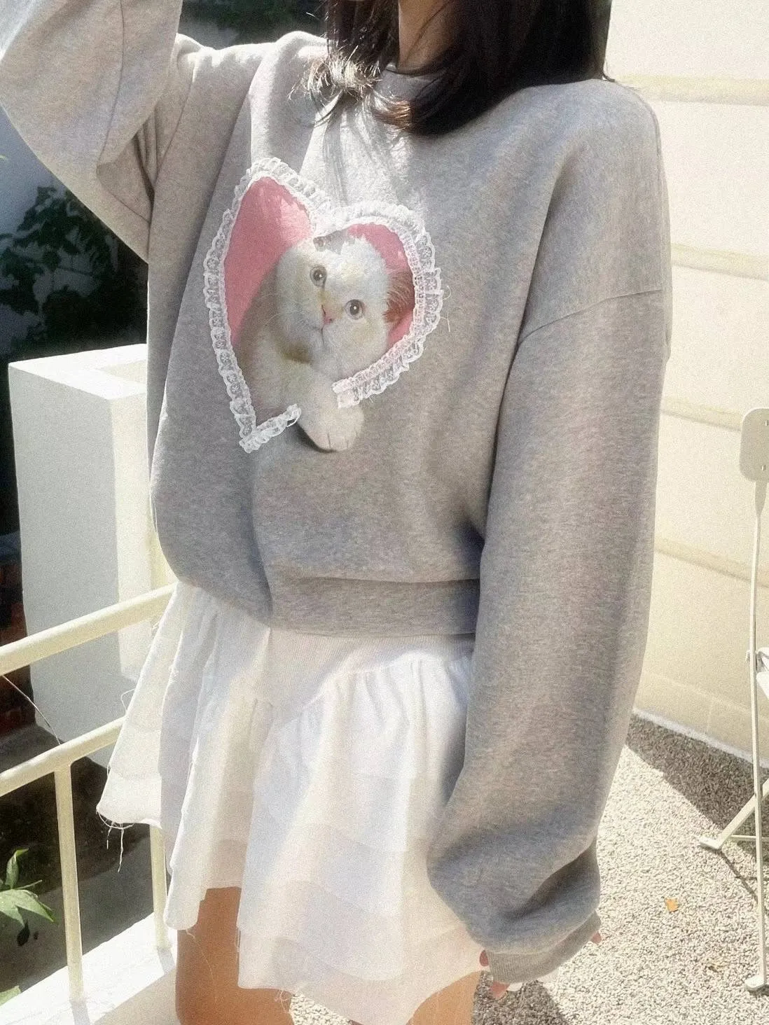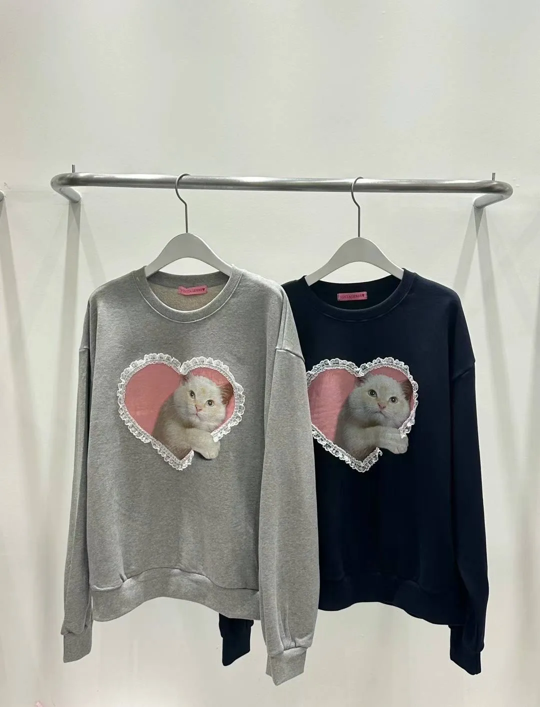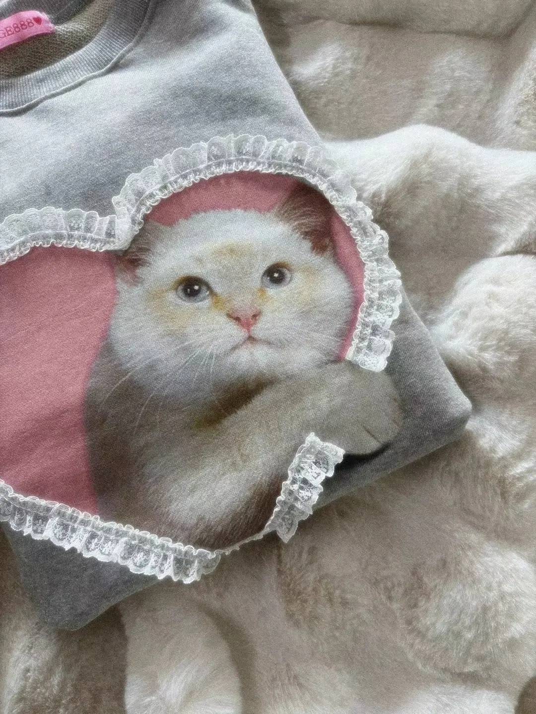 棉,立體蕾絲愛心 貓咪手手偷伸出愛心框框