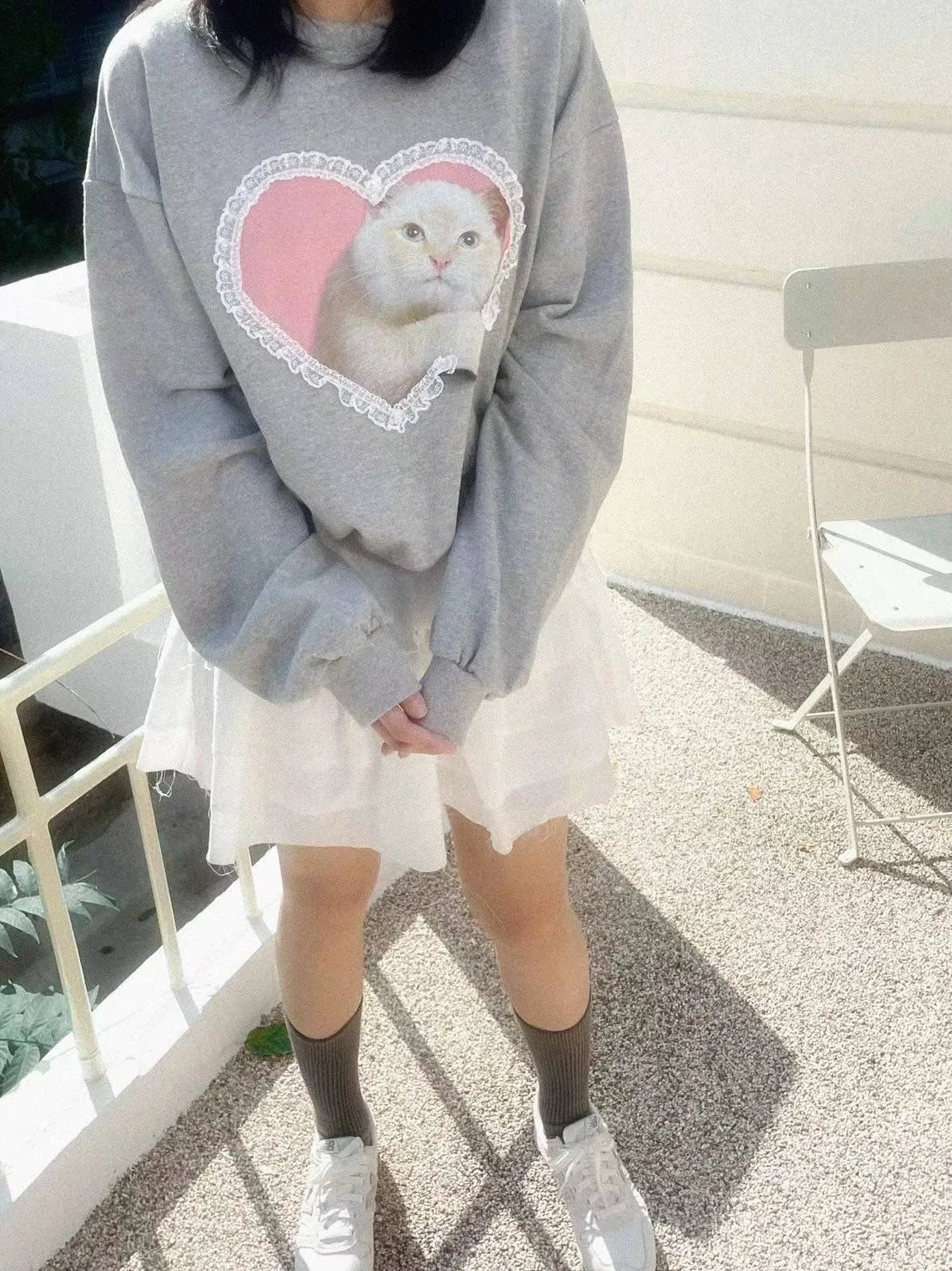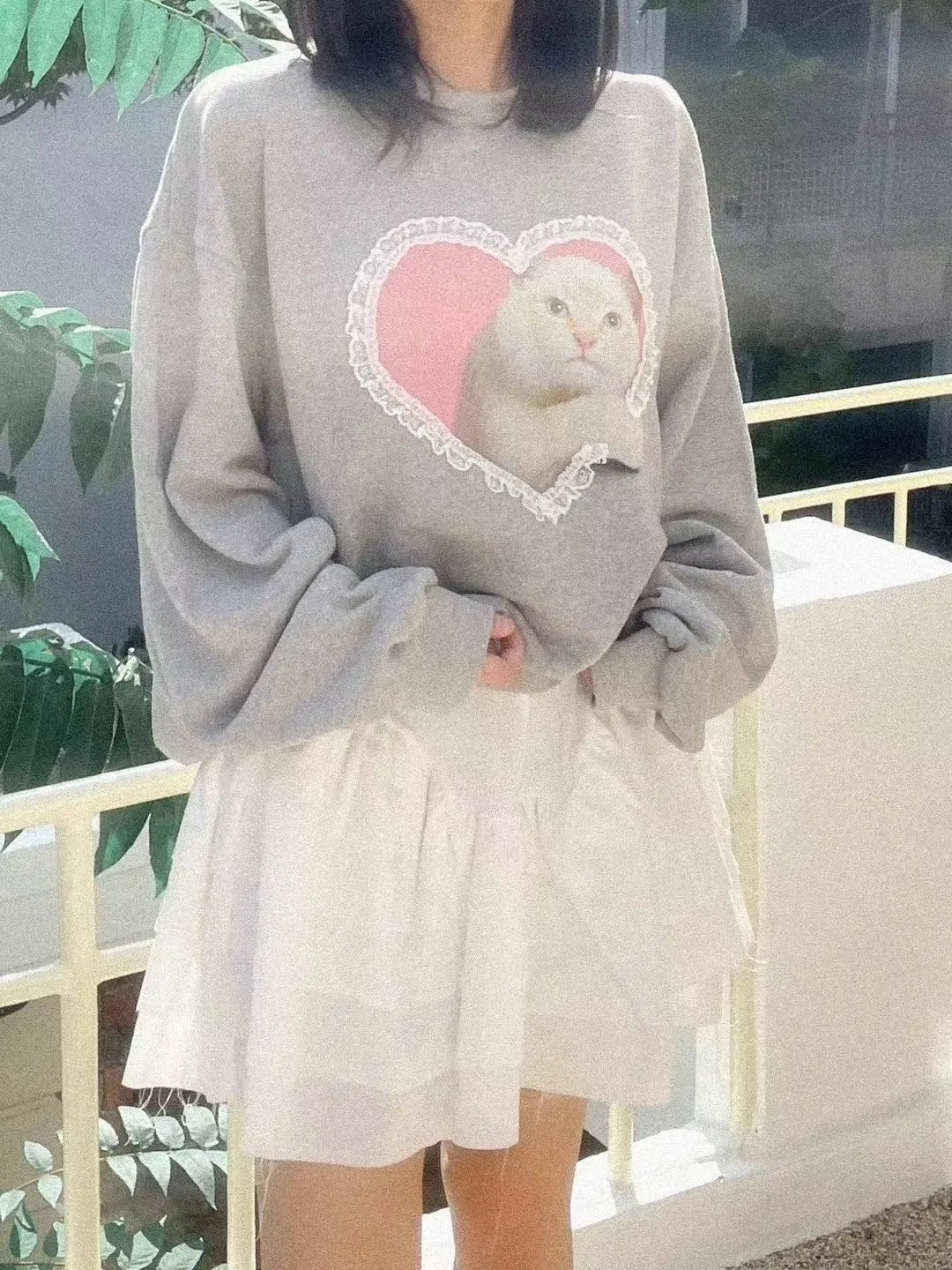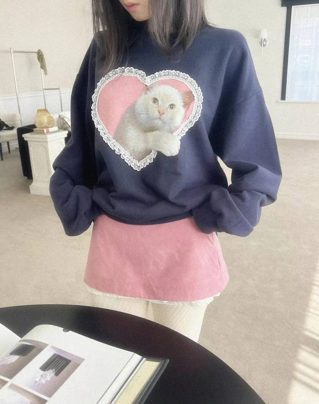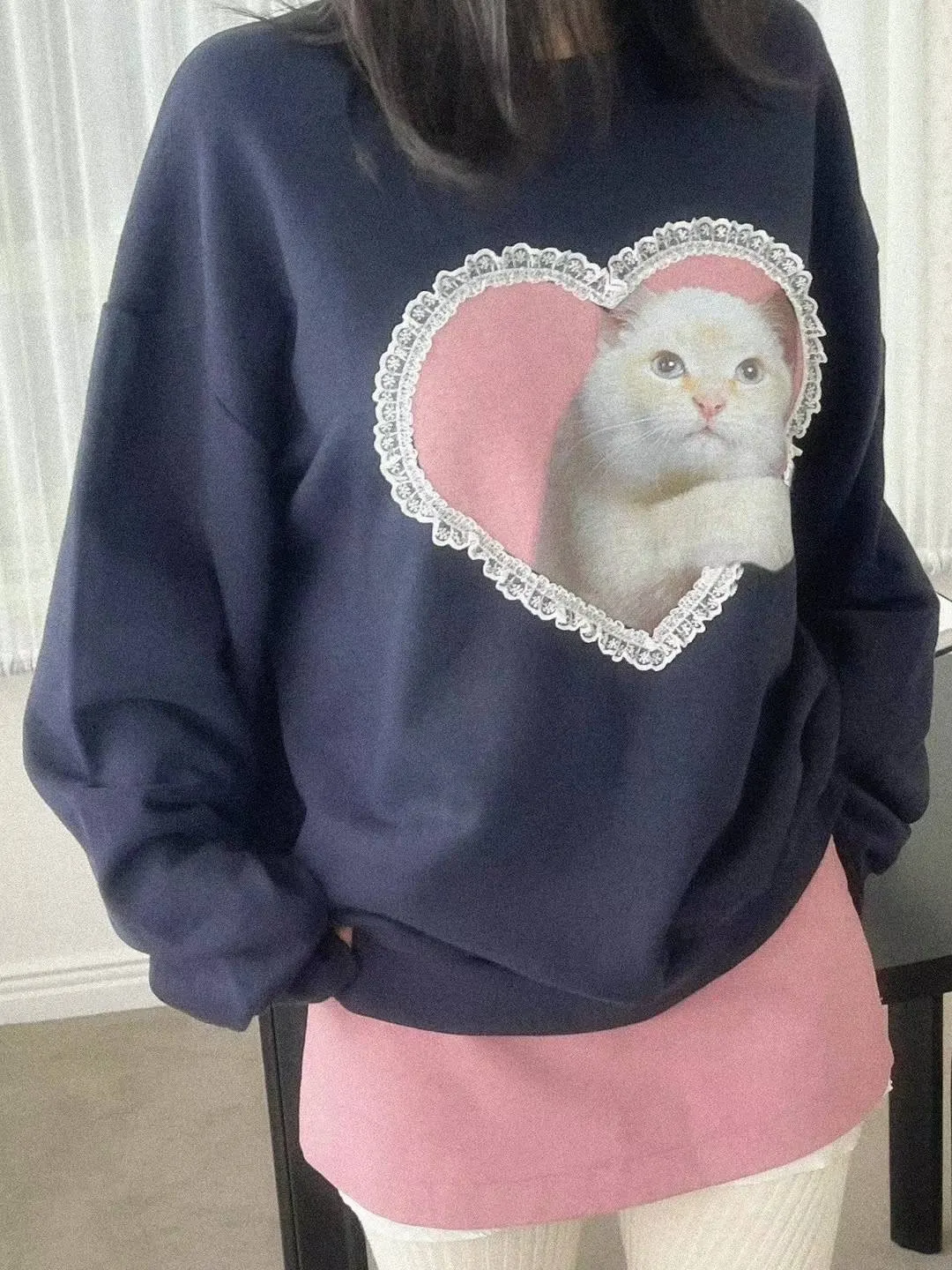 棉,立體蕾絲愛心 貓咪手手偷伸出愛心框框
