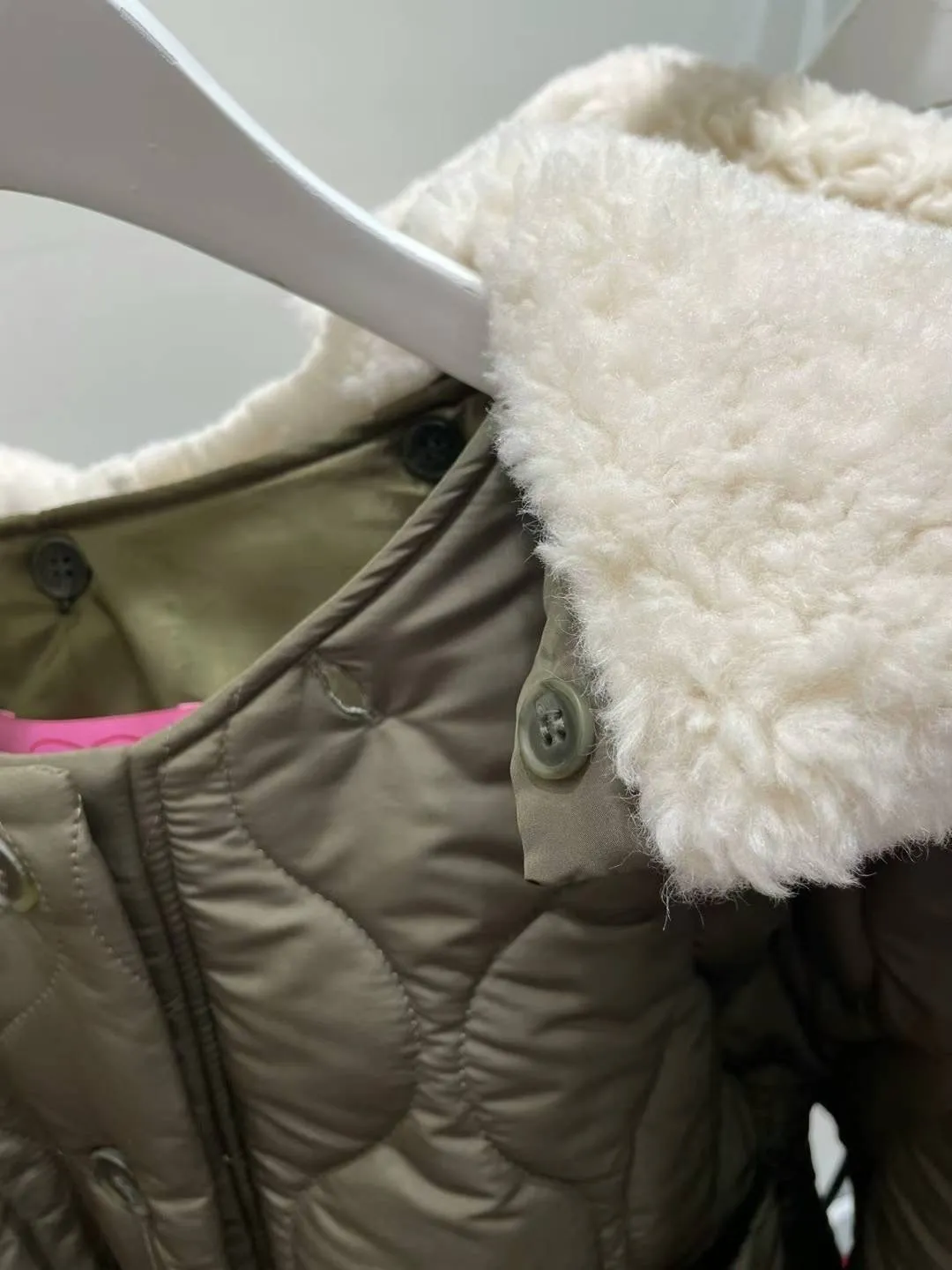 棉 手袖抽繩 釦子穿脫 有口袋 QQ毛毛翻領 輕盈不重