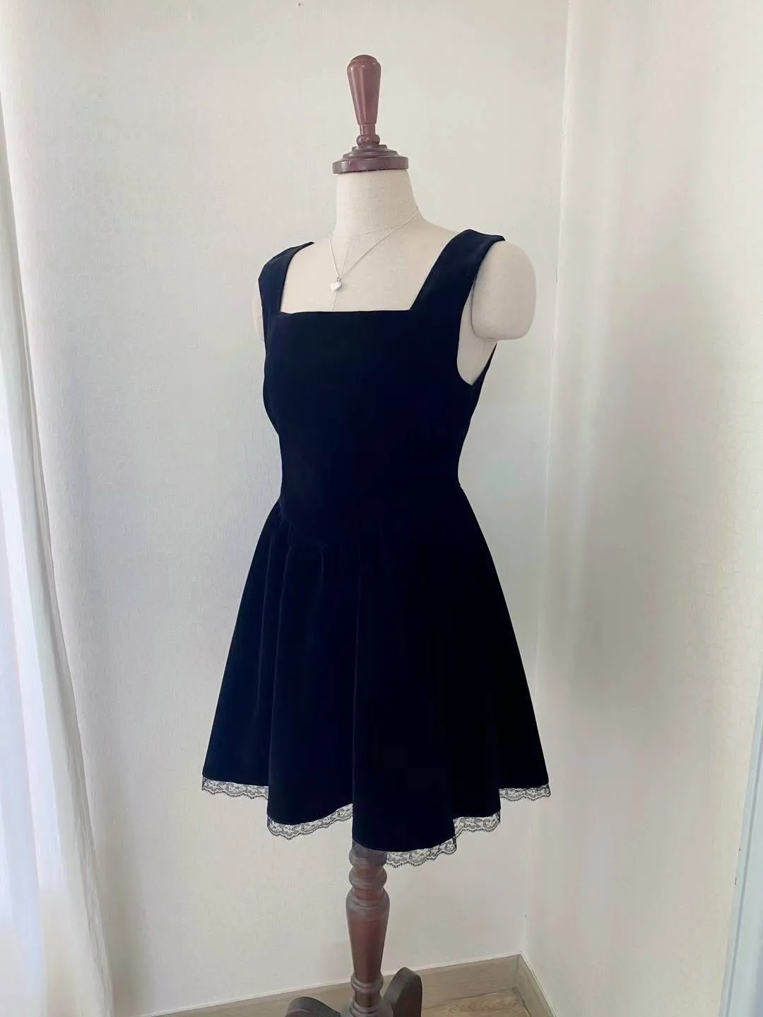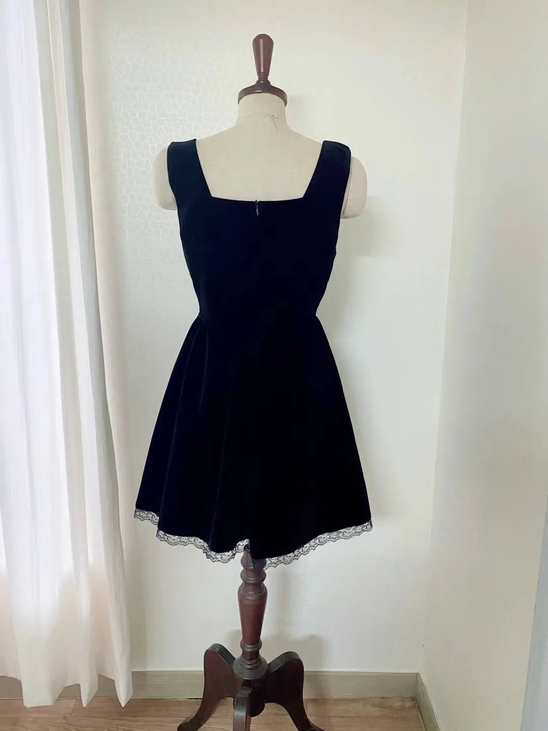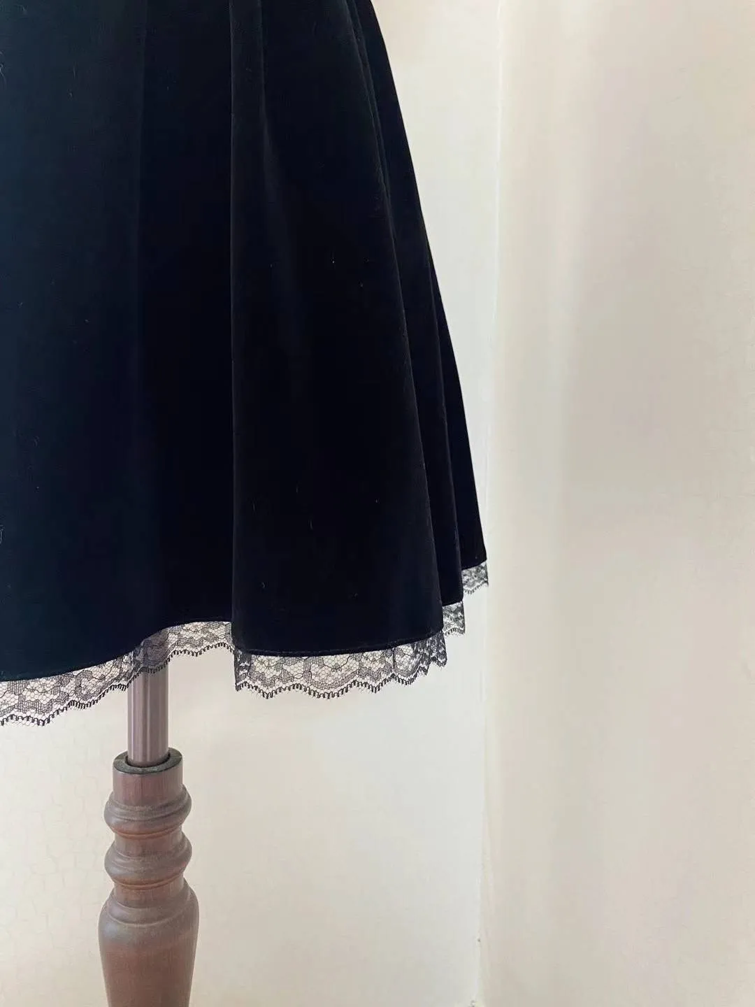 聚酯 高級天鵝絨 下擺透光睫毛蕾絲 有內裡