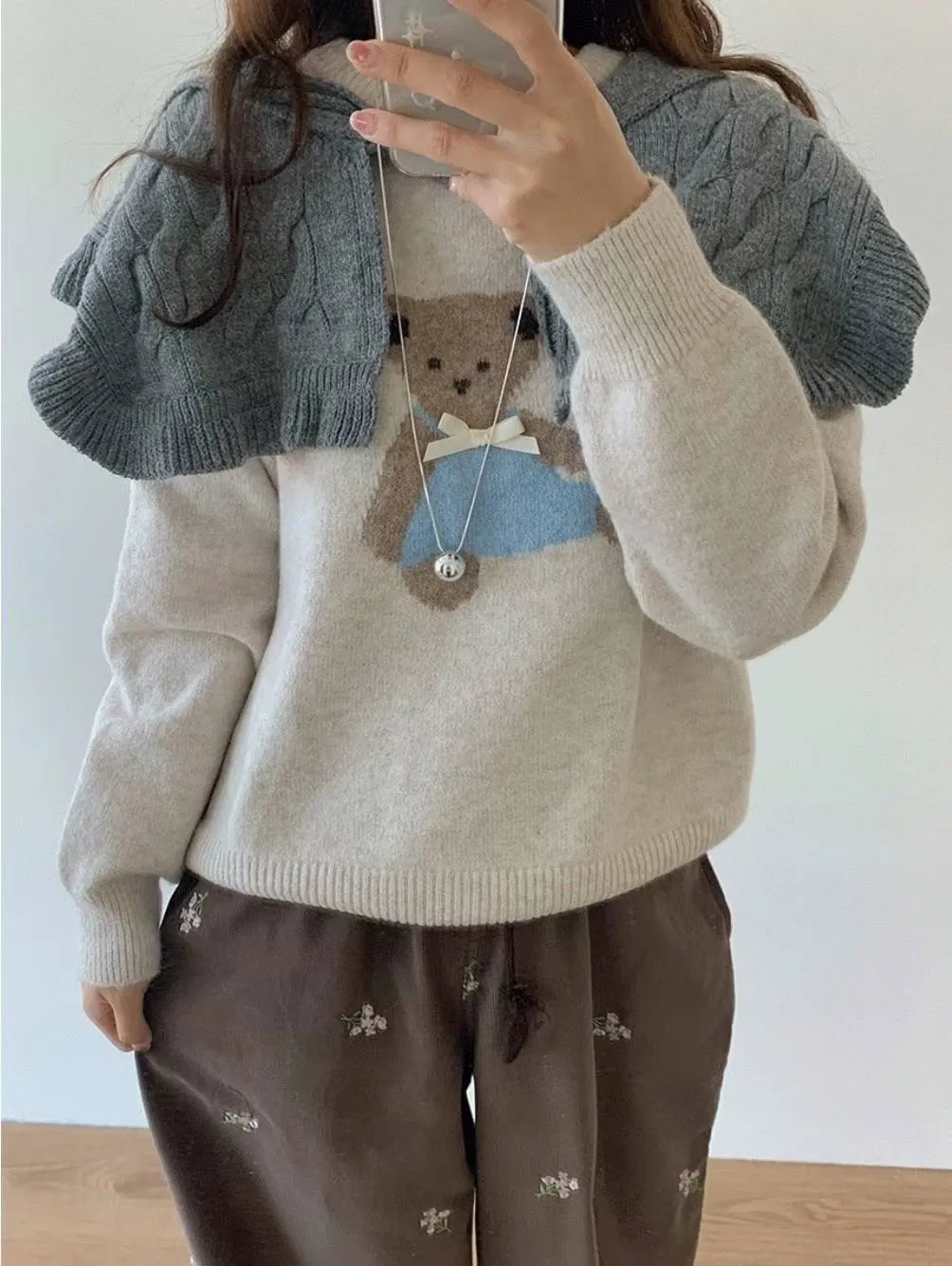 羊毛60% 不刺癢 熊熊穿洋裝 立體蝴蝶結 超敏肌略過