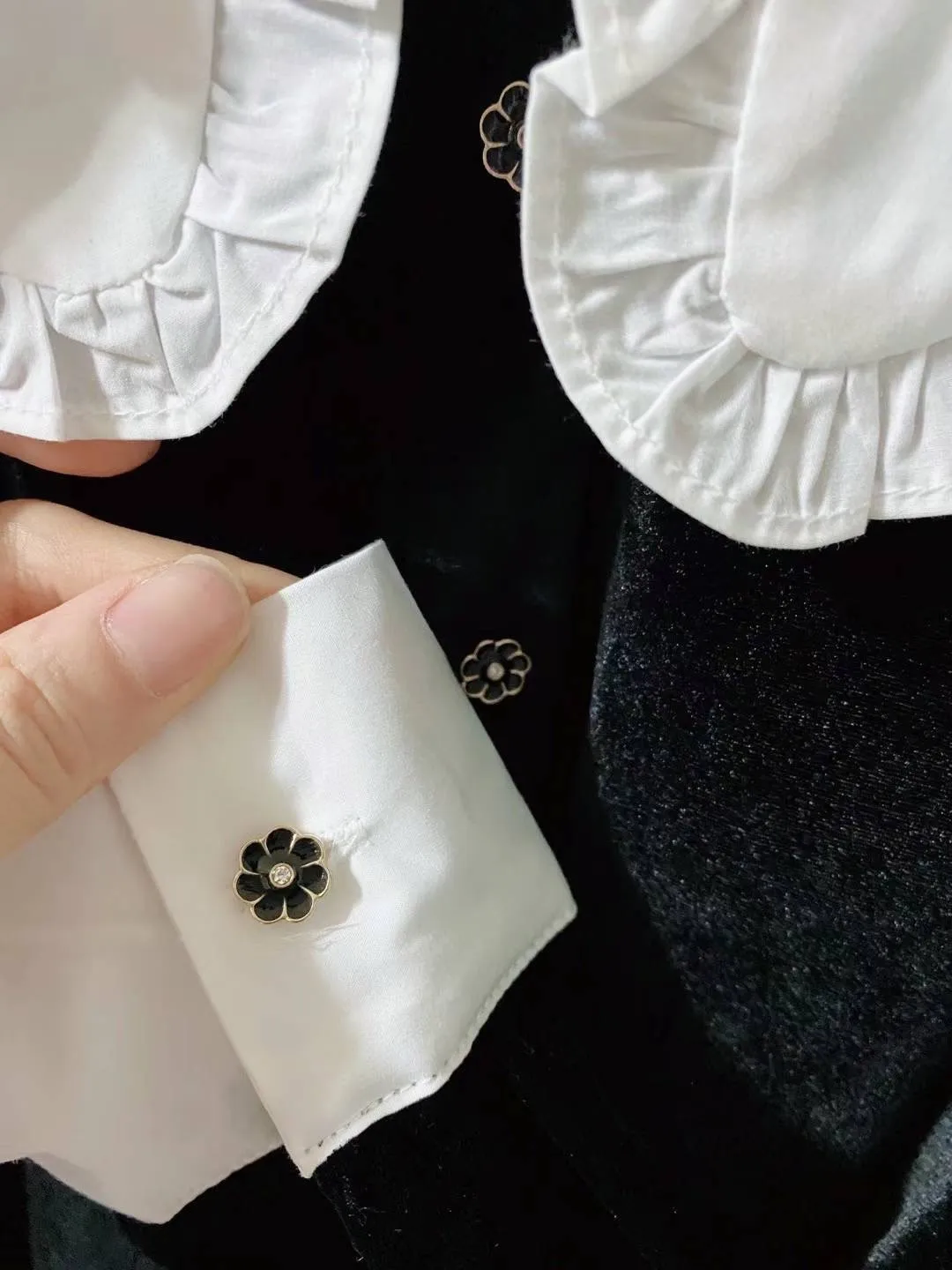 棉+天鵝絨 精緻小花釦 有彈性 袖口有釦 XL友善