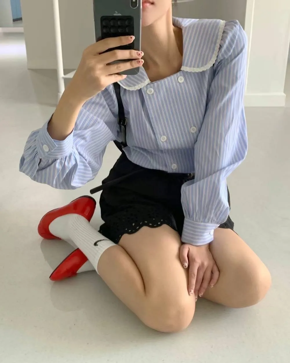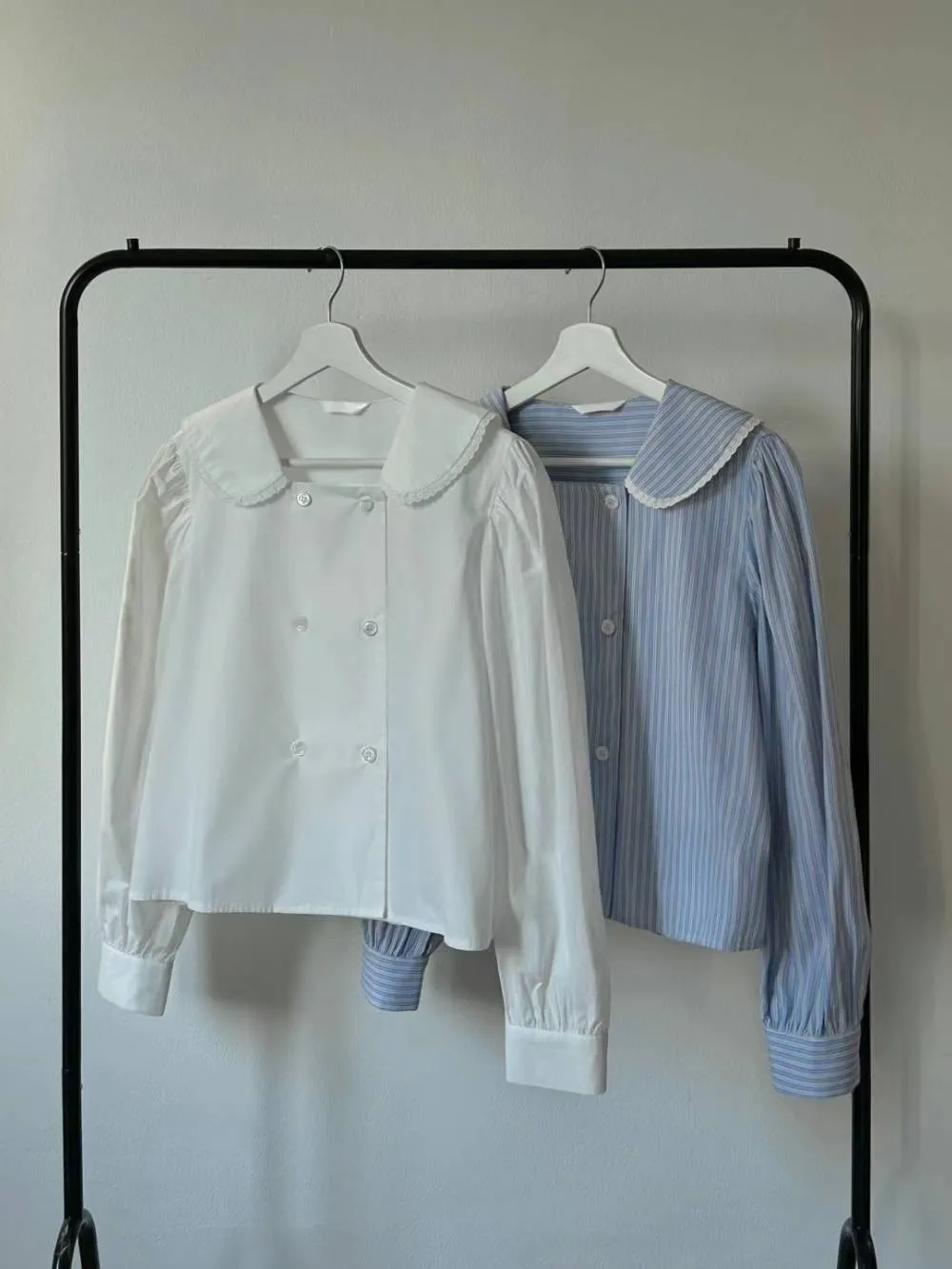 棉+聚酯 觸感滑順 雙排釦 翻領滾邊布蕾絲 百搭下半身