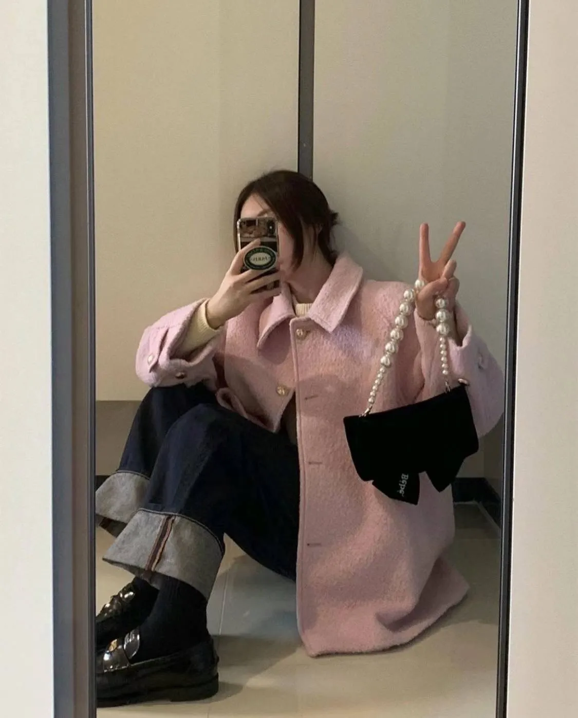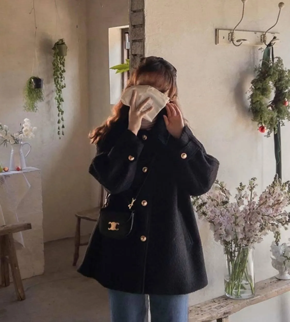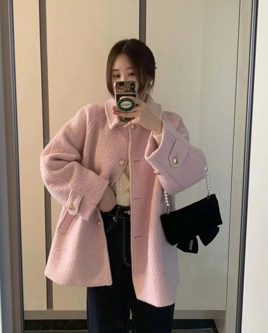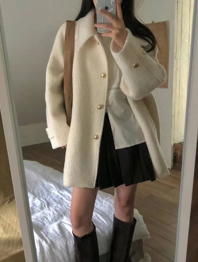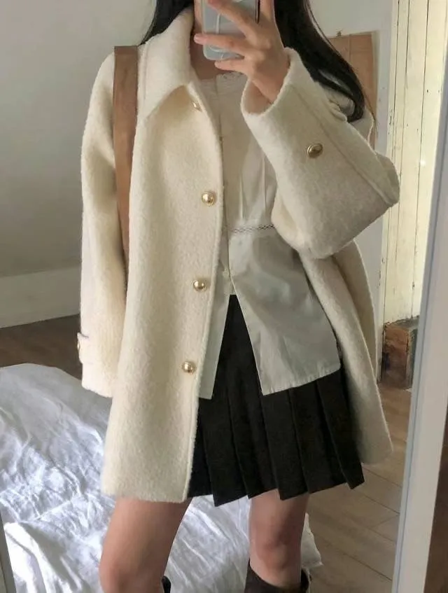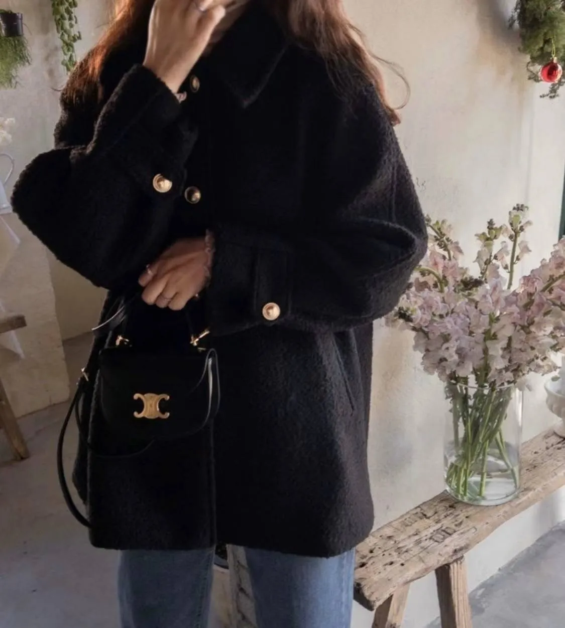 羊毛90% 羊羔QQ毛觸感 金釦穿脫 有口袋 中長版型蓋屁股