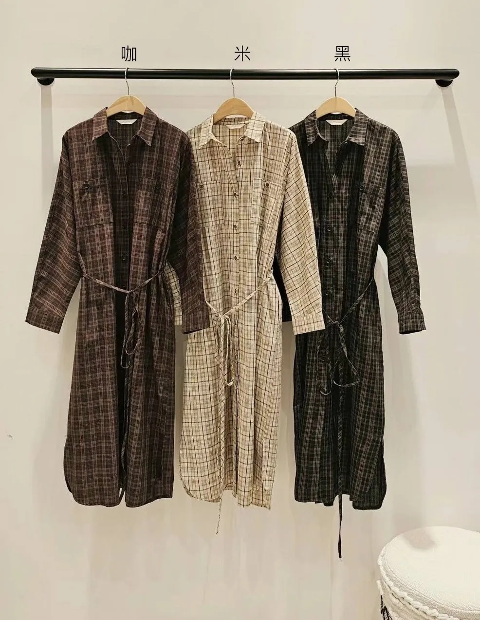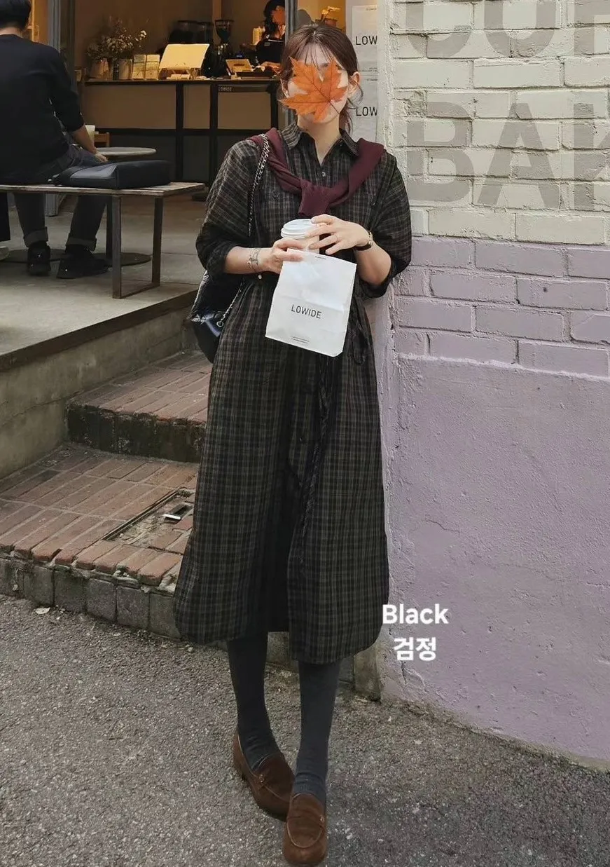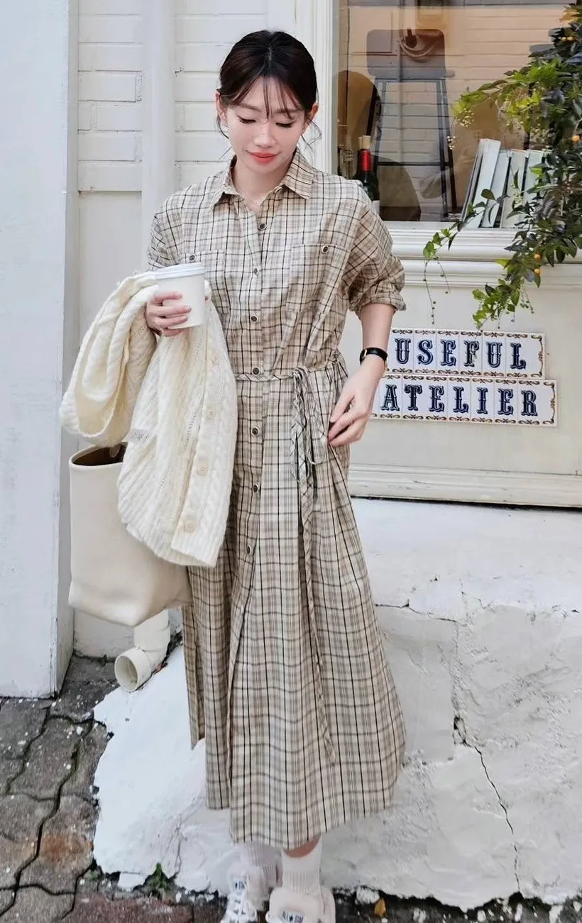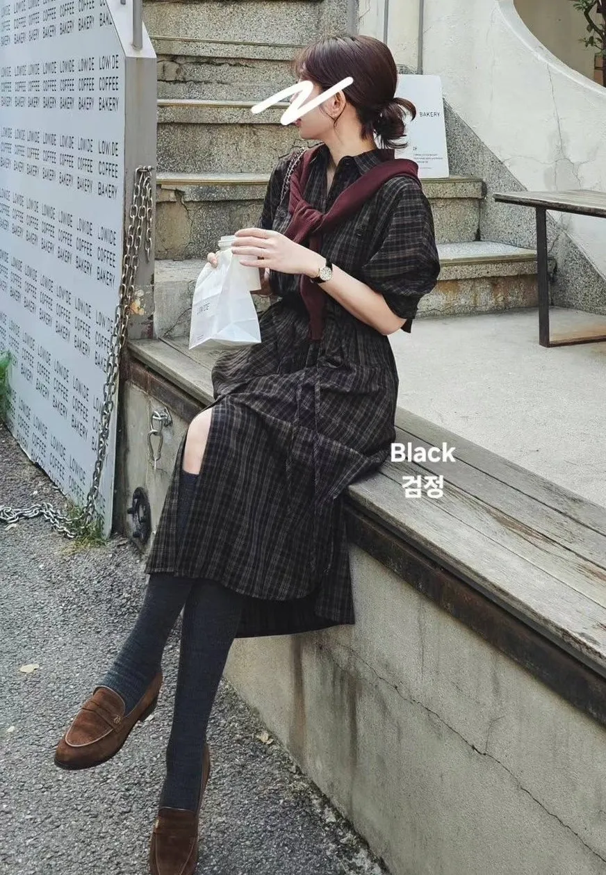 LV921格紋襯衫洋裝 黑 米 咖 官網價$1880 線上價$1850