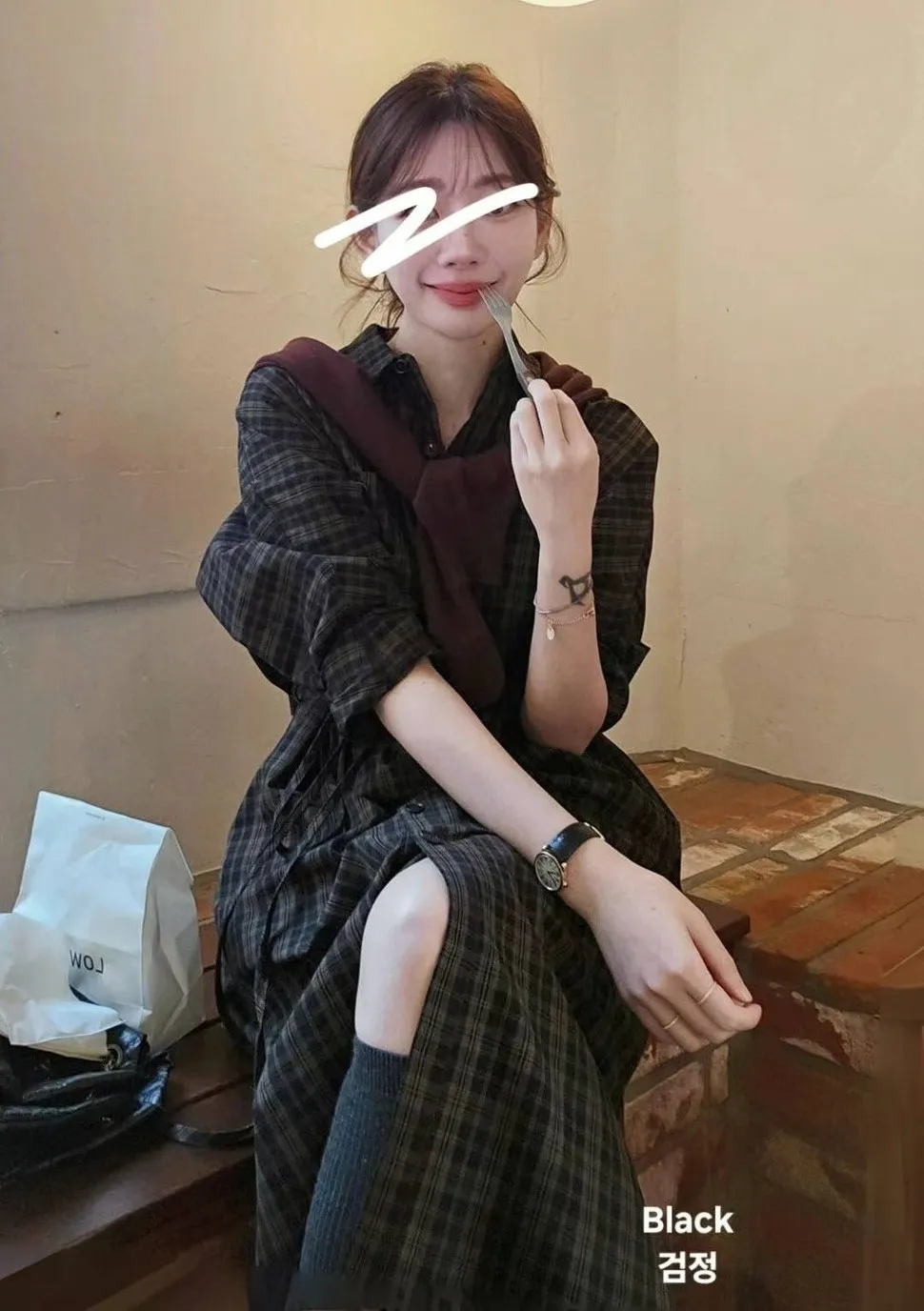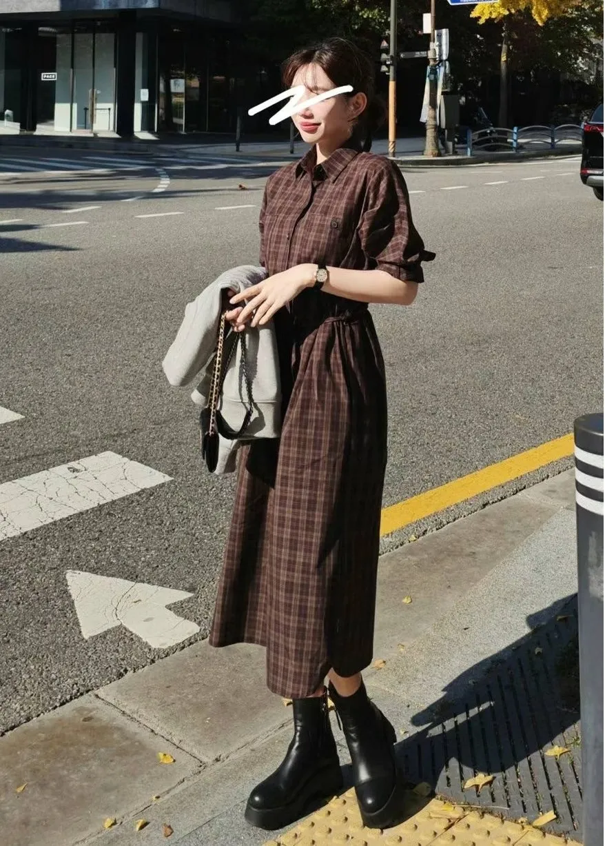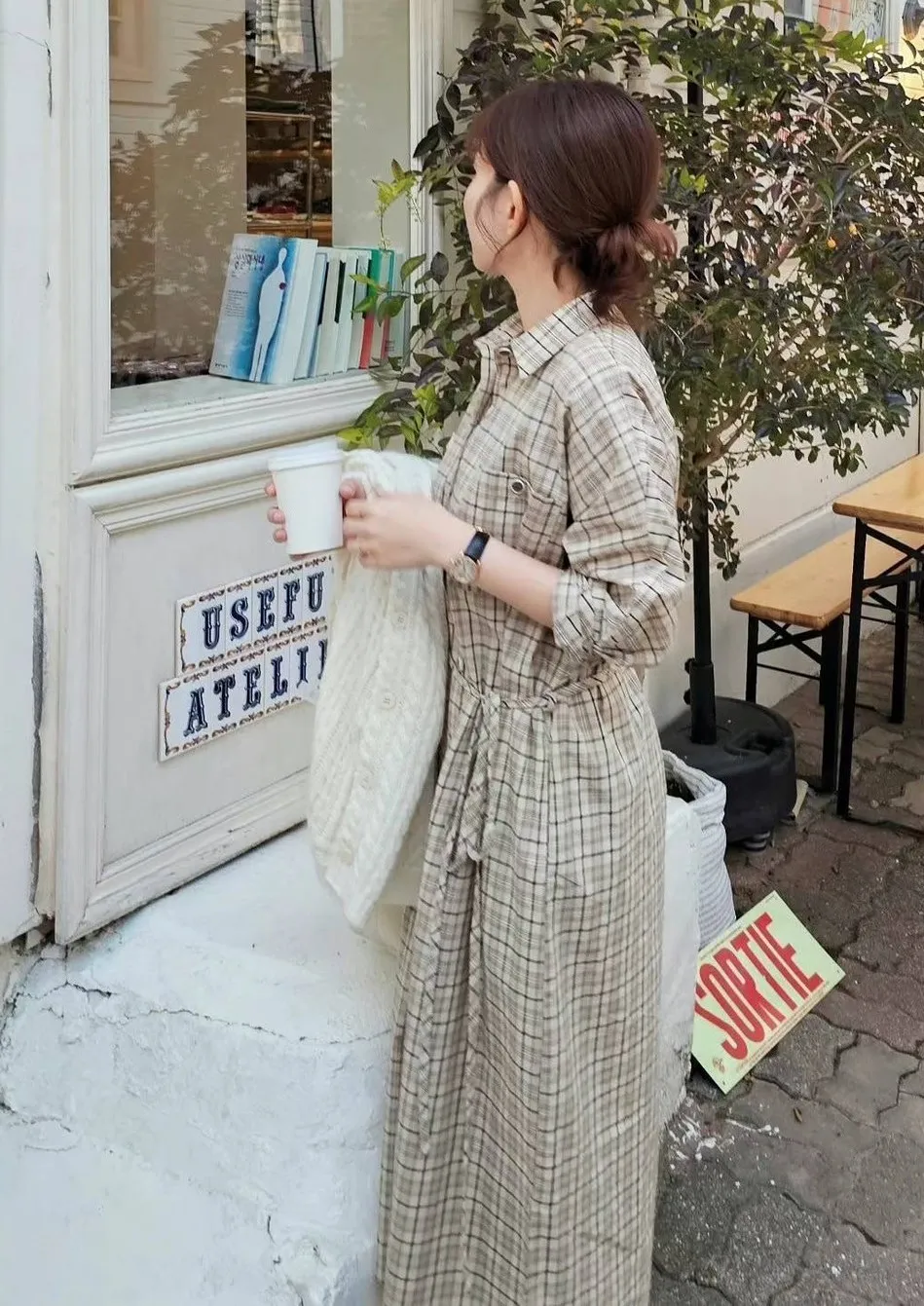 LV921格紋襯衫洋裝 黑 米 咖 官網價$1880 線上價$1850