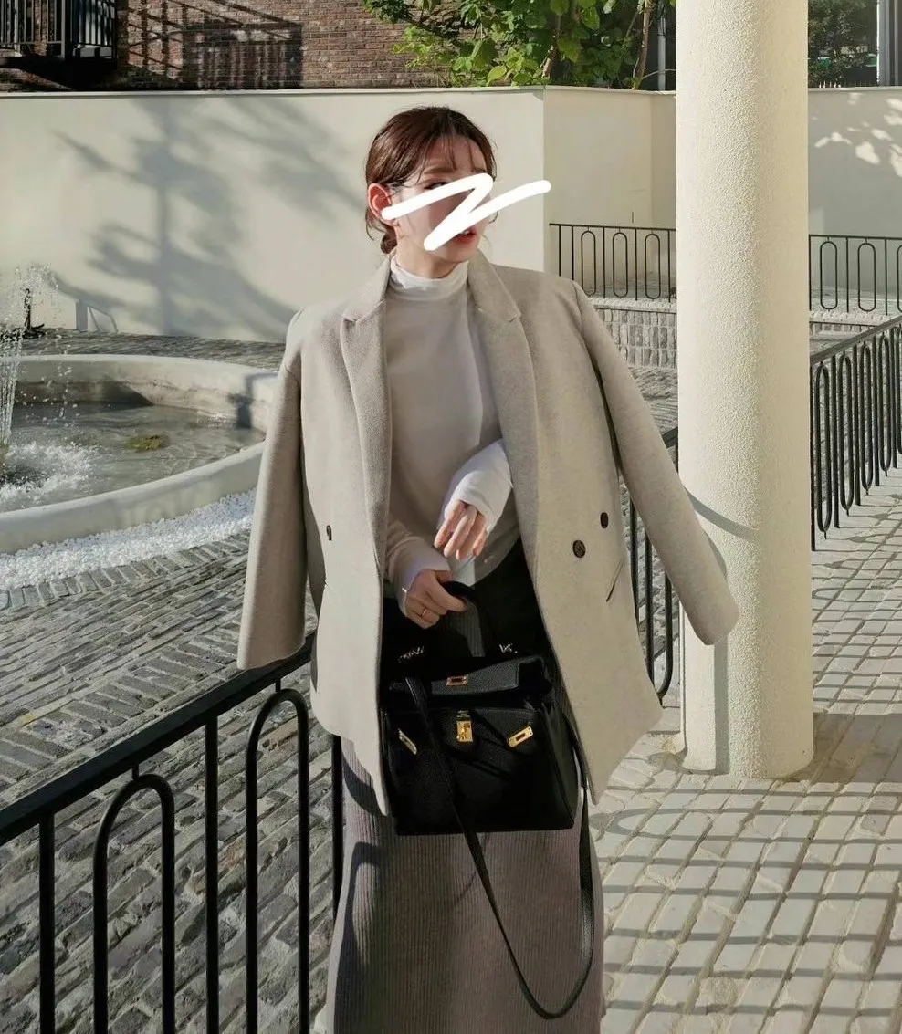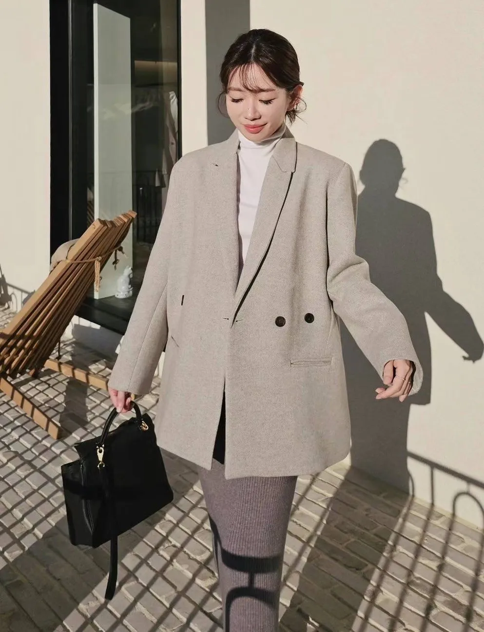 LV942羊毛織紋西裝大衣 奶茶 灰 官網價$2870 線上價$2840