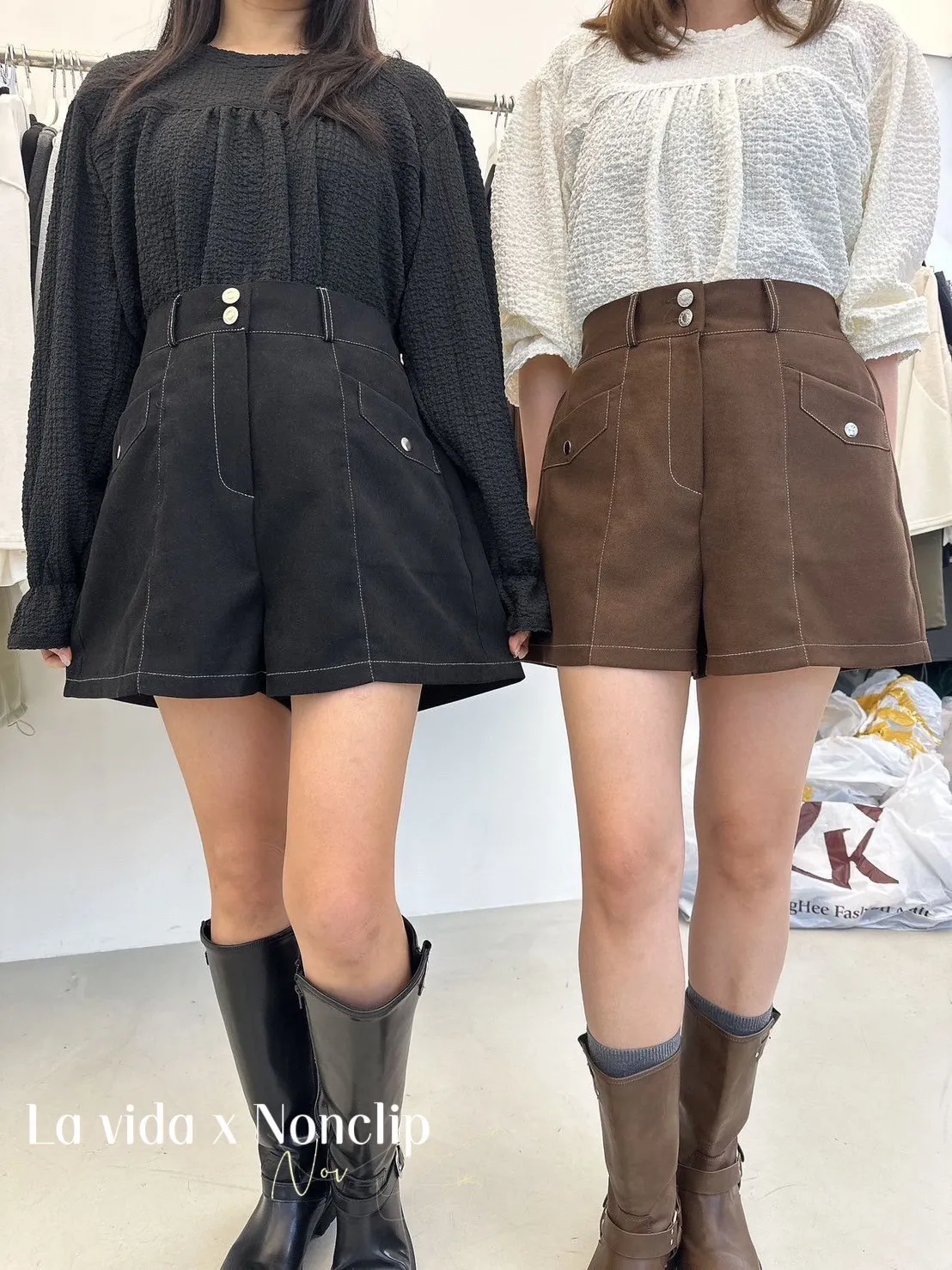 LV961推薦款高腰雙釦Aline短褲 咖 黑 S M L 官網價$799 線上價$769