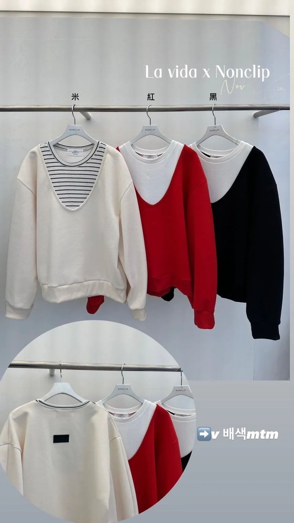LV964層次U領設計上衣 米 紅 黑 官網價$740 線上價$710