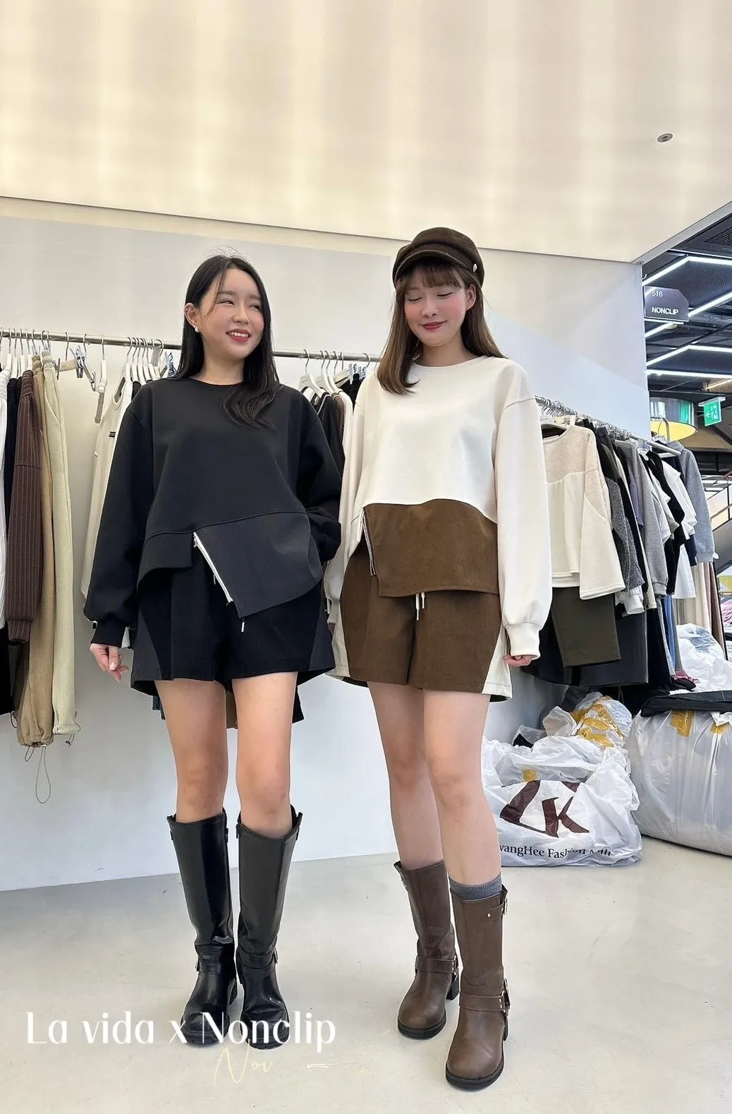LV966套裝的側拚色短褲 咖 黑 S M 官網價$690 線上價$660