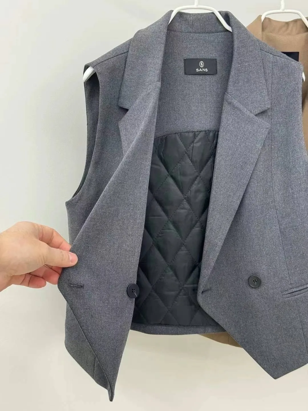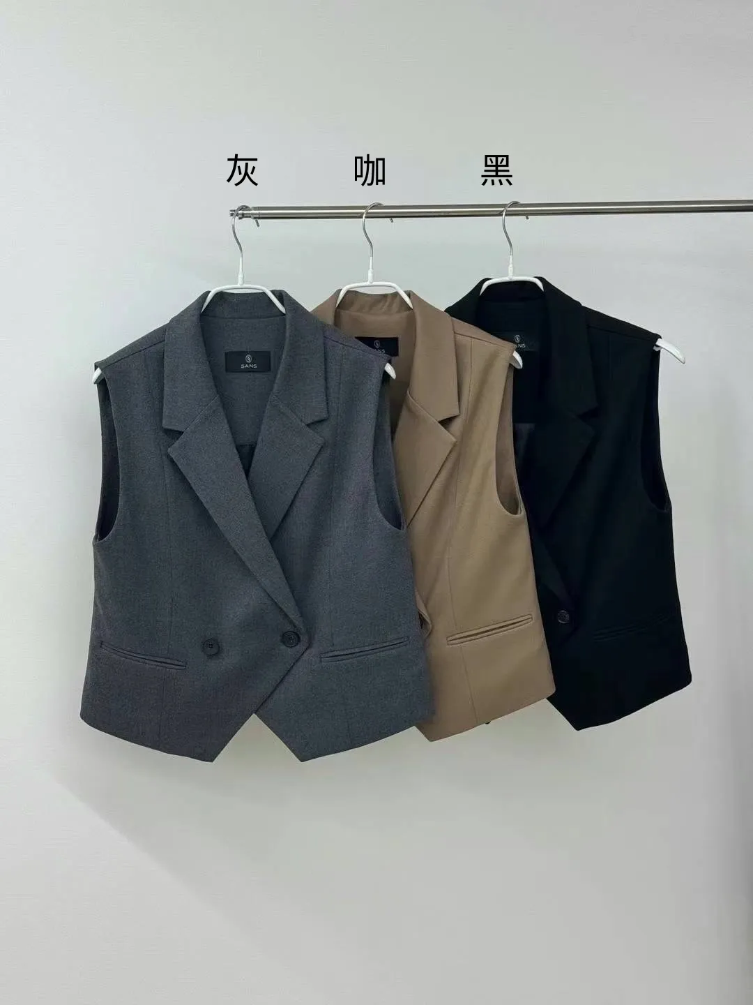 LV982套裝的雙釦腰身西裝領背心 灰 咖 黑 官網價$1380 線上價$1350