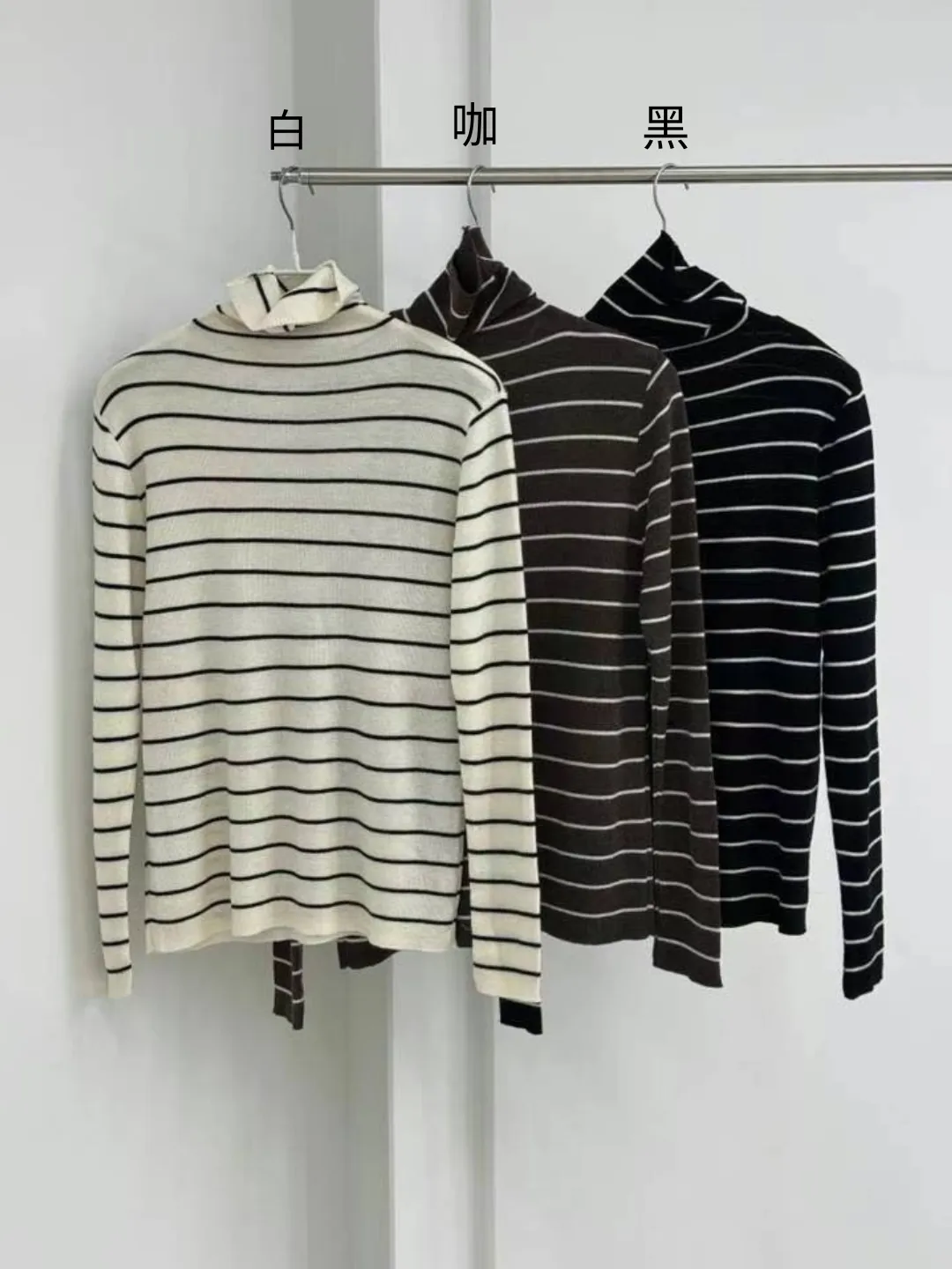 LV989鬆弛感高領條紋上衣 白 咖 黑 奶茶 官網價$610 線上價$580