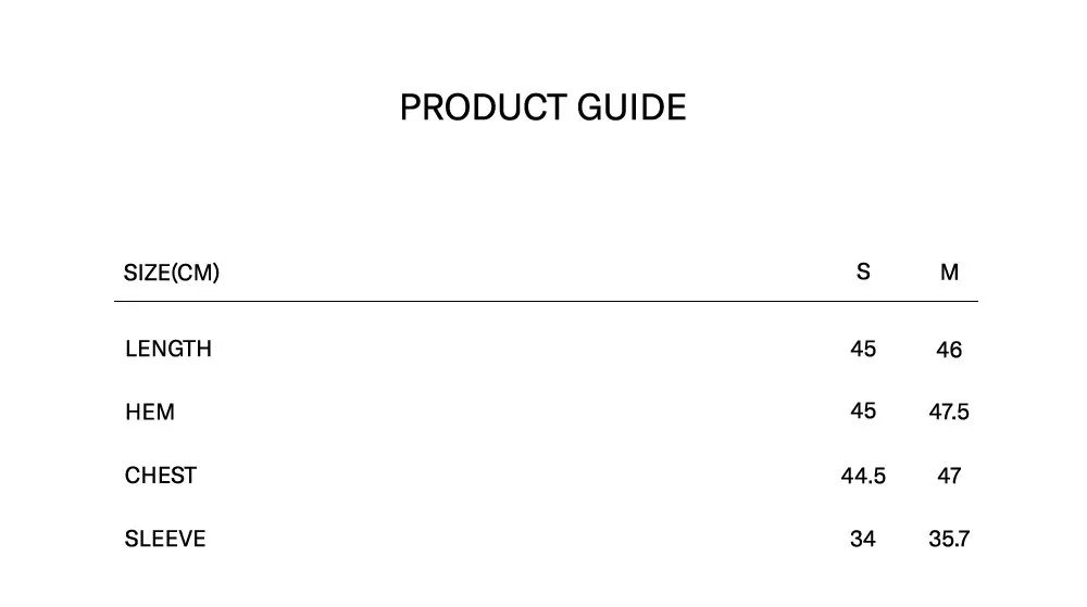 S肩寬36胸寬44.5袖長34全長45