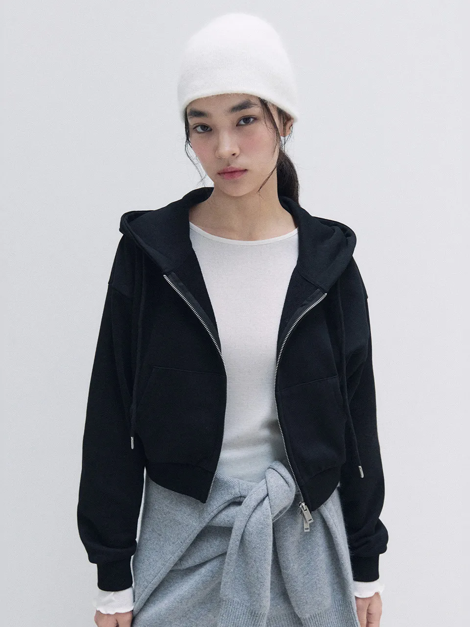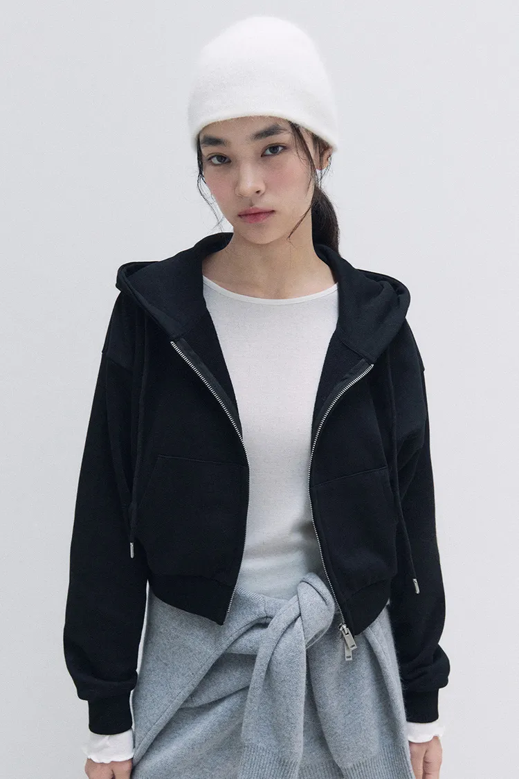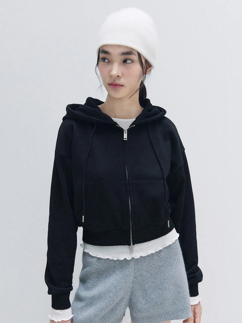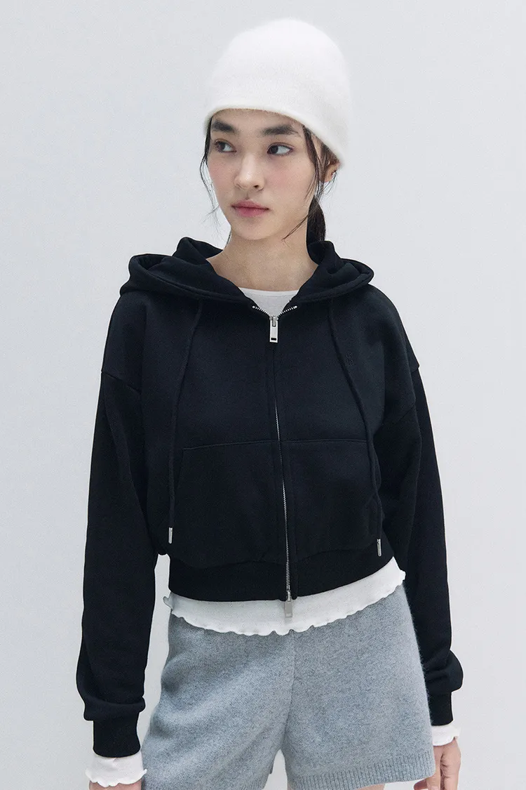 棉 胸前刺繡LOGO 拉鍊穿脫 顯瘦短版好比例