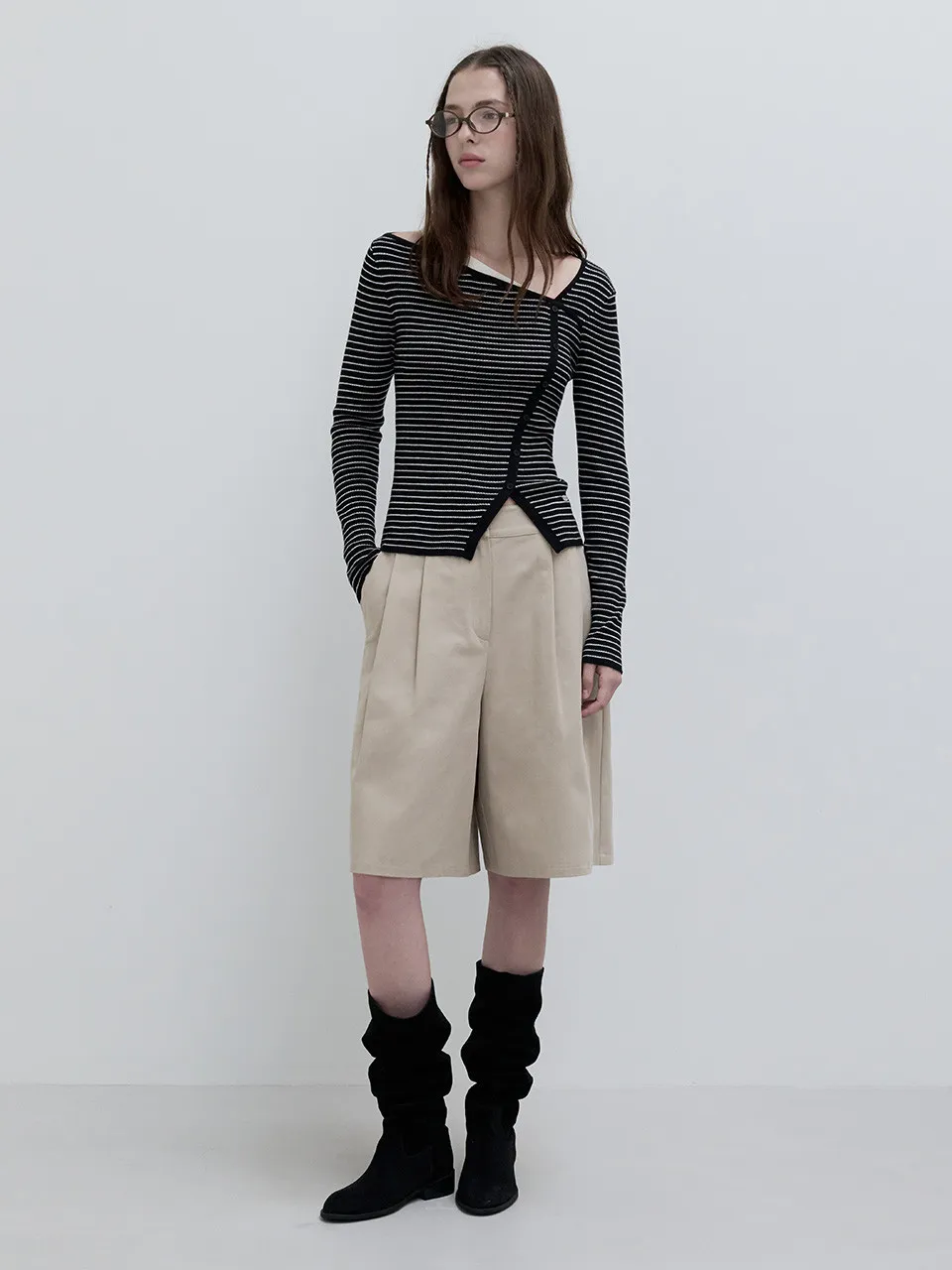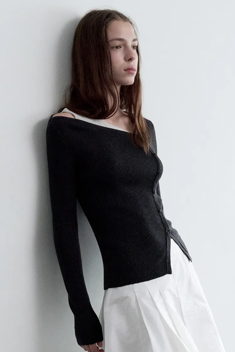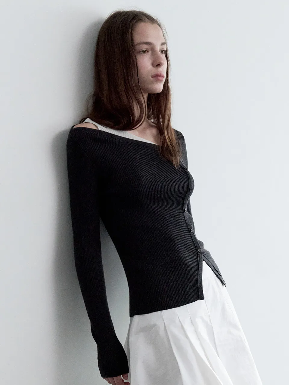 羊毛4%+聚酯+尼龍+壓克力 造型斜領口 腰身剪裁 有彈性 假兩件層次