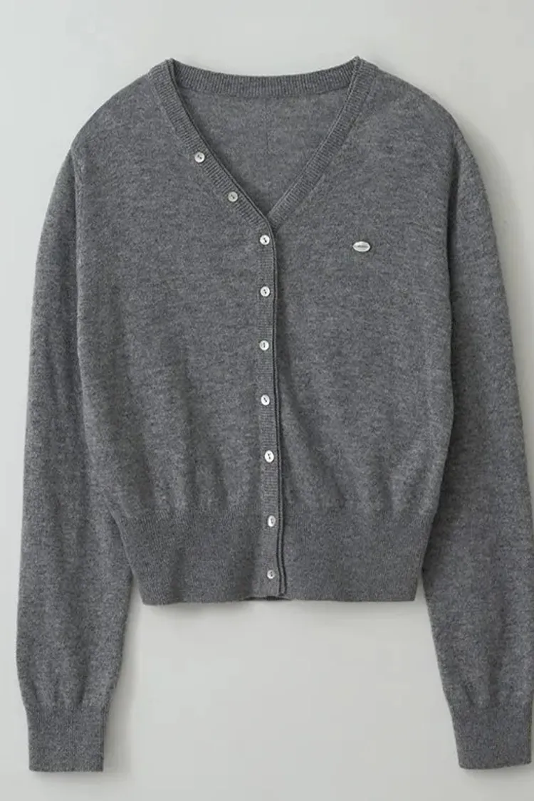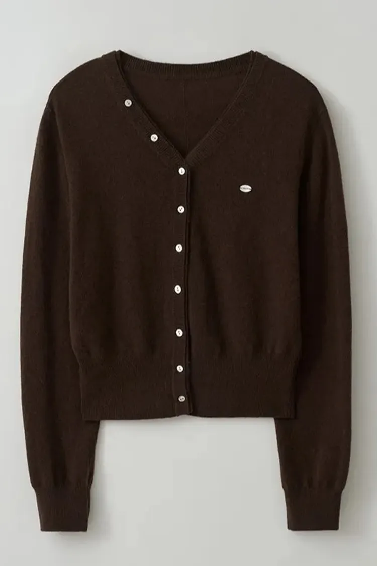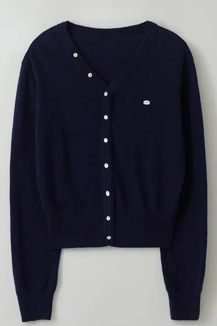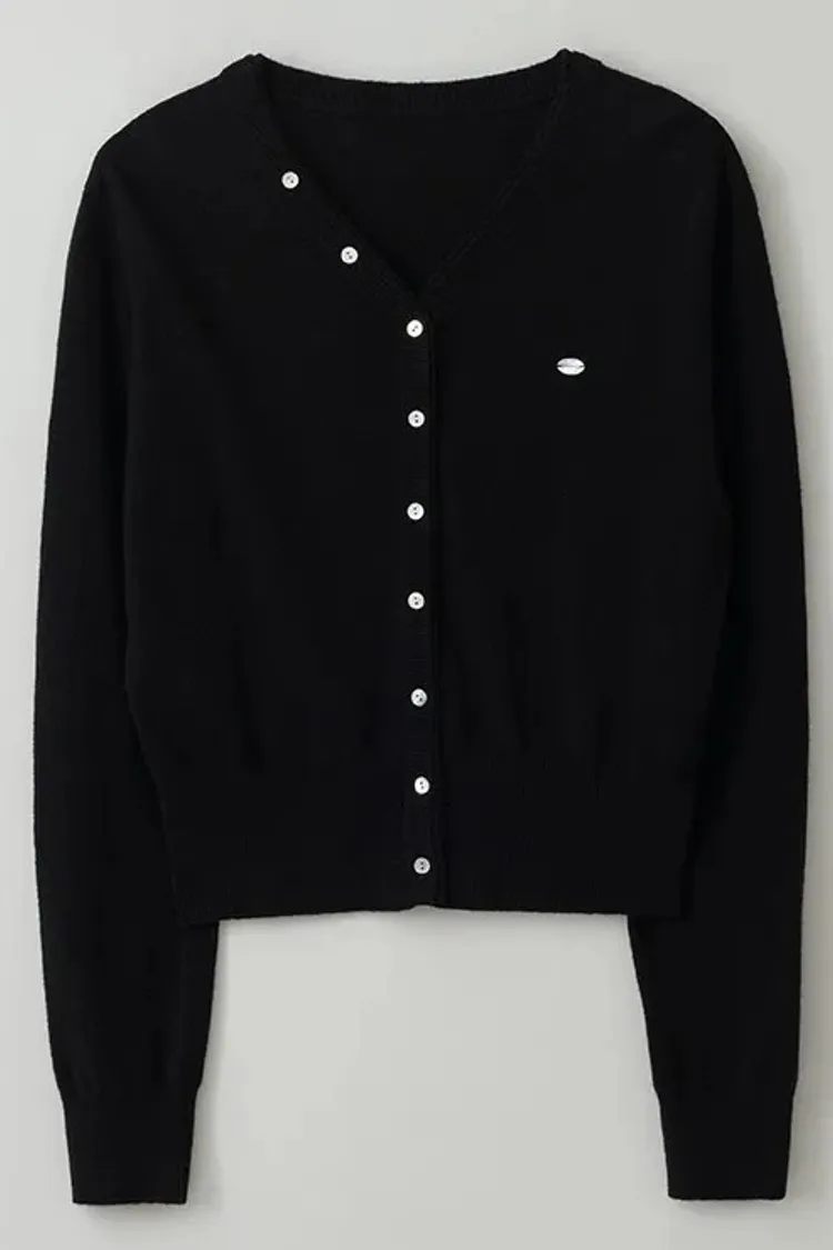 羊毛51%+聚酯+壓克力 不刺癢 排釦穿脫 V領顯瘦 胸前貝殼小標 精緻貝殼扣