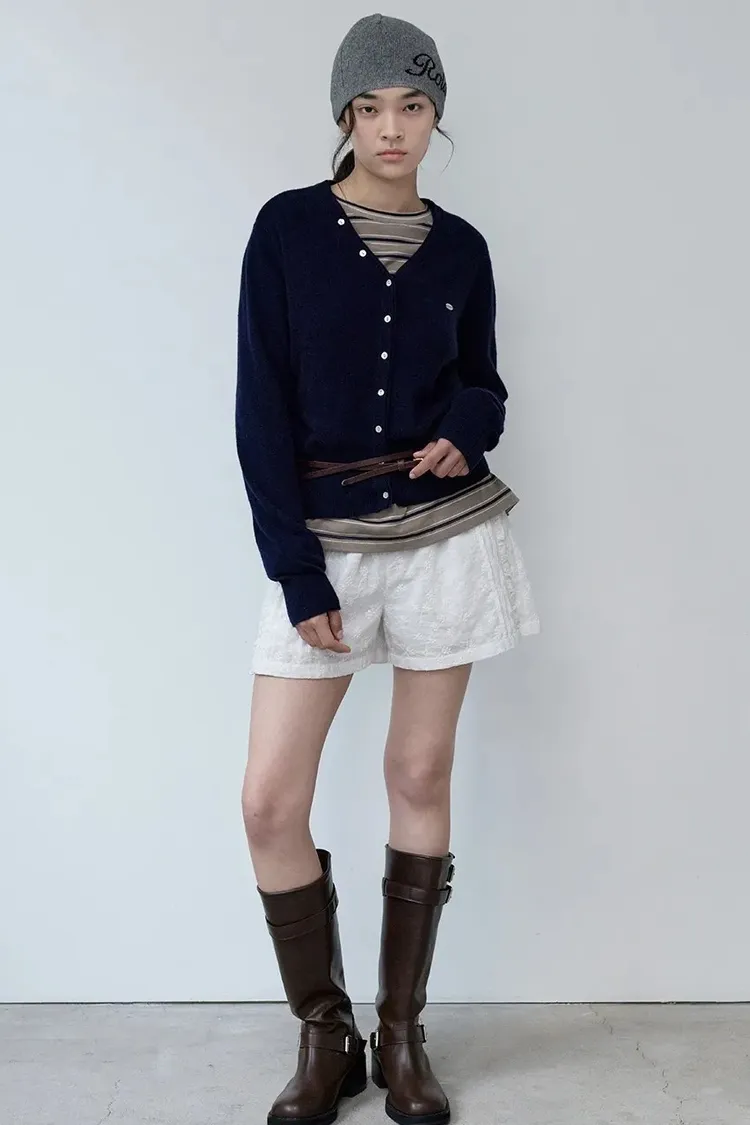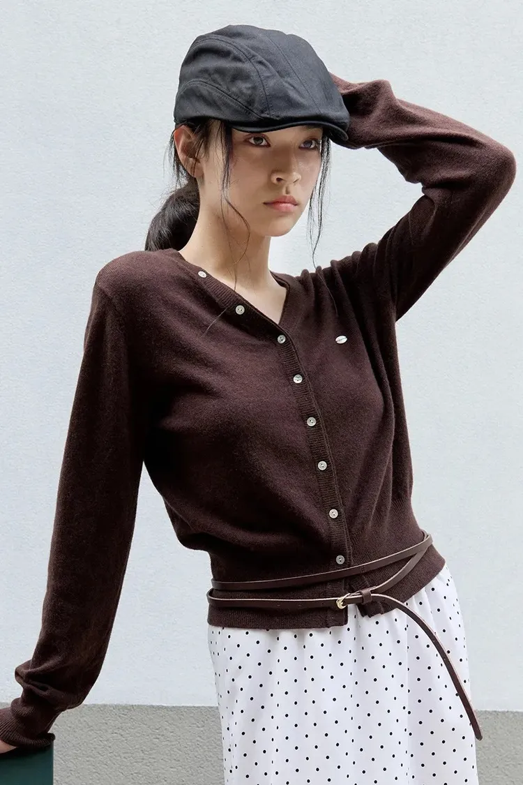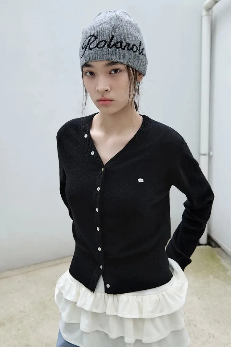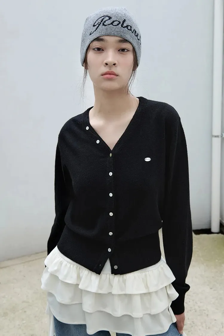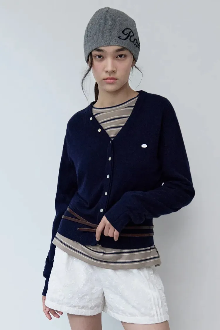 羊毛51%+聚酯+壓克力 不刺癢 排釦穿脫 V領顯瘦 胸前貝殼小標 精緻貝殼扣