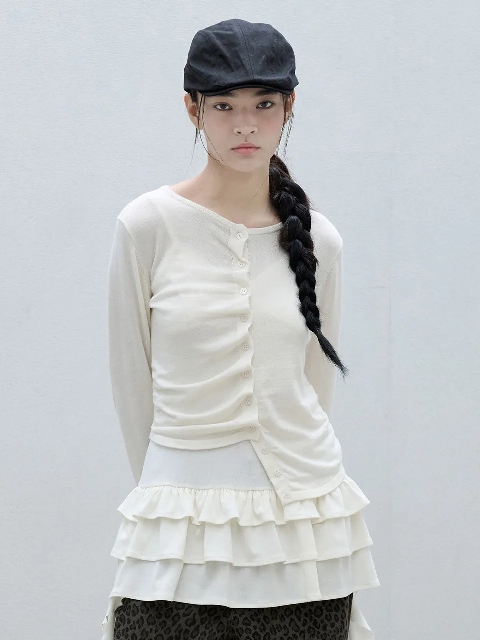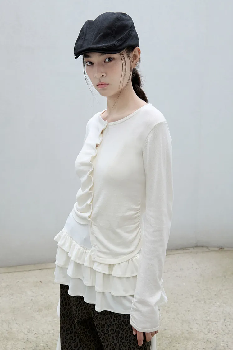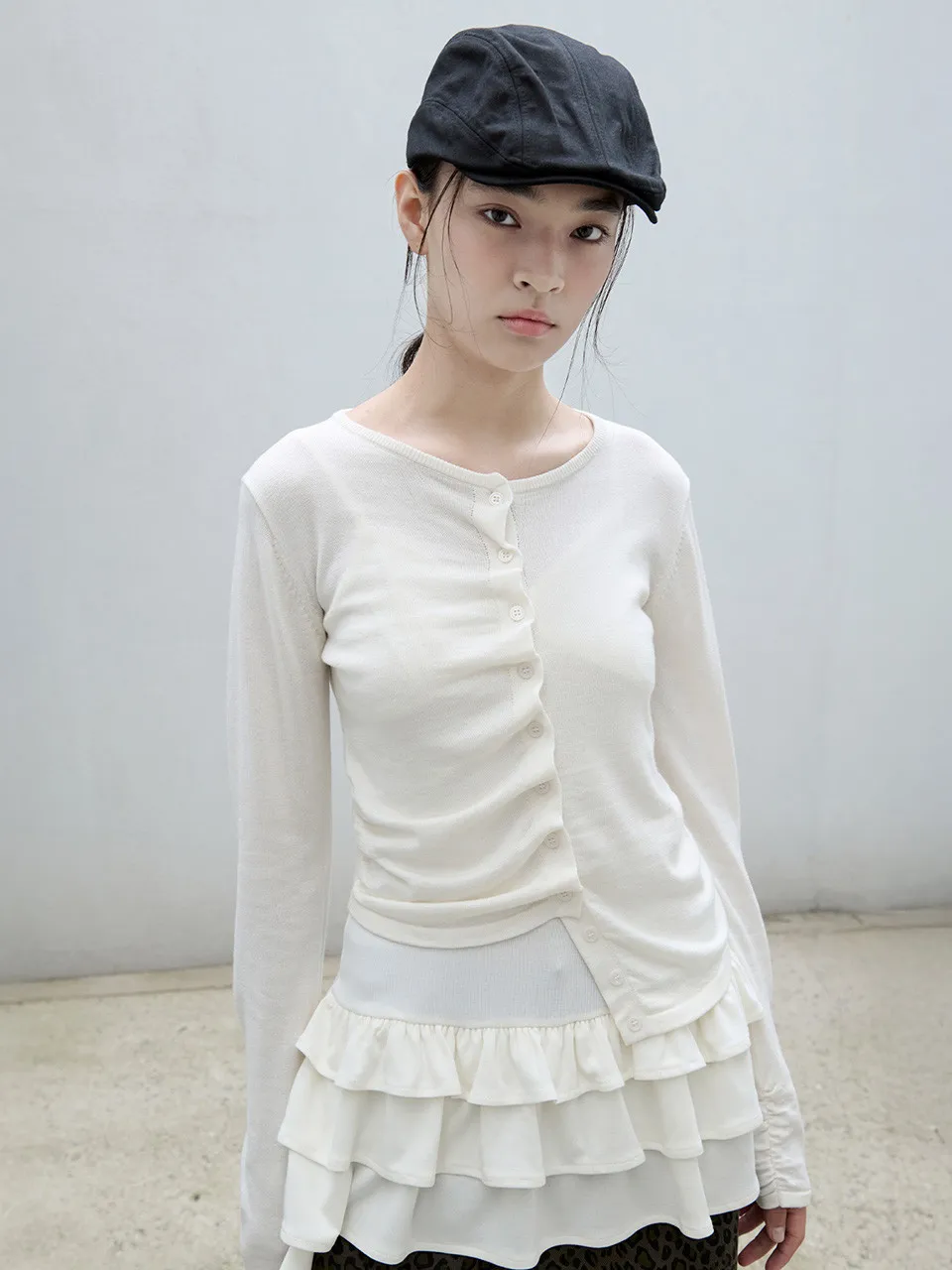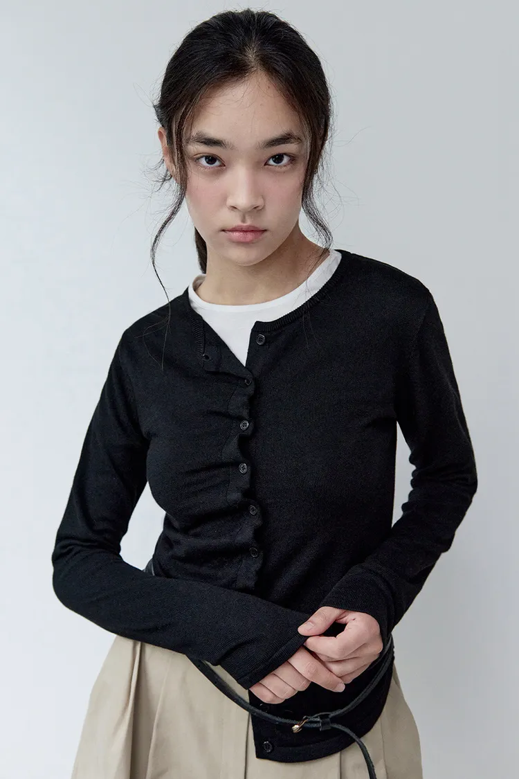 喀什米爾6%+縲縈尼龍聚酯 花朵邊釦 不對稱下擺設計 有彈性