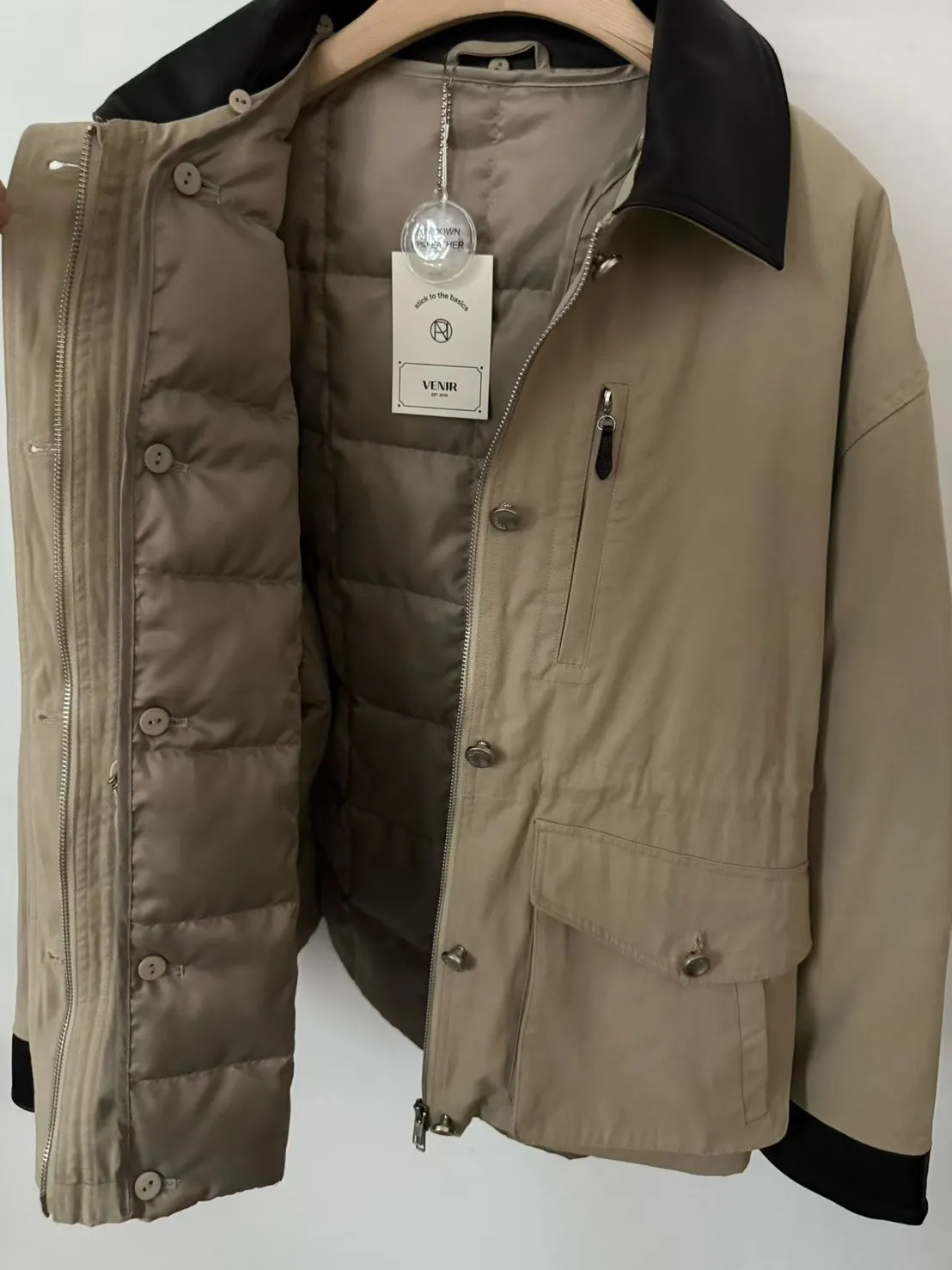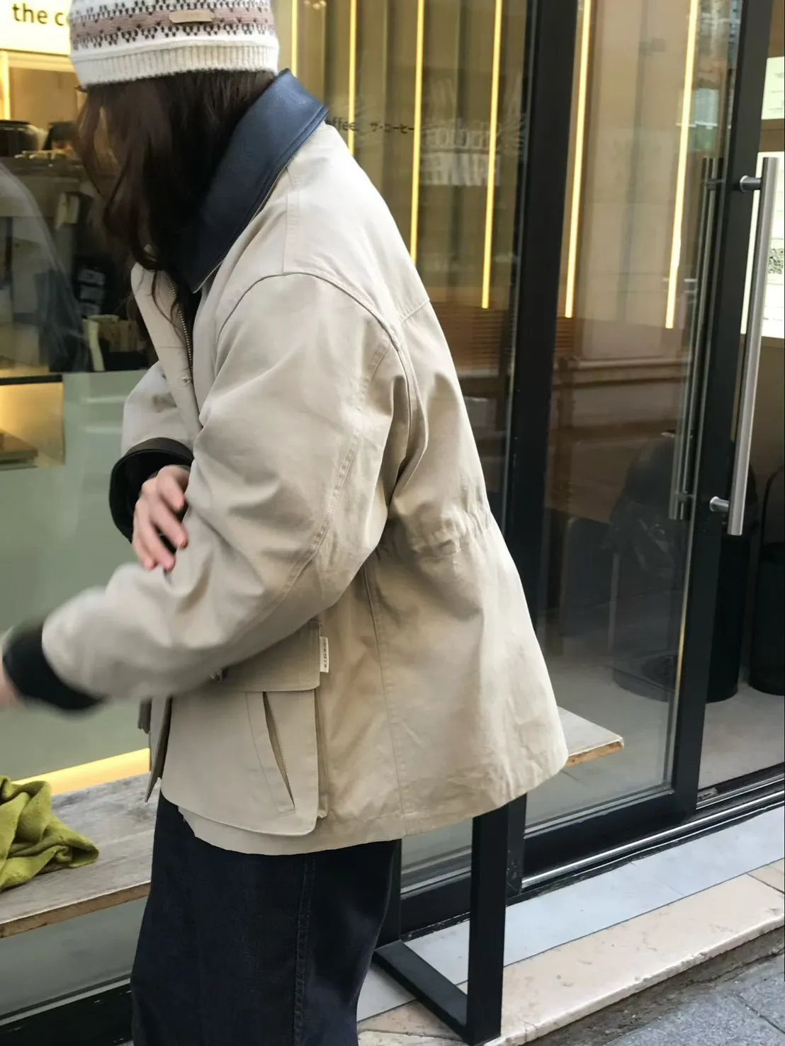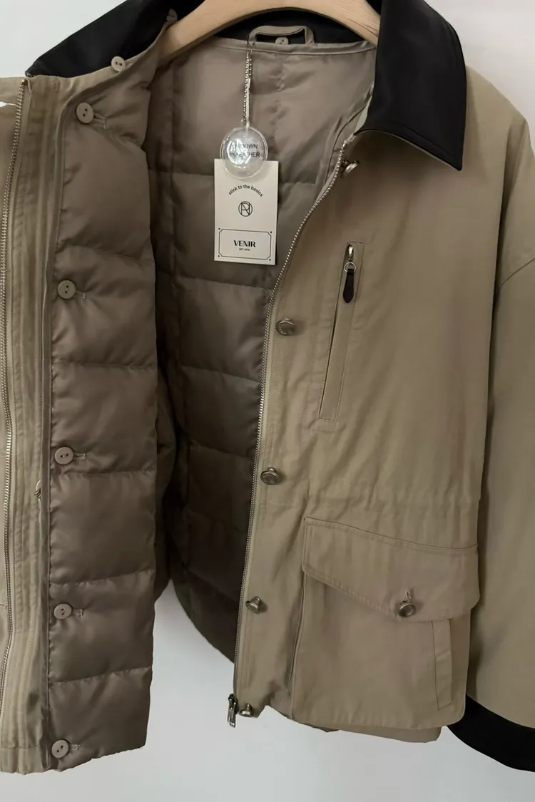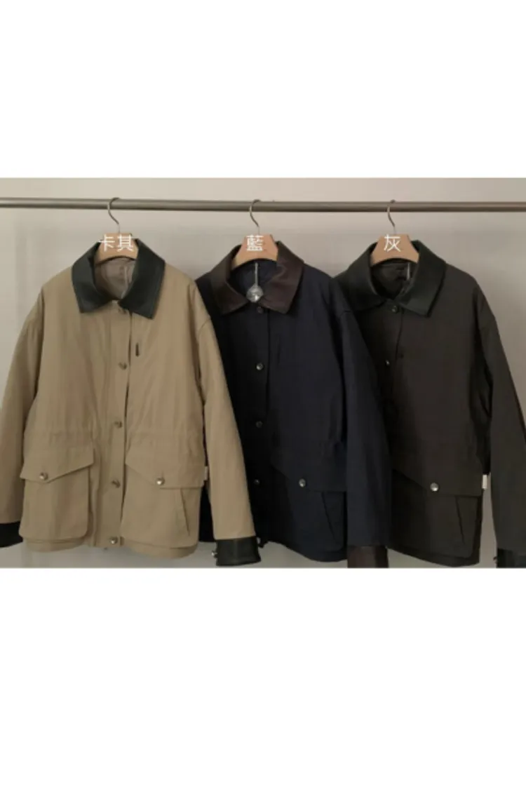 棉+聚酯+內襯鴨絨100% 質地輕盈 皮革領口袖口 內襯鴨絨可拆 細腰內抽繩