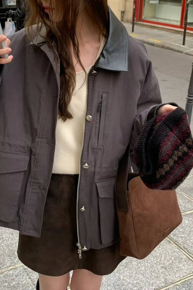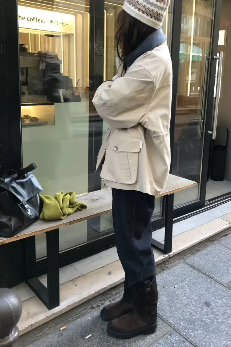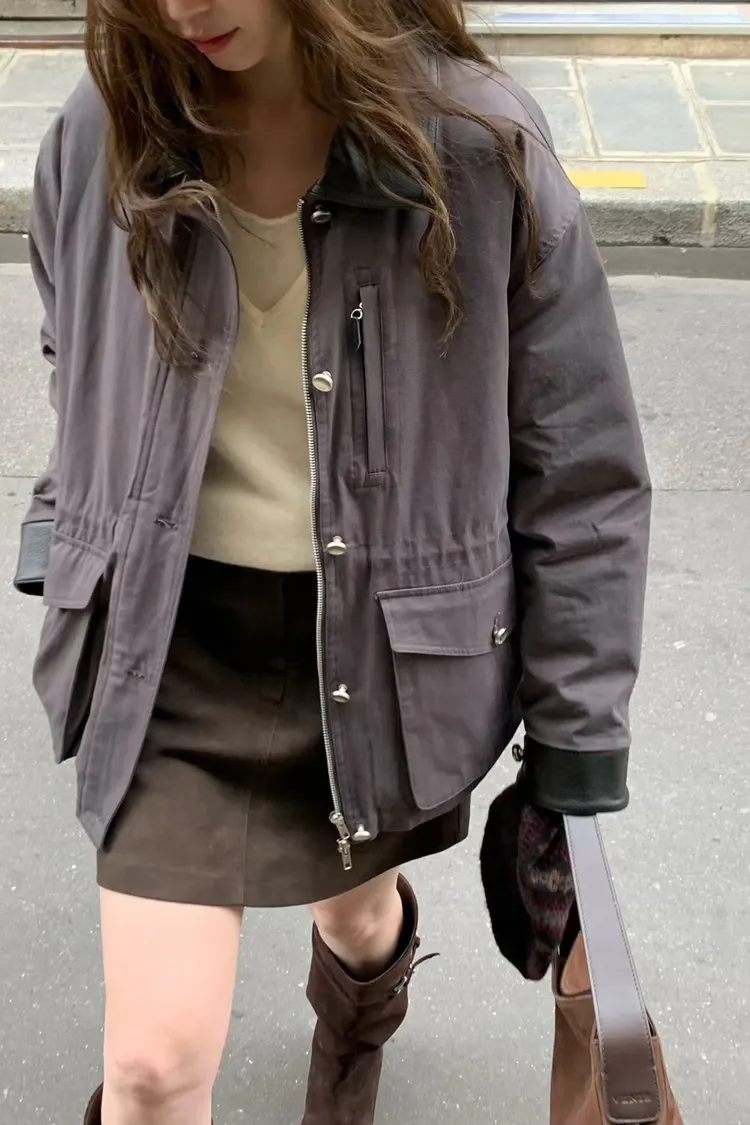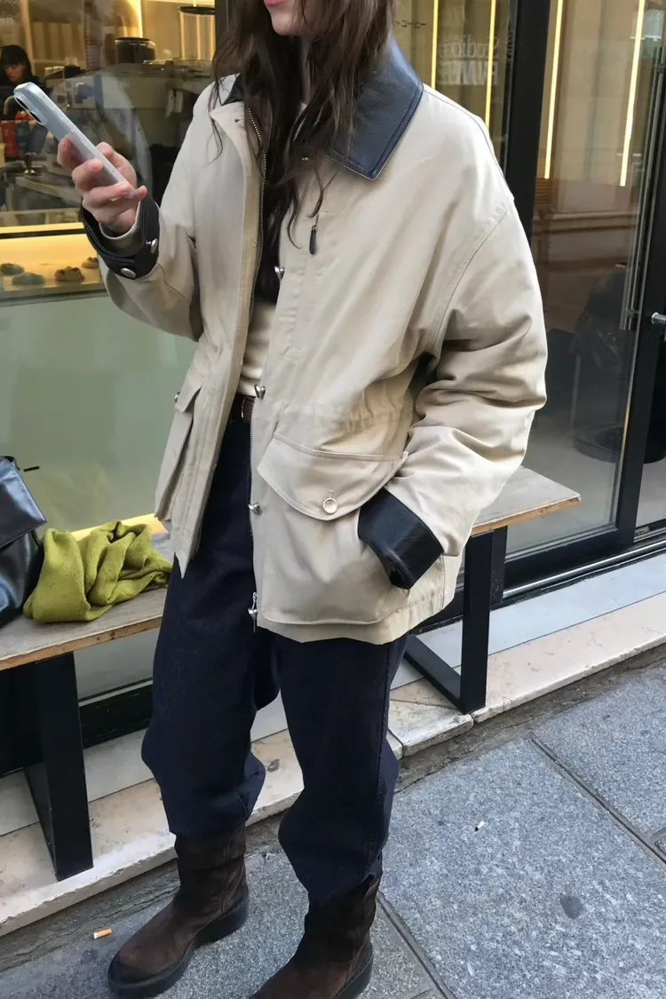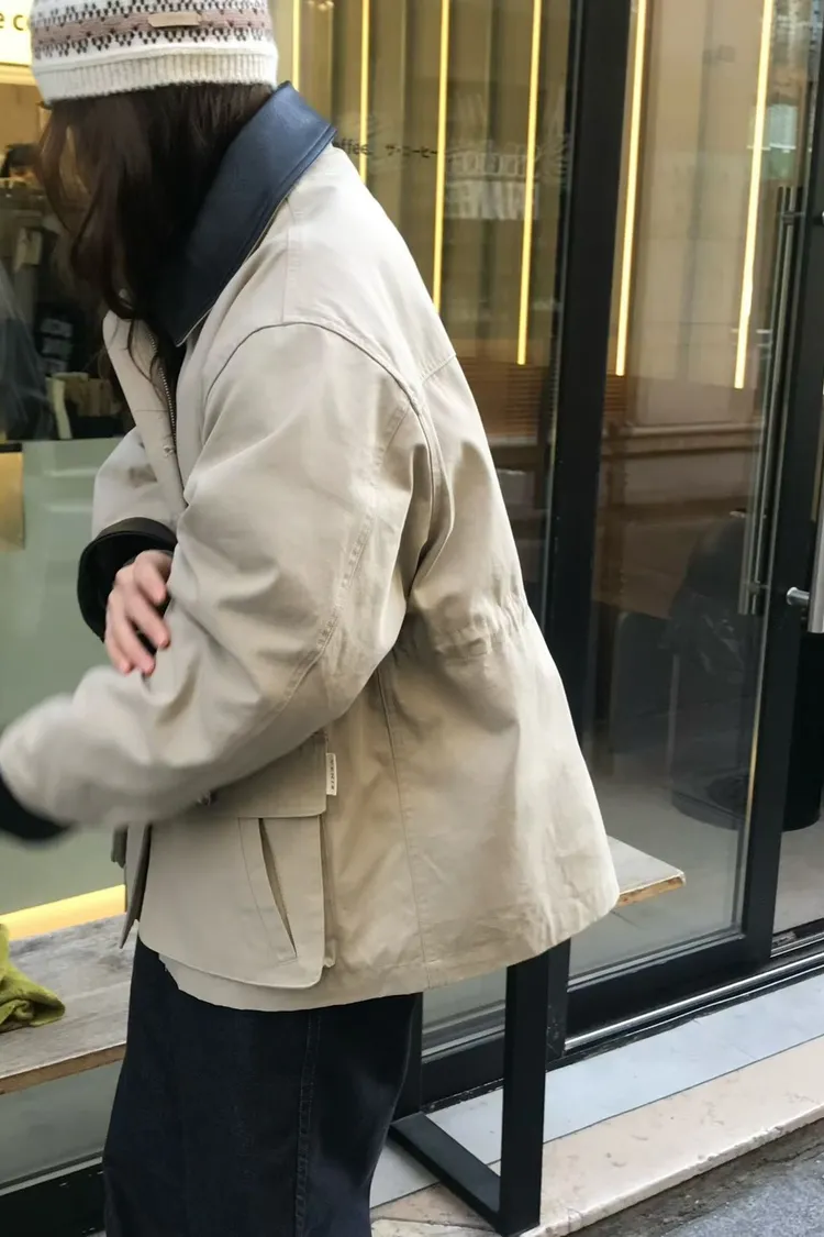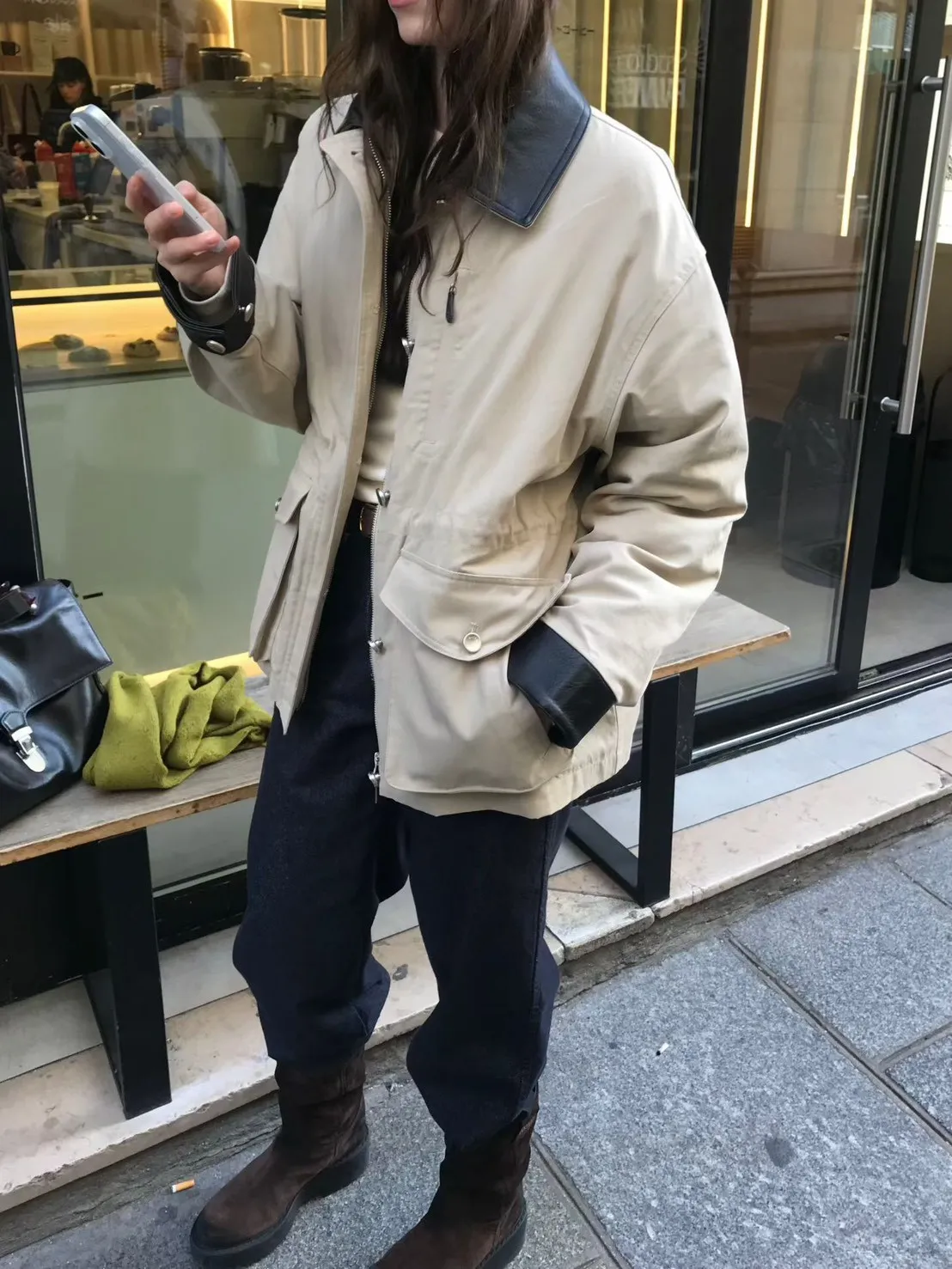 棉+聚酯+內襯鴨絨100% 質地輕盈 皮革領口袖口 內襯鴨絨可拆 細腰內抽繩