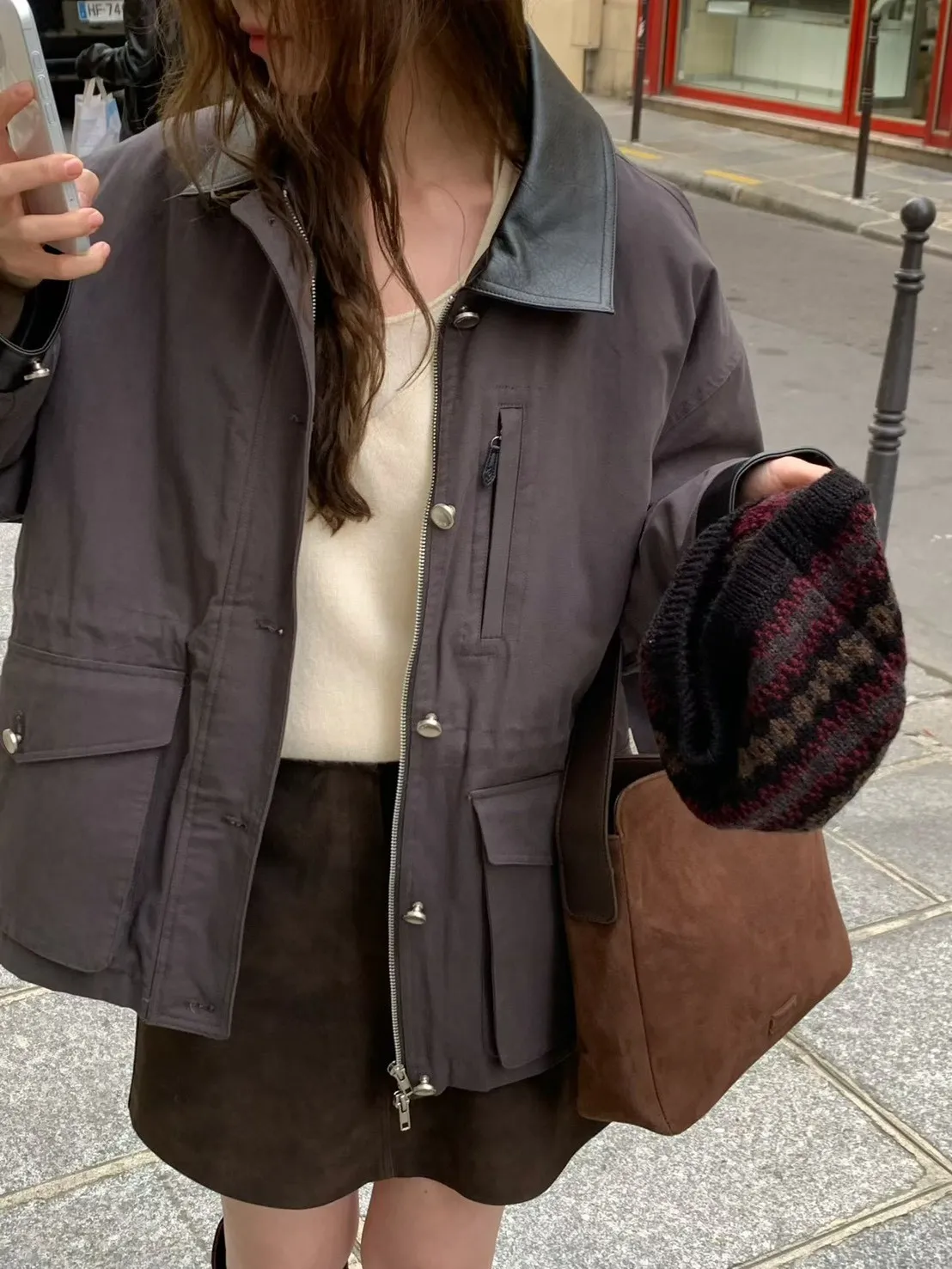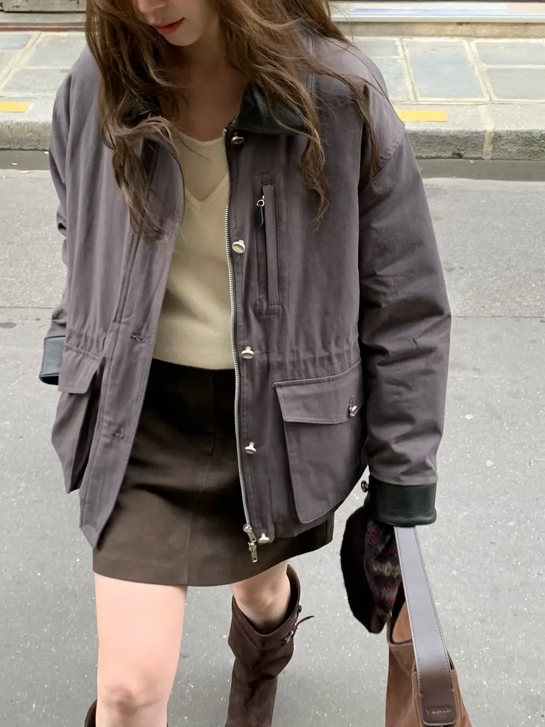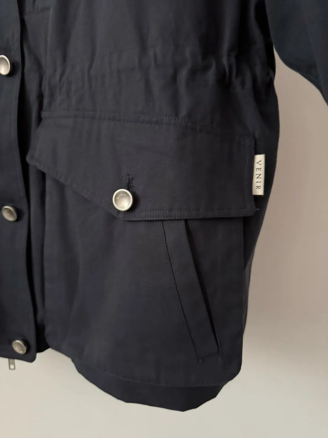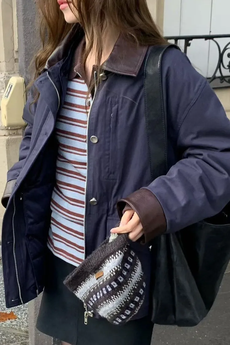 棉+聚酯+內襯鴨絨100% 質地輕盈 皮革領口袖口 內襯鴨絨可拆 細腰內抽繩