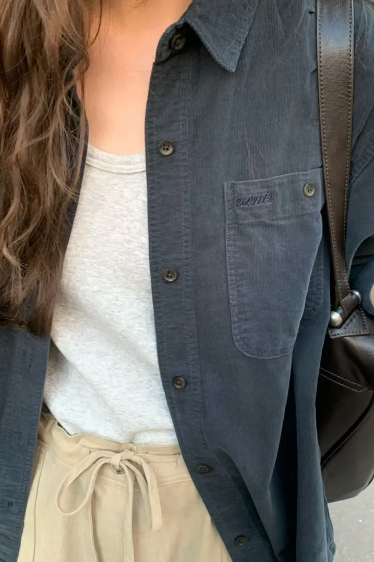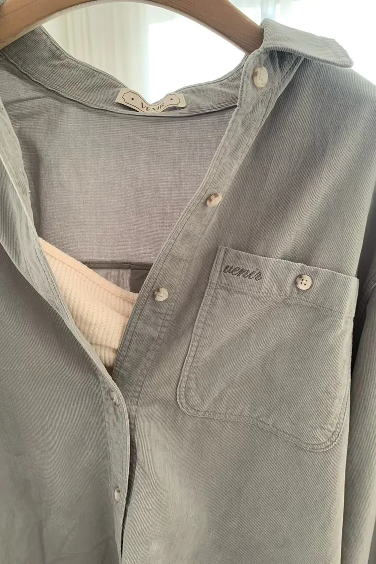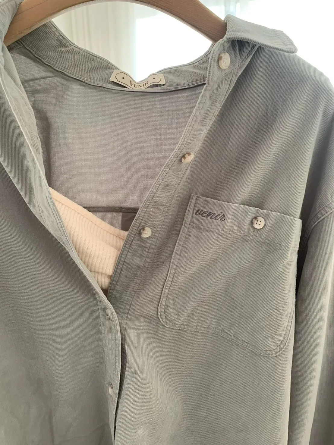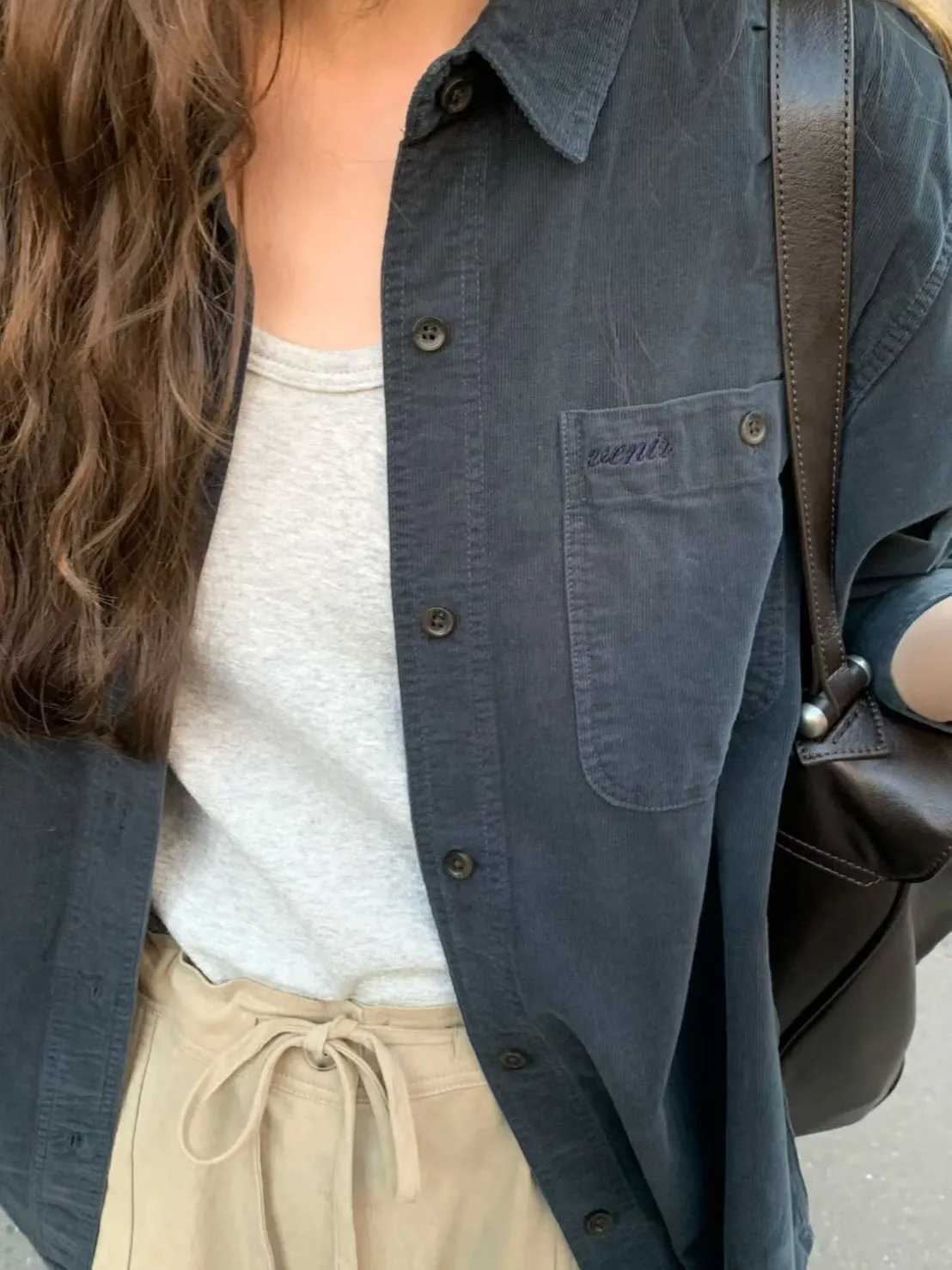 棉 單口袋 刺繡logo 可上衣可外套 內襯無刷毛 薄款燈心絨 L號友善
