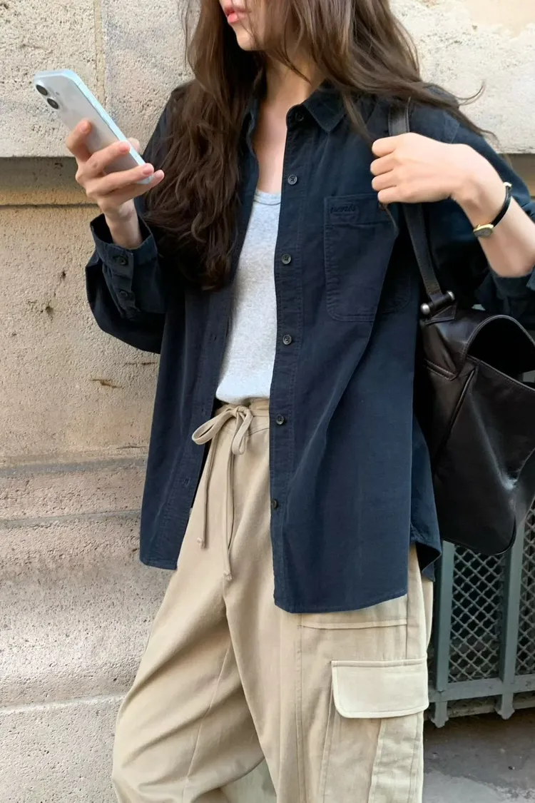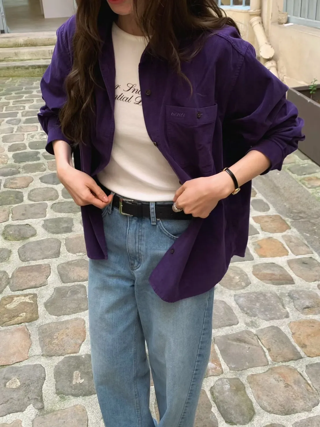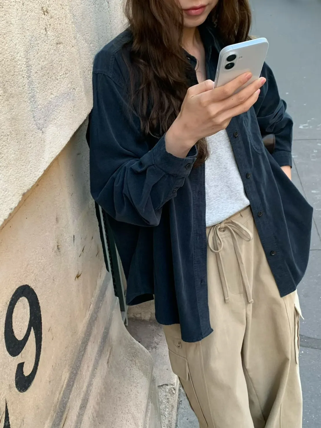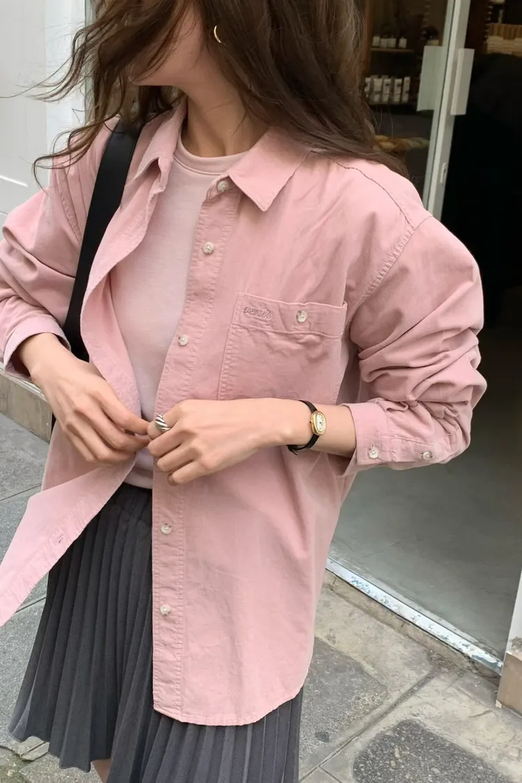 棉 單口袋 刺繡logo 可上衣可外套 內襯無刷毛 薄款燈心絨 L號友善