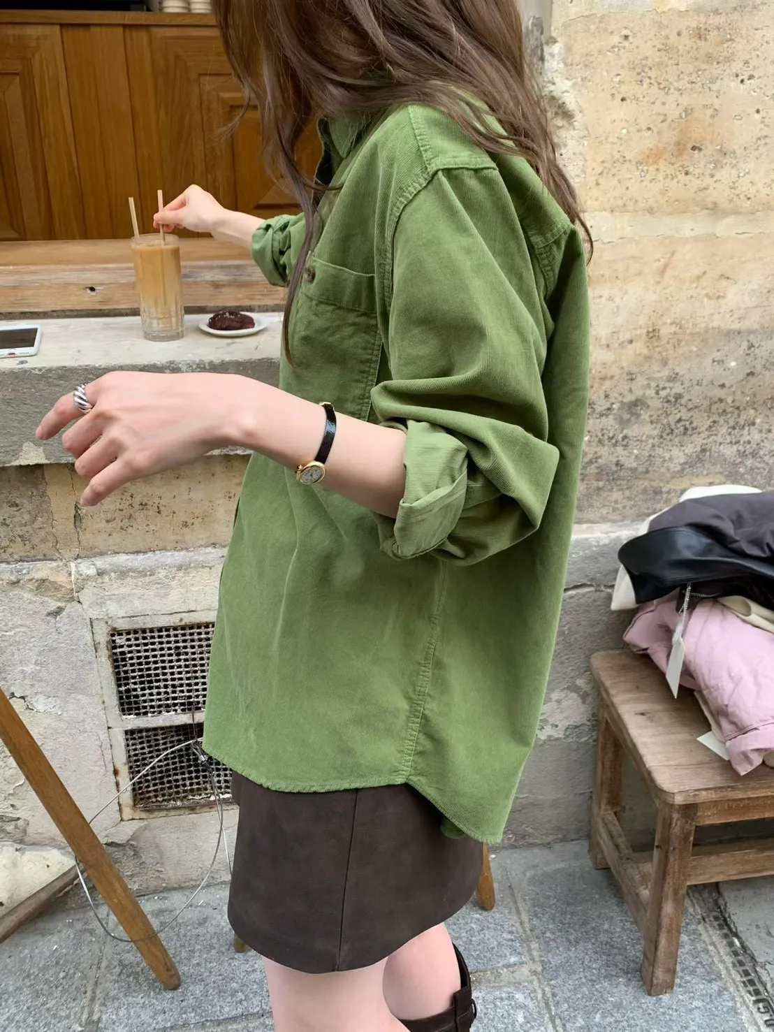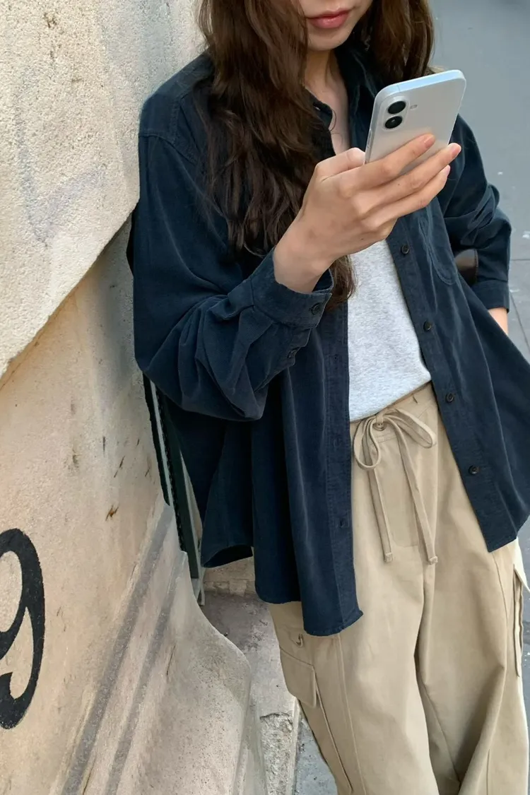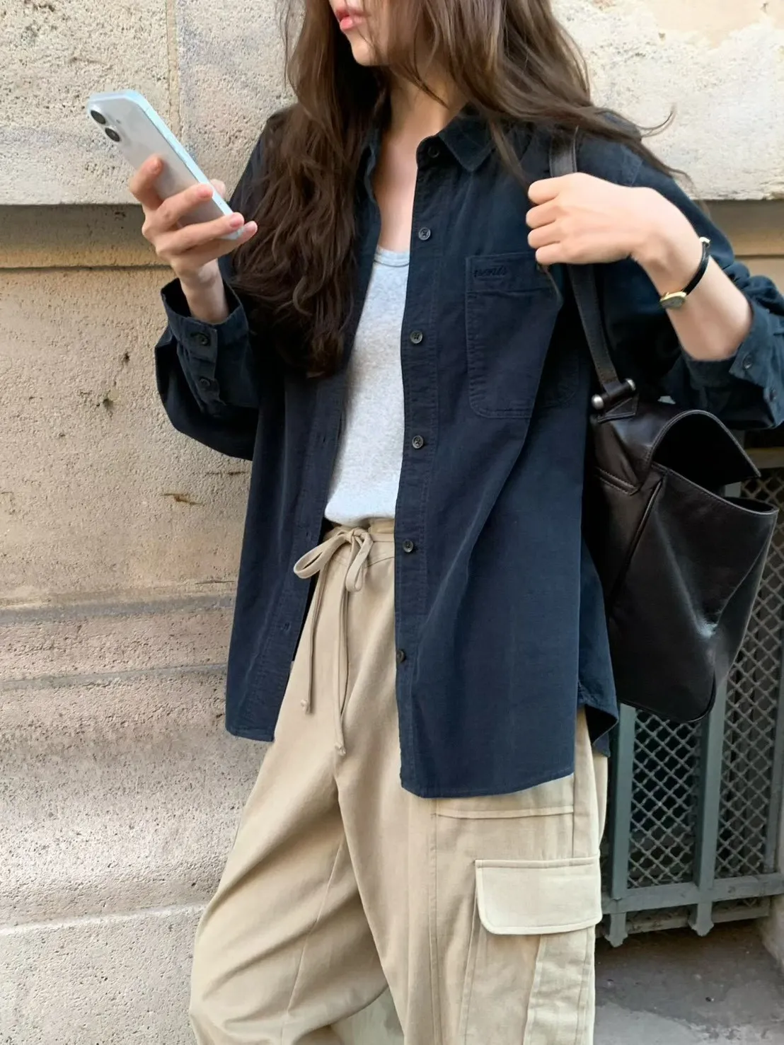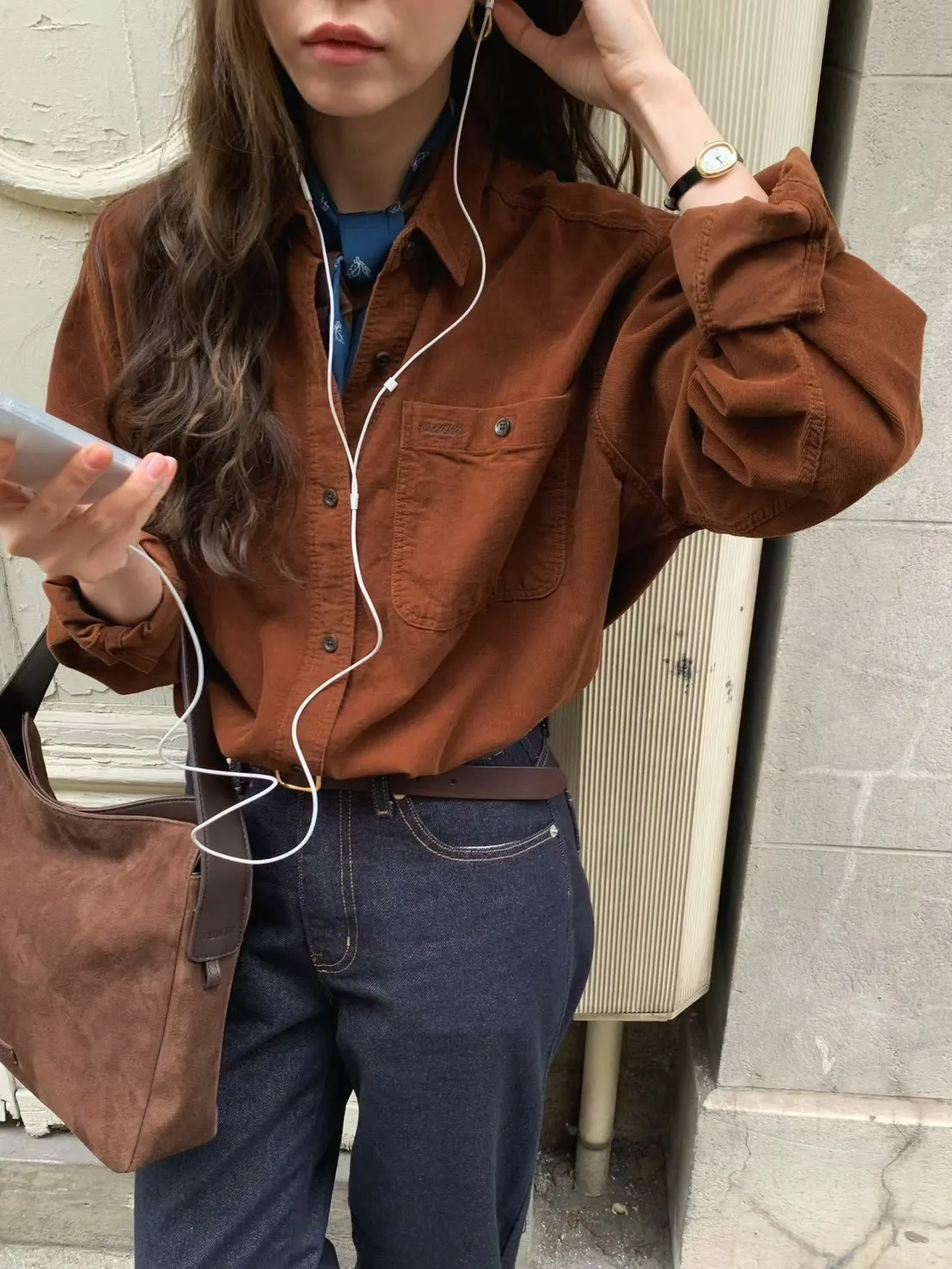 棉 單口袋 刺繡logo 可上衣可外套 內襯無刷毛 薄款燈心絨 L號友善