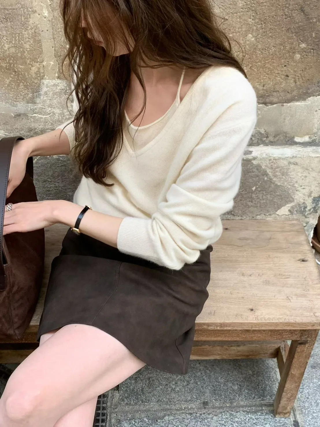 狐狸毛13%浣熊毛7%+聚酯 V領顯瘦 薄款面料 有暖度 L號友善