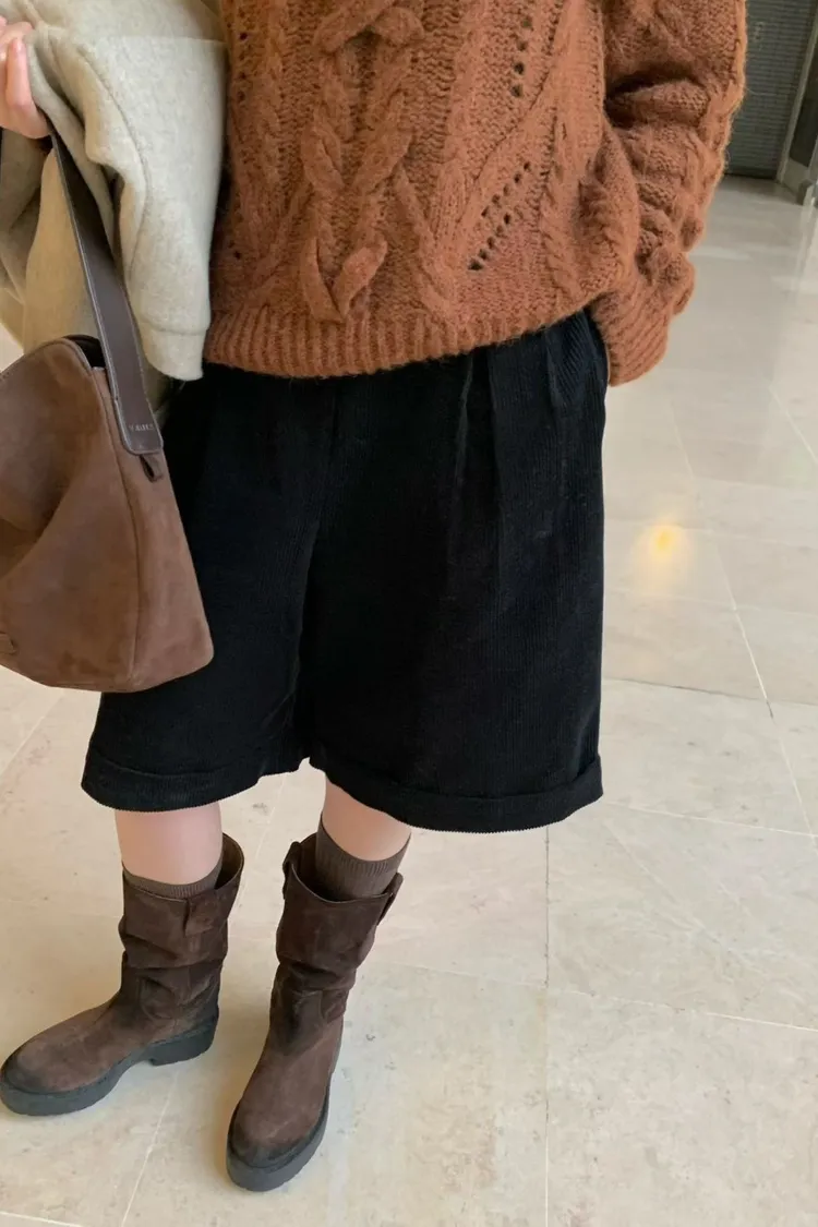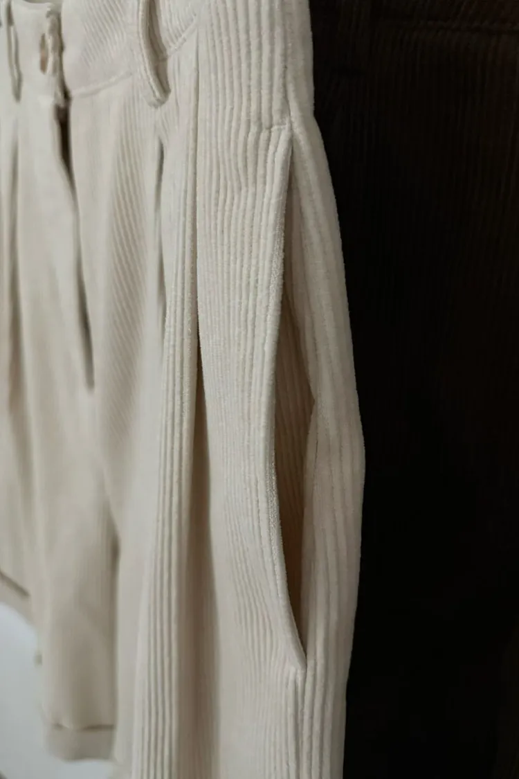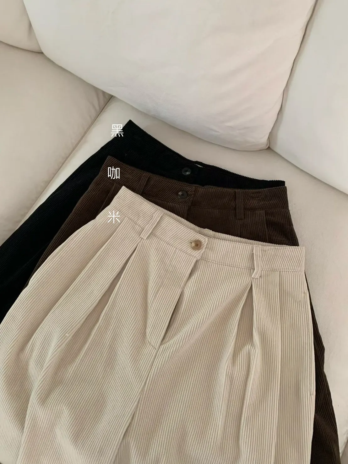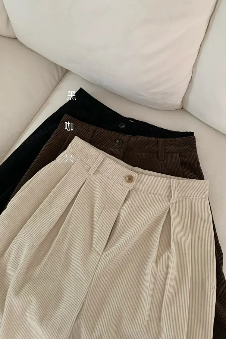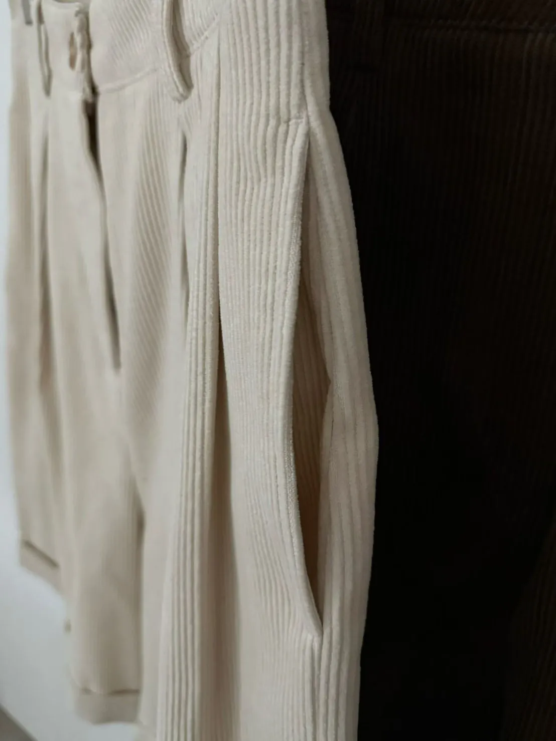 棉 燈心絨 觸感滑順 釦鍊穿脫 雙摺線 褲管固定反摺 有口袋 有腰耳