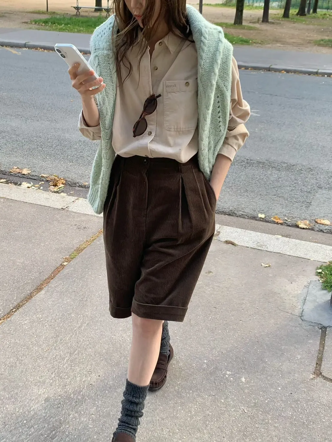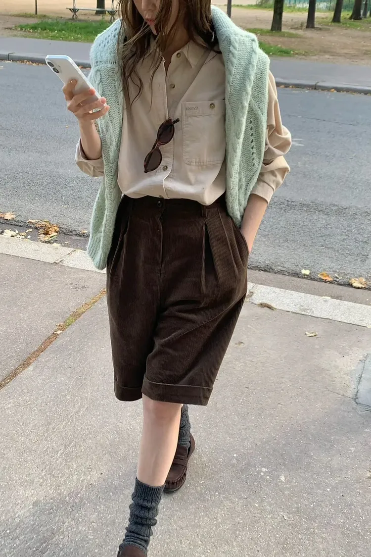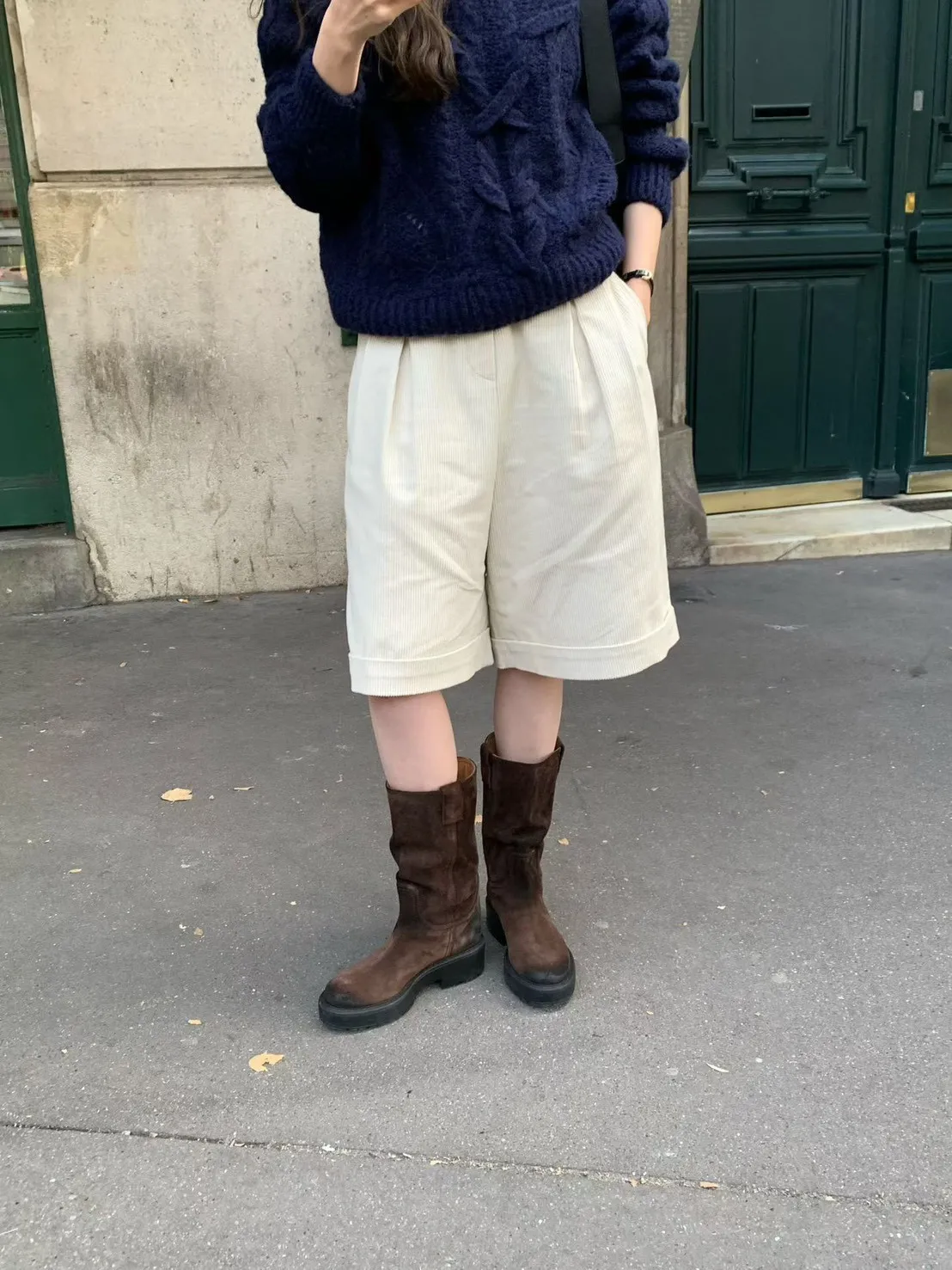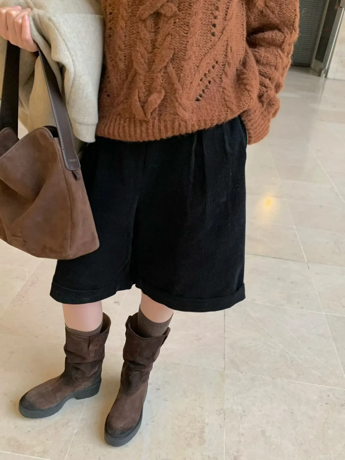 棉 燈心絨 觸感滑順 釦鍊穿脫 雙摺線 褲管固定反摺 有口袋 有腰耳