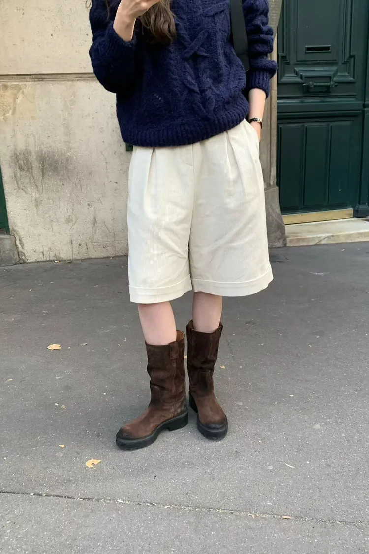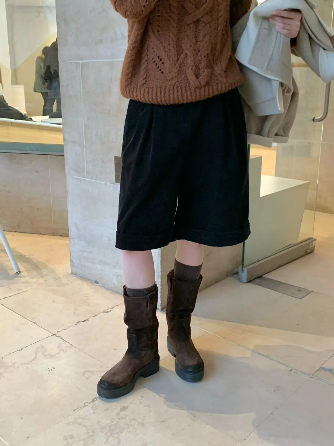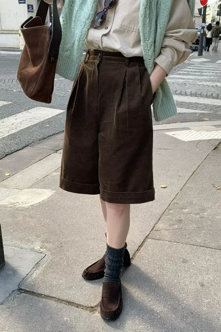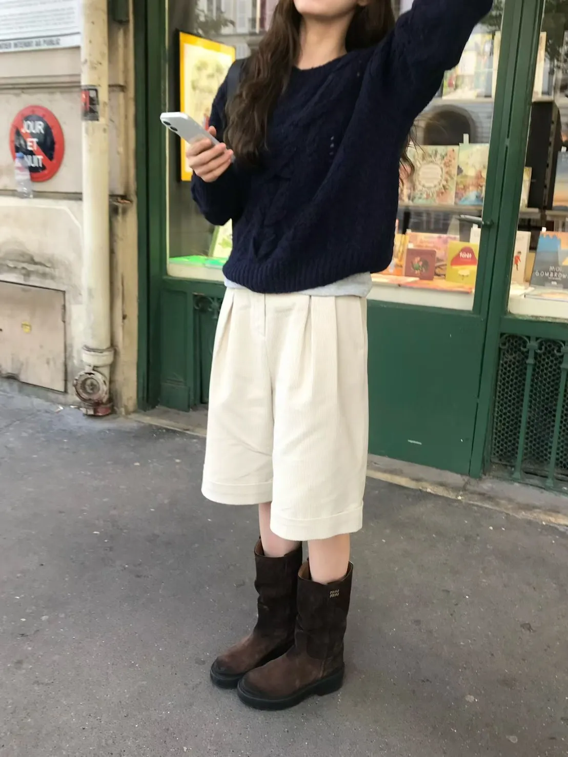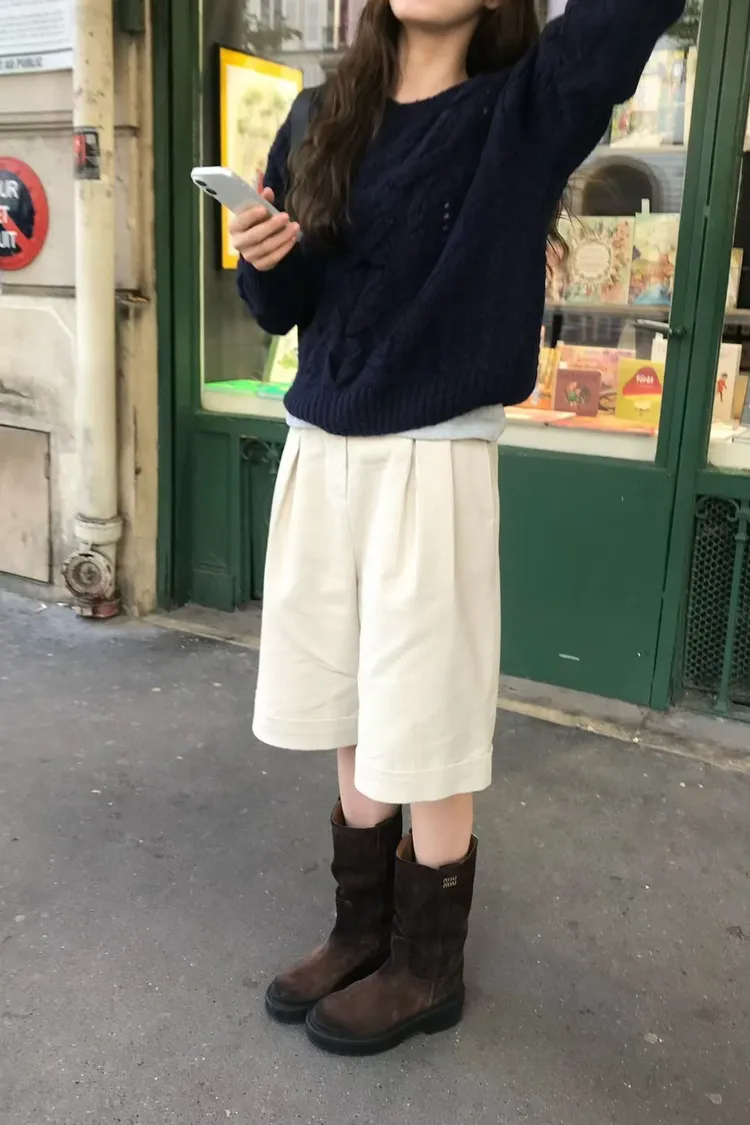 棉 燈心絨 觸感滑順 釦鍊穿脫 雙摺線 褲管固定反摺 有口袋 有腰耳