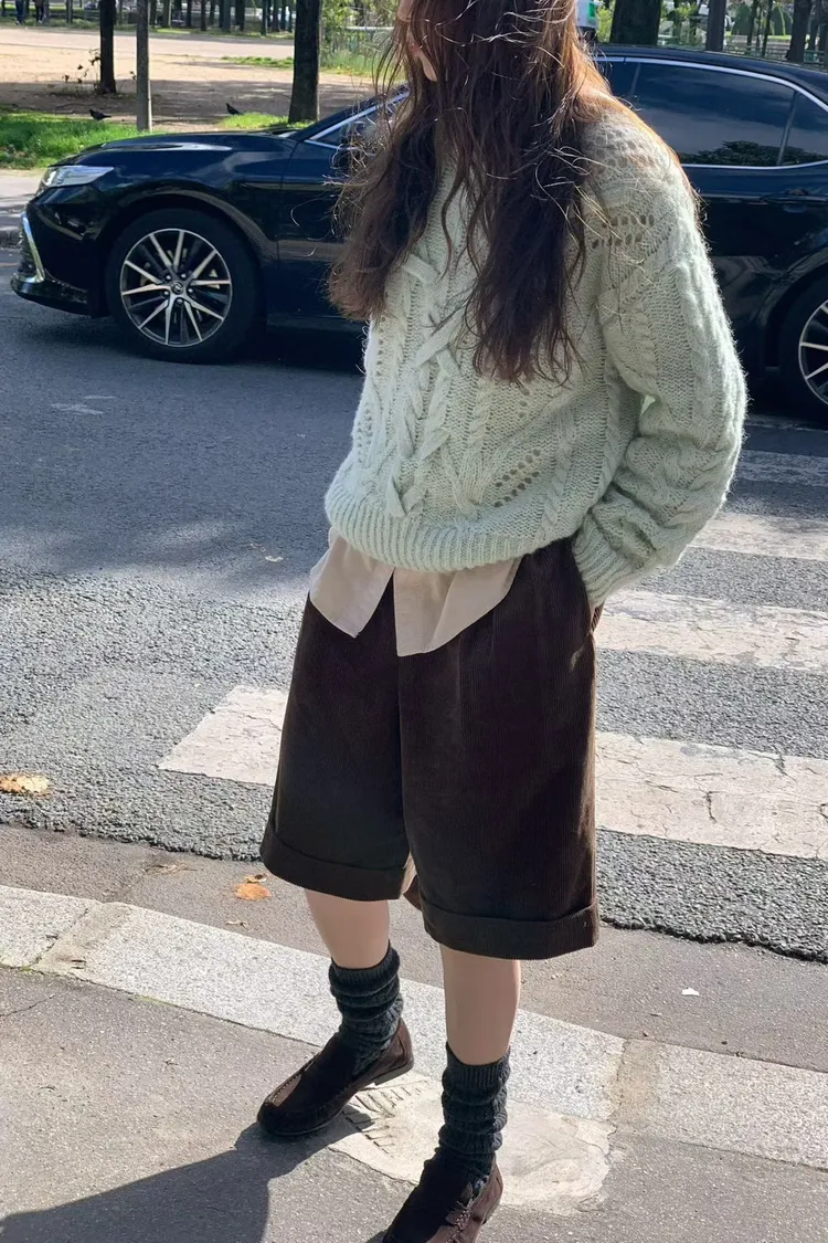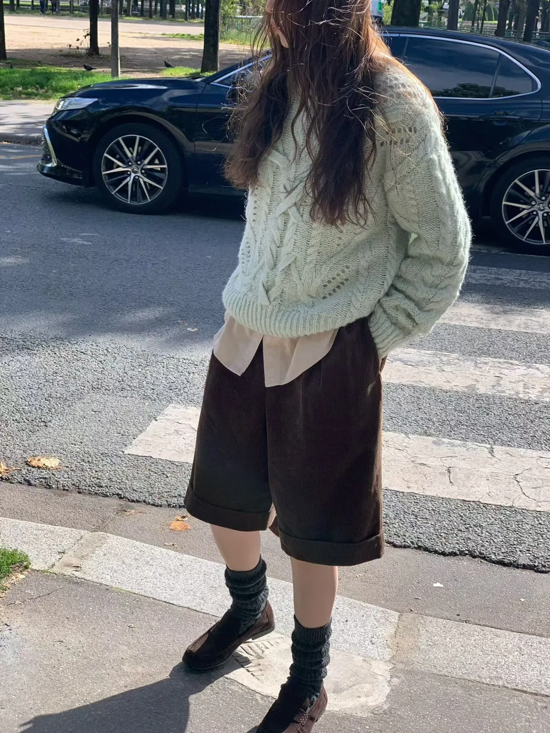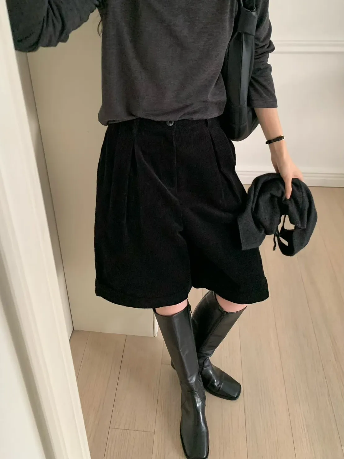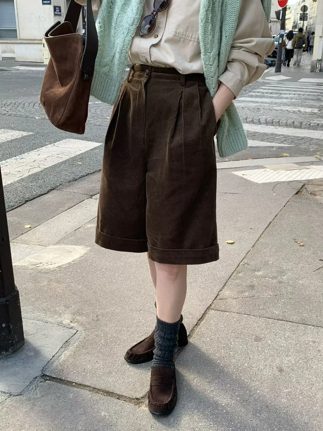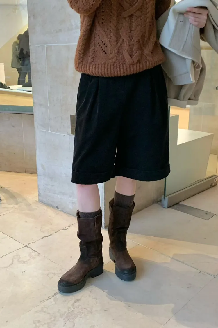棉 燈心絨 觸感滑順 釦鍊穿脫 雙摺線 褲管固定反摺 有口袋 有腰耳