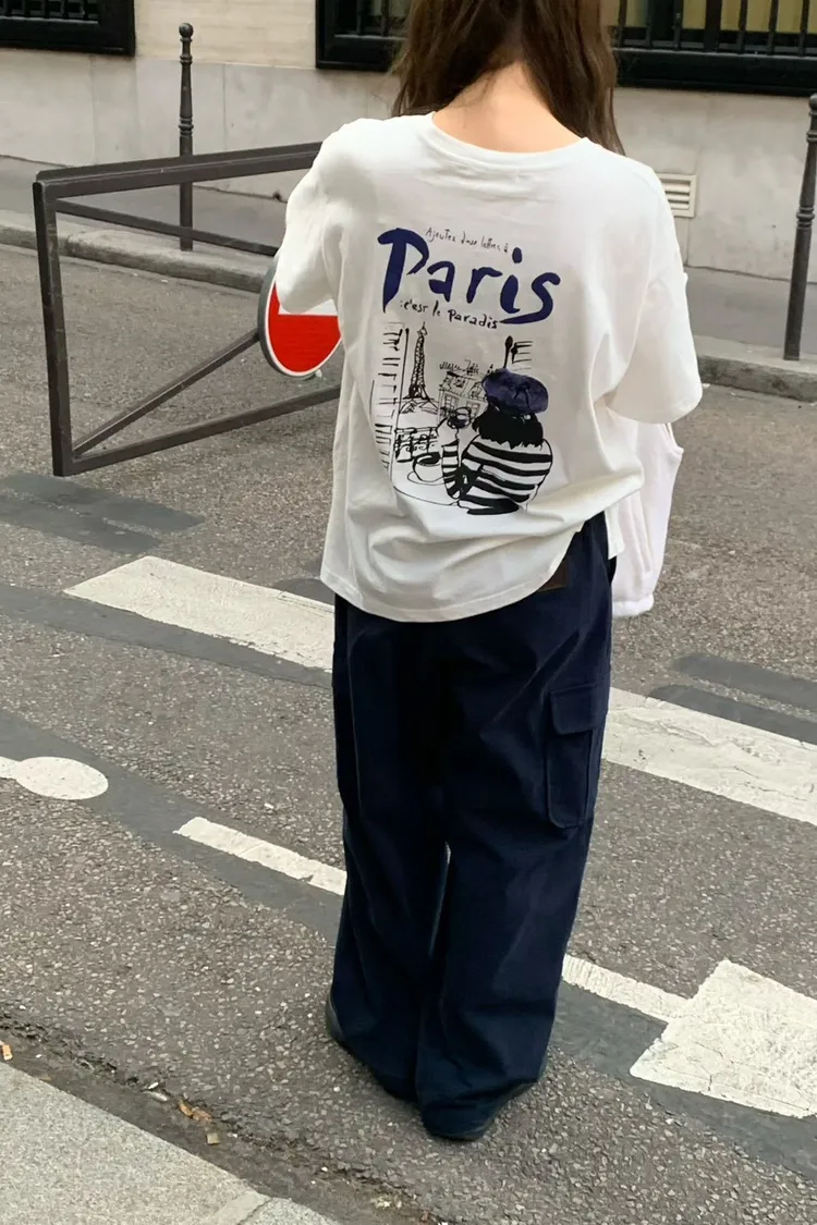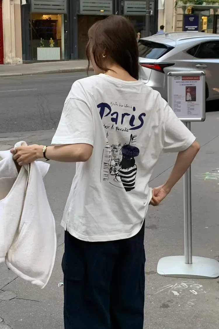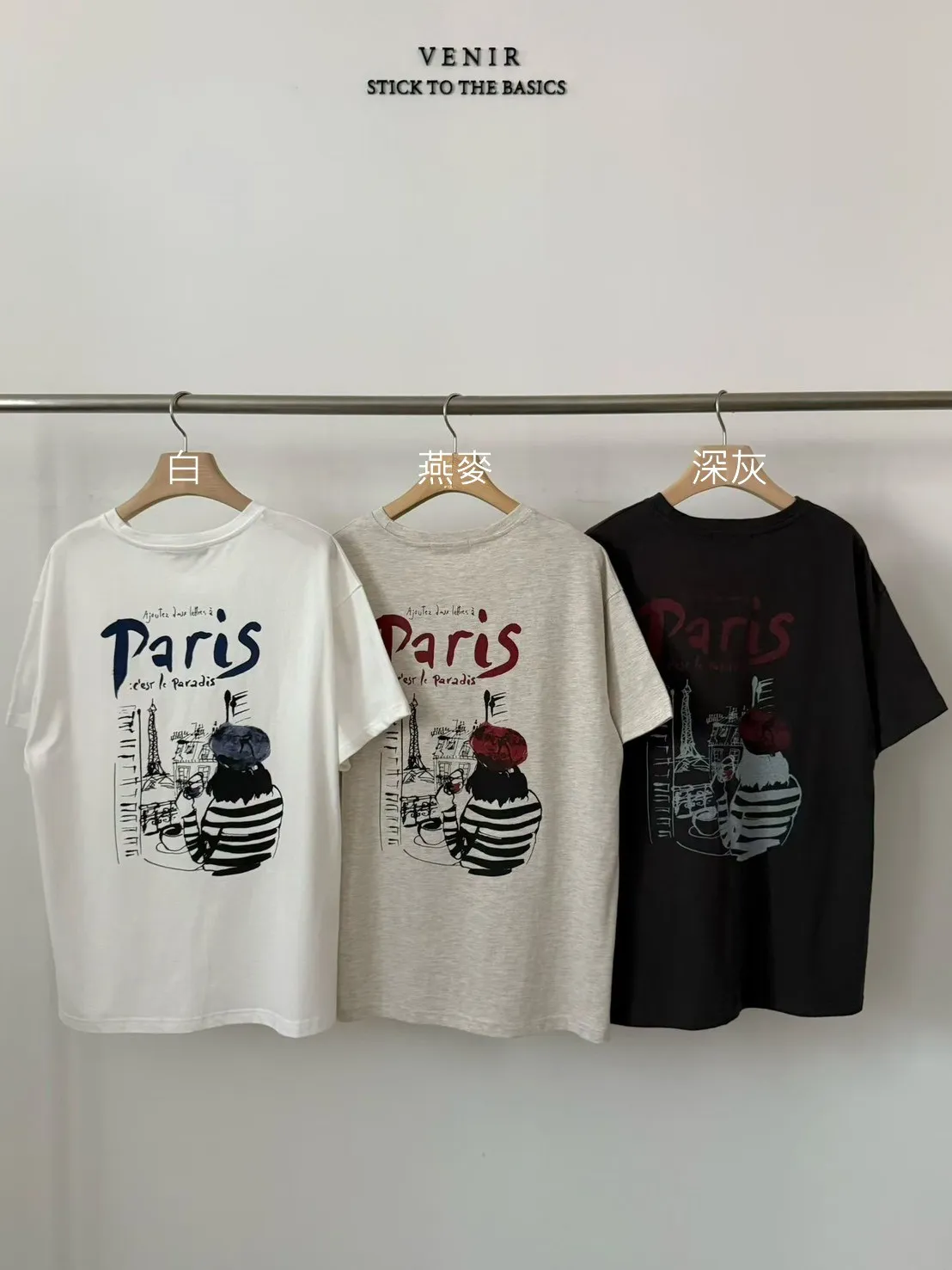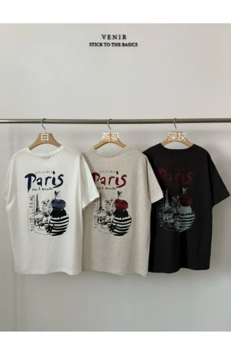 MK052巴黎畫家紅酒paris 短袖T 白 燕麥 深灰 官網價$899 線上價$869
