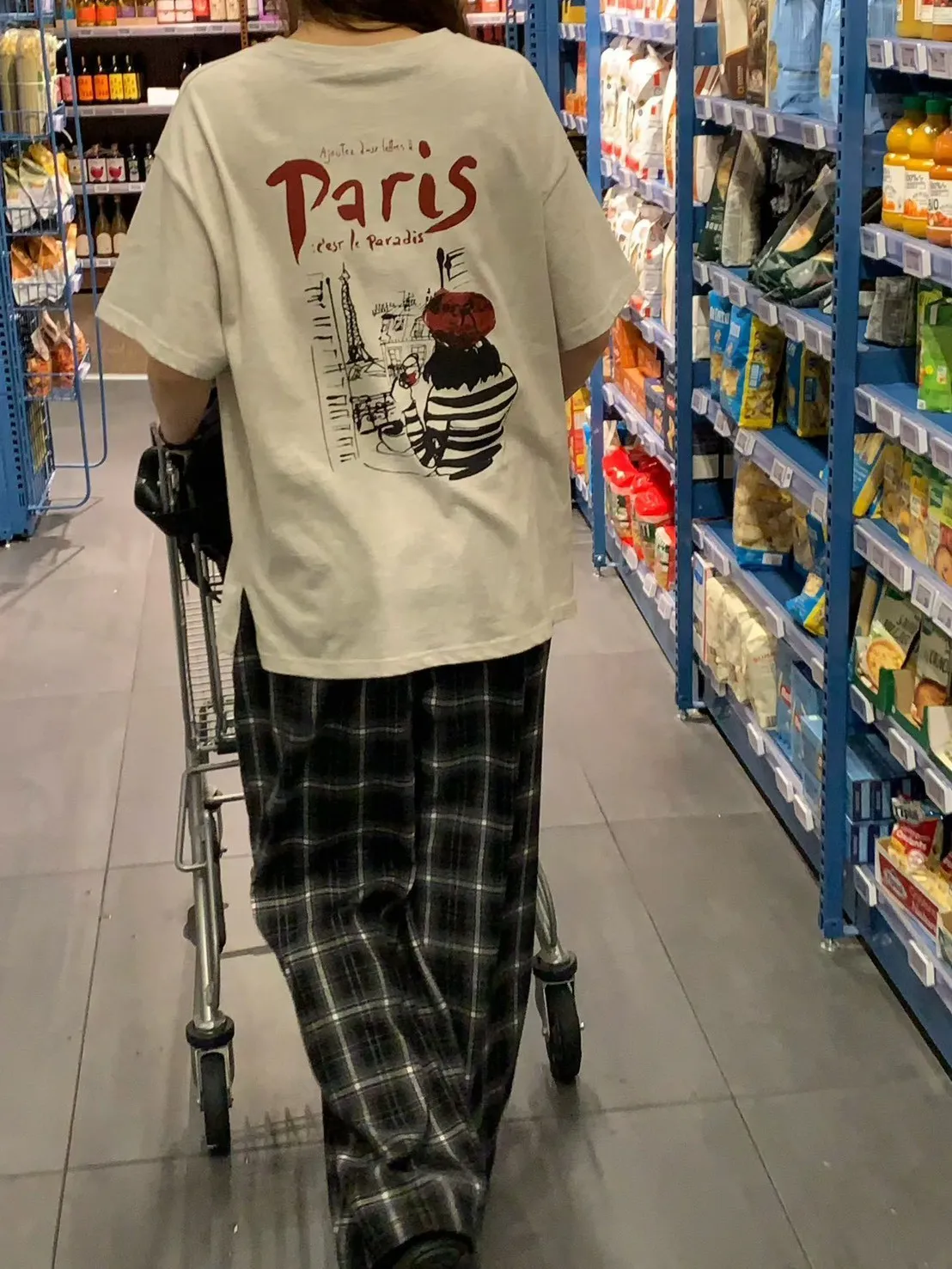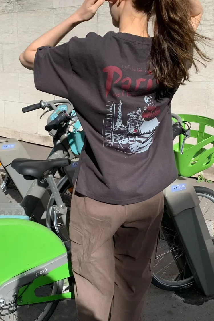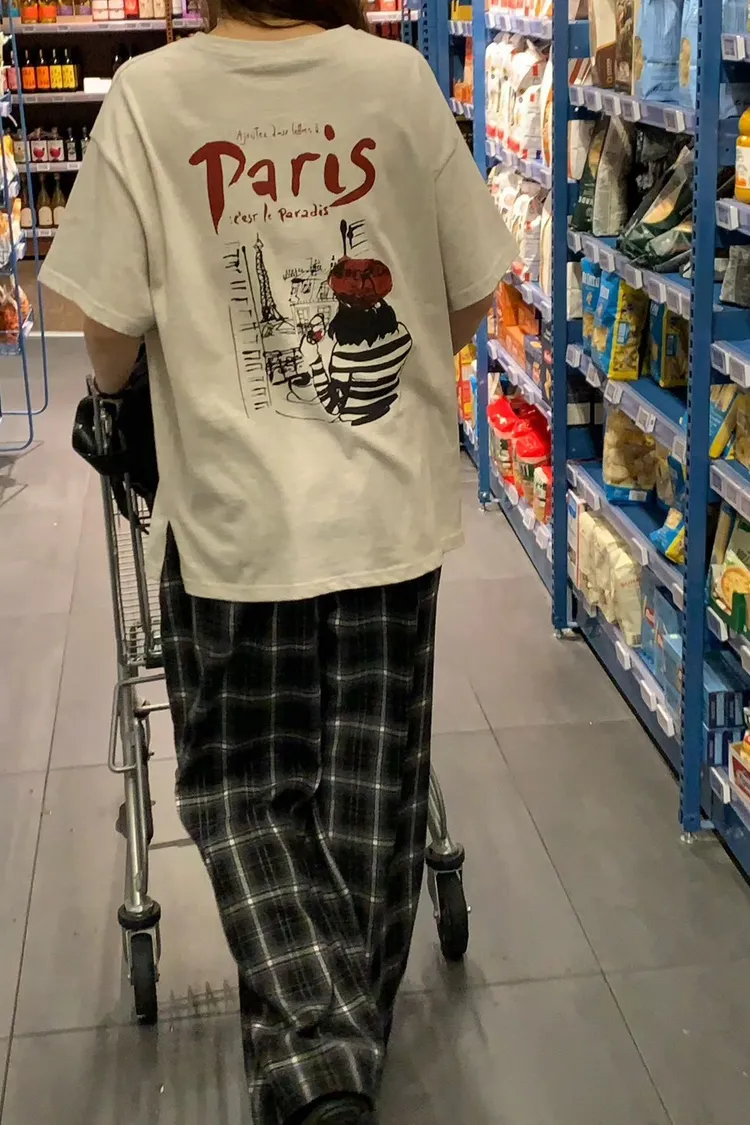 棉 前胸paris英文 後面插畫家紅酒圖案 秋季厚度 微毛感面料 L號友善